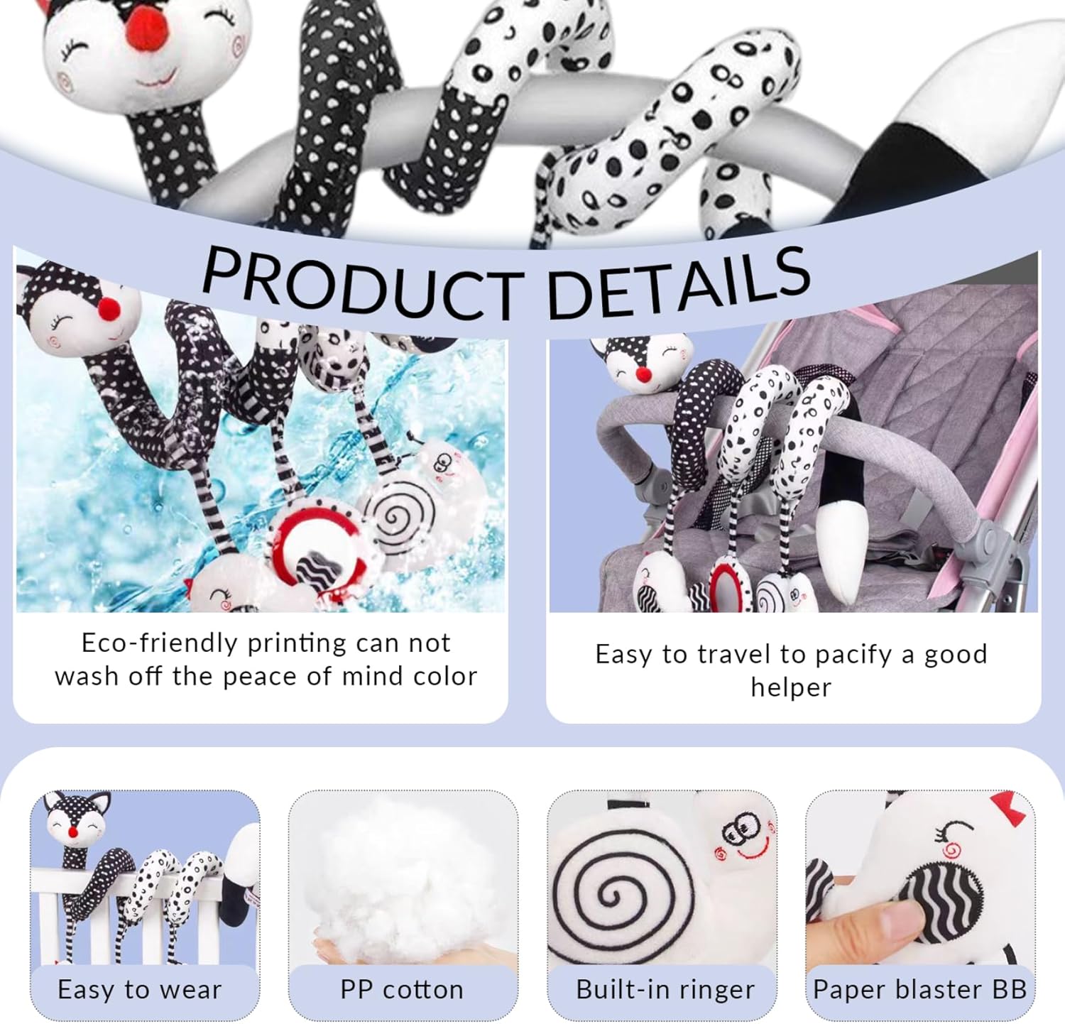 Design interattivo: questi giocattoli a forma di verme e volpe presentano un design a spirale che avvolge facilmente attorno alle sponde della culla, ai seggiolini auto e ai passeggini, rendendoli perfetti sia per il gioco fisso che mobile. Bambino perfetto: questi giocattoli colorati, divertenti e funzionali sono perfetti per un baby shower o una vacanza, offrendo intrattenimento e crescita dello sviluppo per i più piccoli. Materiali morbidi e sicuri: realizzati con materiali morbidi, non tossici e sicuri per i bambini, questi giocattoli per culla sono delicati sulla pelle del tuo bambino e sicuri da maneggiare, garantendo un gioco senza preoccupazioni. Vantaggi per lo sviluppo: questi giocattoli per culla incoraggiano i bambini a raggiungere, afferrare ed esplorare, promuovendo le capacità motorie, lo sviluppo sensoriale e la coordinazione occhio-mano, perfetti per i bambini da 0 a 36 mesi. Gioco multisensoriale: i giocattoli per culla includono funzionalità coinvolgenti come un sonaglio, una carta ad anelli e un suono BB per stimolare i sensi uditivi e tattili del tuo bambino, migliorandone lo sviluppo.