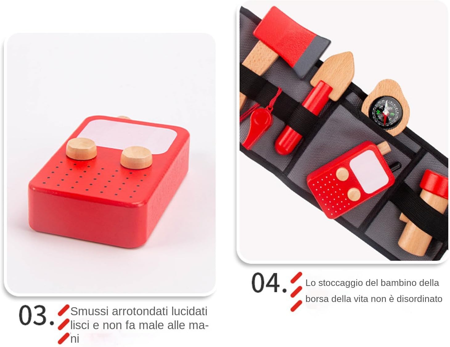 Design in legno sicuro e igienico: realizzato in legno innocuo ed ecologico con una consistenza liscia, questi giocattoli da pompiere non assicurano che non si preoccupino il gioco. La costruzione resiste a anni di avventure robuste mantenendo facili superfici pulite Giochi di ruolo del coraggio di coraggio: equipaggiare gli aspiranti eroi con strumenti finti di livello professionale per simulazioni urgenti coinvolgenti. Gli scenari dinamici di gioco di ruolo insegnano il pensiero di gestione delle crisi Avventura di apprendimento immersivo: questo pompiere promuove l'espressione linguistica e le abilità di lavoro di attraverso scenari interattivi di gioco di ruolo. I bambini migliorano il coordinamento del corpo e la consapevolezza emotiva mentre praticano belle capacità motorie con realistici. Versatilità avanzata: questo set di giocattoli facilita la collaborazione genitore-figlio e gli esercizi di team building. Il kit di attrezzi per i giocattoli pompieri serve istituzioni educative, incontri familiari e individuali creativi giocano ugualmente bene. Scelta regalo per la costruzione del coraggio: progettato per bambini di età compresa tra 3 anni, questo pompiere educativo suscitano un gioco di ruolo immaginativo al contempo nutrimento del coraggio e delle capacità di leadership. Una scelta ideale per compleanni, Natale e occasioni speciali