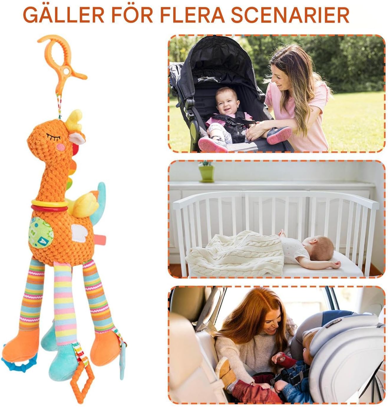 Sistema di fissaggio efficace: adatto per passeggini, seggiolini auto e culle. Fornisce un'installazione senza problemi, nonché un intrattenimento costante e un gioco rilassante che si adatta perfettamente alle diverse esigenze. Divertimento giocattolo di lunga durata: la struttura morbida resistente al morso in peluche di alta qualità con cotone PP garantisce sicurezza, affidabilità e giochi duraturi durante i viaggi con il passeggino Scelta del pensiero: ottimo regalo per il fine settimana e il compleanno. Un'opzione premurosa per deliziare amici, parenti e colleghi di lavoro con la loro lavorazione e il piacere universale. Sviluppo sensoriale: il meccanismo di rotazione a 360 gradi viene attivato dai movimenti del vento e crea suoni rilassanti. Il giocattolo a rotelle favorisce lo sviluppo precoce dell'udito e della vista, stimolando la curiosità attraverso movimenti coinvolgenti che seguono il flusso d'aria. Simpatico compagno di cervo: il simpatico giocattolo con cervo risveglia la curiosità del tuo bambino e allevia le emozioni per un'esperienza di carrozzina più armoniosa durante il viaggio attraverso un effetto calmante