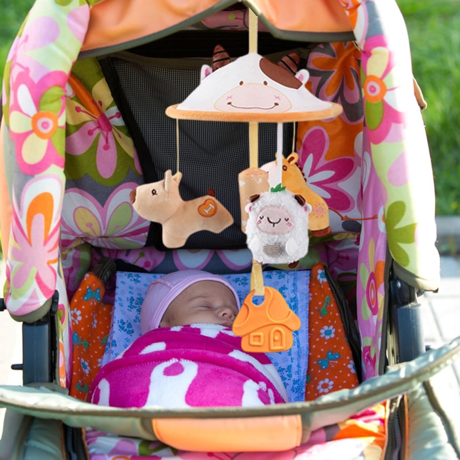 Design Forme Giocose: dettagli tema fattoria con animali, design sospeso creativo e ombrellino stimolano esplorazione e curiosità infantile Sviluppo sensoriale: Attiva le abilità percettive con componenti sospese vivaci e gamme cromatiche diversificate, sostenendo la coordinazione occhio-mano attraverso un formato di gioco interattivo. Divertimento con Ombrello Rotante: Accessorio passeggino a tema fattoria stimola interazioni significative; l'ombrello rotante intrattiene il bambino durante le uscite, trasformando ogni viaggio in un'occasione di scoperta e connessione tra genitore e bambino. Musica Calmante: Integrazione di suoni rilassanti e melodie pacificatrici che supportano lo sviluppo sensoriale offrendo comfort durante il gioco attraverso una qualità audio uniforme e piacevole Compatibilità Universale: Adatti a momenti domestici e in viaggio, si integrano perfettamente con passeggini e seggiolini grazie alla struttura ultraleggera e al di sospensione flessibile per un utilizzo intuitivo in ogni contesto