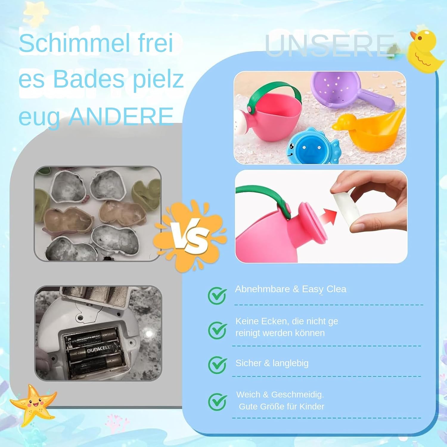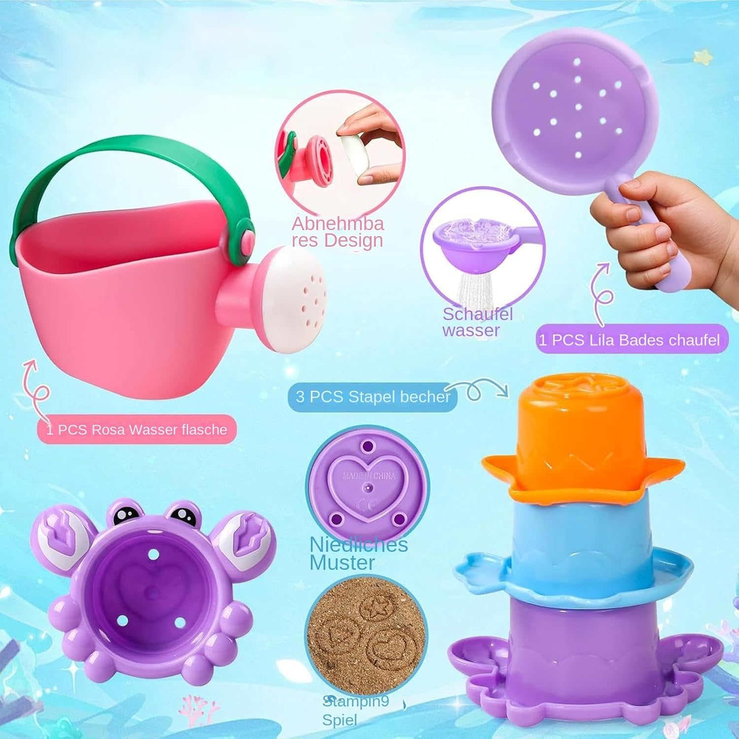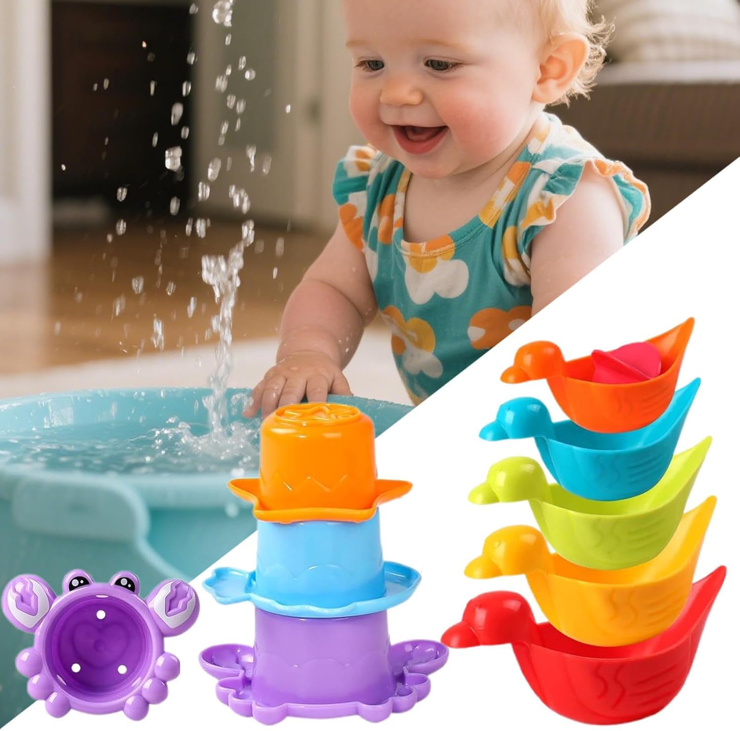 Sviluppo cognitivo: rafforza la cattura di colori e forme con barche giocattolo da bagno con animali e bicchieri con struttura in rilievo per stimolare i sensi naturali in bagno Giocattolo educativo creativo: giocattoli colorati per vasca da bagno con temi animali catturano l'attenzione e fungono da bella idea regalo per stimolare la creatività Gioco d'acqua creativo: permette ai bambini di imitare i corsi d'acqua con tazze e barche impilabili. Promuove l'immaginazione spaziale attraverso un sistema di costruzione creativo per isole galleggianti. Supporta l'esperienza di gioco interattiva per promuovere lo sviluppo naturale durante il bagno. Delicati sulla pelle del bambino: particolarmente sicuri per i bambini, questi giocattoli da bagno convincono con superfici morbide e superfici prive di sbavature. I bordi lisci evitano irritazioni e offrono ai bambini un'esperienza di gioco sicura e piacevole in ogni bagno. Divertimento all'aperto: liberate il divertimento di esplorazione con questo giocattolo da bagno per bambini, progettato per un gioco versatile in vasca da bagno, piscina e il . Garantisce attività all'aperto accattivanti e promuove l'interazione fantasiosa ad ogni utilizzo.