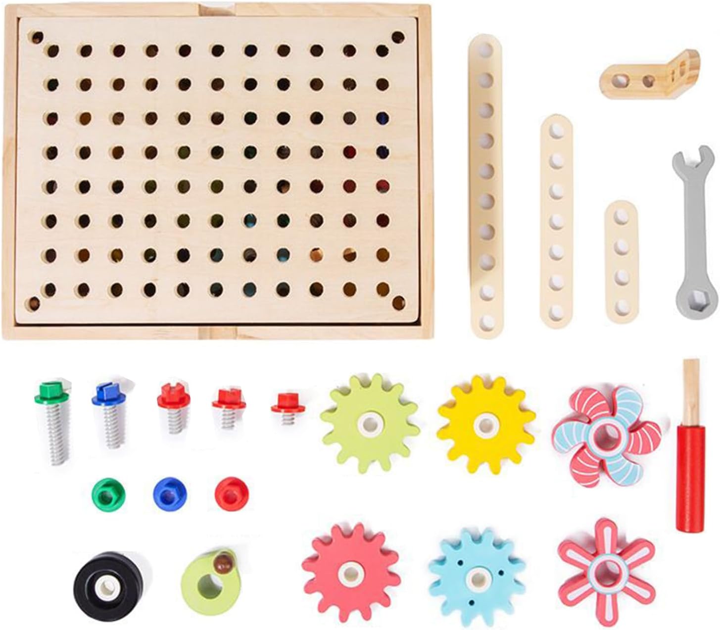 Assemblaggio creativo: Immergiti in puzzle di ingranaggi con strutture arrotondate e lisce con sistemi anti-distacco, materiali adatti e processi di colorazione sicuri per un apprendimento giocoso Abilità spaziale: sviluppa il tuo orientamento spaziale e la coordinazione sensoriale con un set di ingranaggi evolutivo che perfeziona i movimenti precisi mano-occhio e prolunga la concentrazione attraverso sfide progressive strutturate con cura per un allenamento cerebrale efficace. Interazione prescolare: Incoraggia la risoluzione dei problemi e il coordinamento tramite puzzle rotanti progettati per sviluppare il ragionamento spaziale e le capacità logiche durante l'apprendimento prescolare Scomparti organizzati: migliora la tua esplorazione meccanica con scomparti ingegnosamente progettati, favorendo abitudini metodiche mentre la portabilità per le tue esigenze di gioco. Immaginazione spaziale: Combina dadi rimovibili e ingranaggi vari per sviluppare il ragionamento spaziale e risvegliare la curiosità meccanica, offrendo possibilità illimitate di assemblaggi liberi e progressione attraverso il gioco coinvolgente