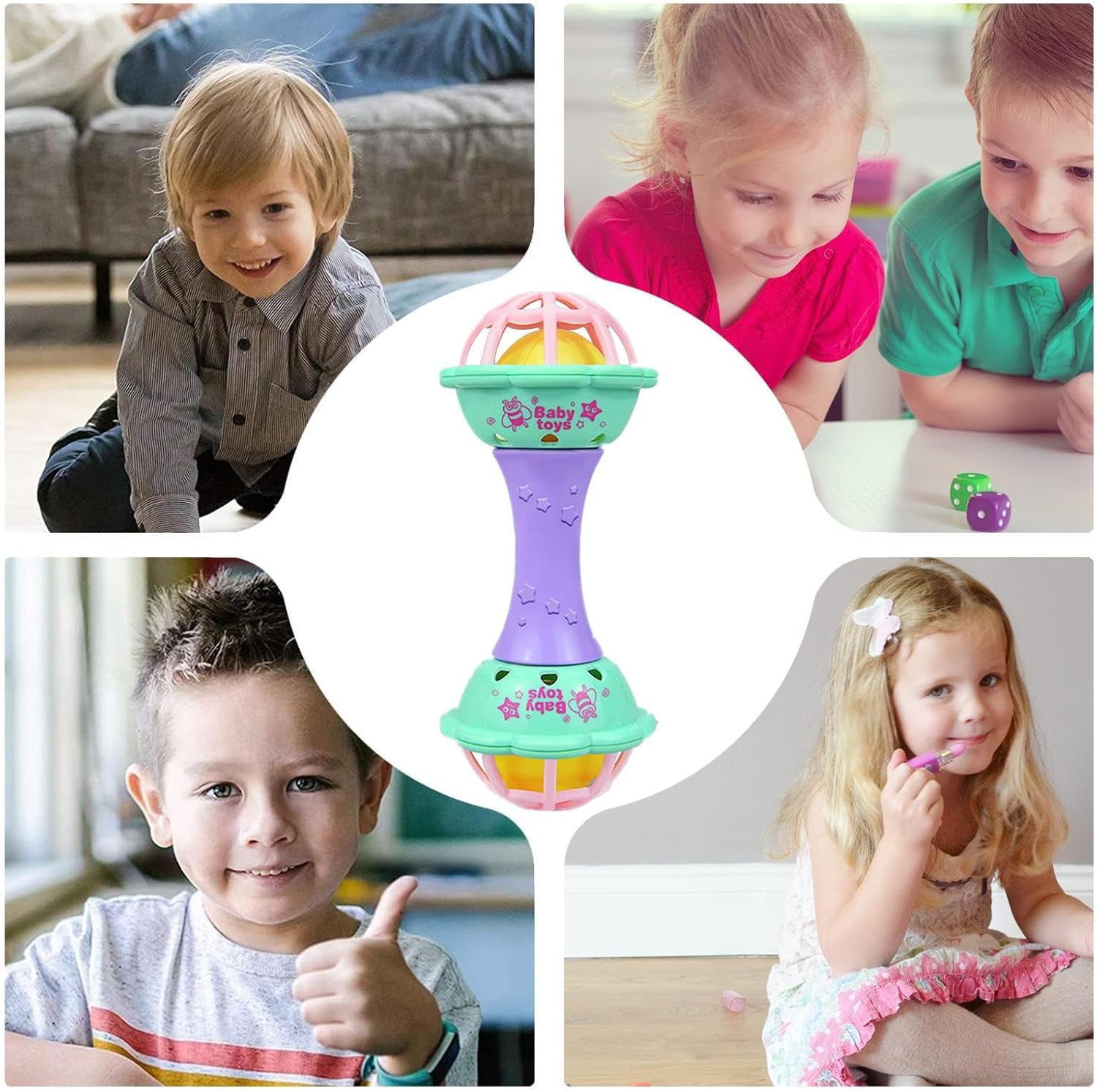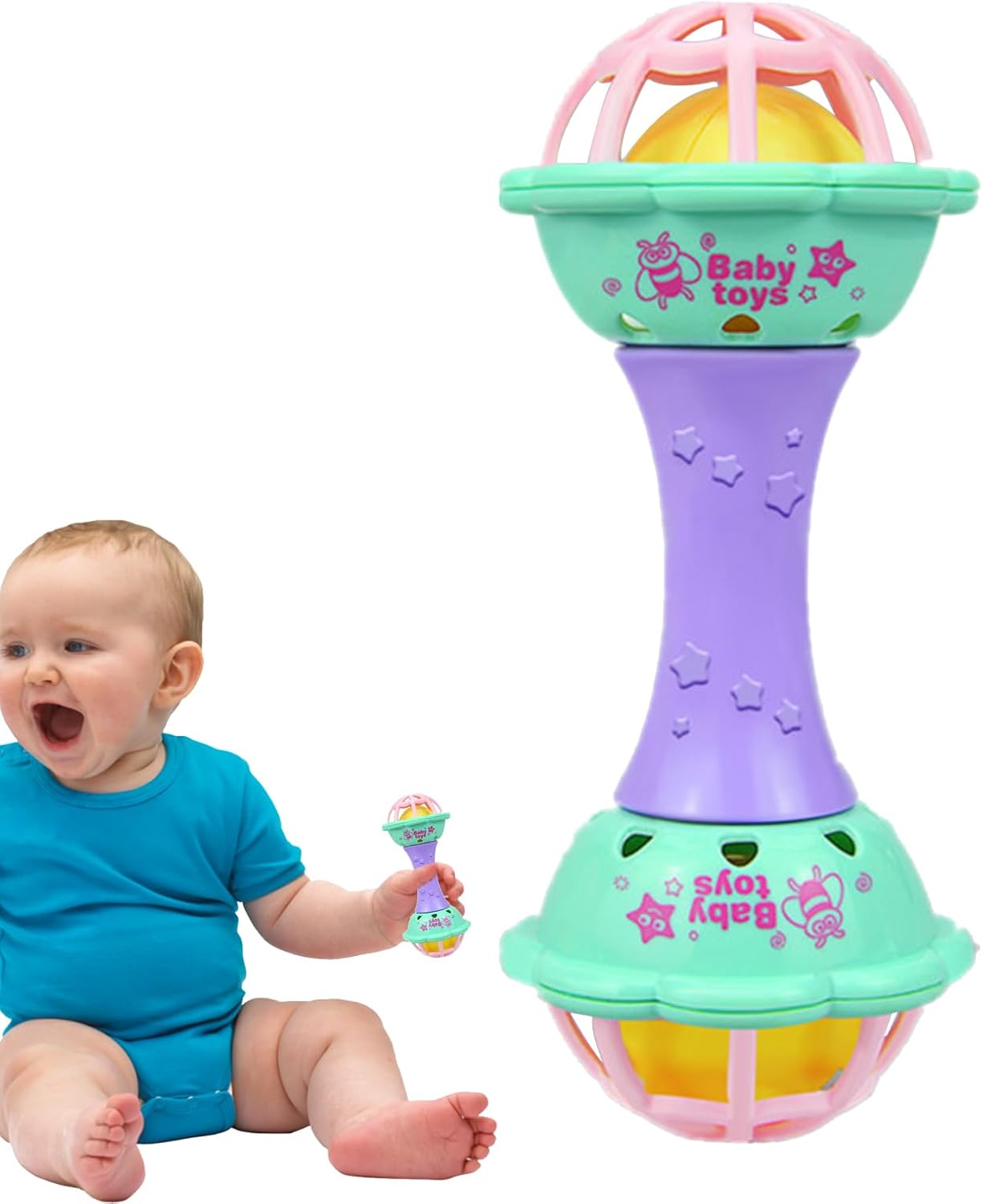 Protezione senza preoccupazione: realizzato in gomma morbida di alta qualità e resistente al calore, questo giocattolo Shaker è progettato per prevenire lesioni accidentali, consentendo al bambino di giocare con tranquillità grazie al suo tocco sicuro, innocuo, morbido e confortevole abilità cognitive: perfetto per i bambini piccoli, questo giocattolo di raffica alla moda promuove lo sviluppo dell'udito e del tatto aumentando la coordinazione della mano e la crescita intellettuale attraverso il suo design di fitness educativo Colori vivaci: il giocattolo Shaker è appositamente progettato con colori vivaci e forme carine per stimolare l'interesse cognitivo. Il suo colore e la forma accattivanti attirano efficacemente e mantengono l'attenzione del tuo bambino, migliorando la sua esperienza sensoriale e incoraggiando l'apprendimento della progressione Promuove l'esplorazione sensoriale: perfettamente di dimensioni per piccole mani, questo giocattolo Shaker promuove le capacità motorie e lo sviluppo muscolare attraverso un gioco facile e attraente Funzioni multiple: Shaker Toy fornisce sviluppo fisico e cognitivo attraverso le sue caratteristiche di gioco multifunzionali. I bambini possono giocare e fare esercizio con le funzioni di sonagli e fitness, rendendolo uno strumento divertente e indispensabile per l'allenamento precoce e fitness