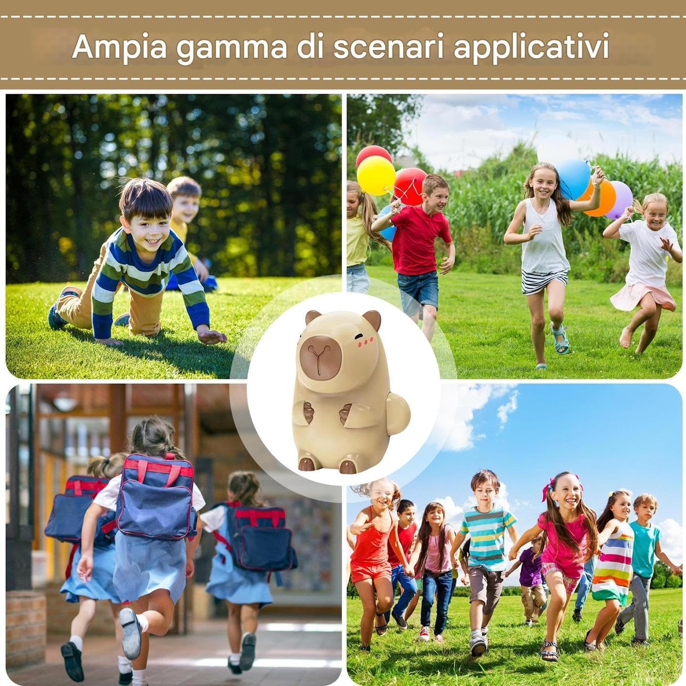 Materiale Resistente: Costruito in ABS sicuro per bambini, lo spruzzatore acqua ha design inodore e bordi arrotondati per una presa sicura durante giochi interni o esterni. Fattura Eccellente: Pulsante sensibile per uso intuitivo, costruzione resistente assicura durata. Ingresso acqua invisibile aggiunge dettagli autentici per esperienza coinvolgente. 3. Creatività per Bambini: La forma tenera di capibara, il design arrotondato e la palette di colori tenui offrono un richiamo visivo per bambini e collezionisti, assicurando un gioco creativo e coinvolgente. Intrattenimento intuitivo:Creare momenti indimenticabili è semplice con questo spruzzatore manuale per attività acquatiche estive. La portata controllata e l'utilizzo diretto lo rendono per giochi interattivi genitori-figli nei parchi o giardini, adatto a tutte le età. Versatilità: Combinando funzione decorativa e utilità pratica questo schizzetto d'acqua si integra perfettamente su scrivanie in auto o durante feste diventando un accessorio portatile e un ornamento affascinante per tutte le occasioni