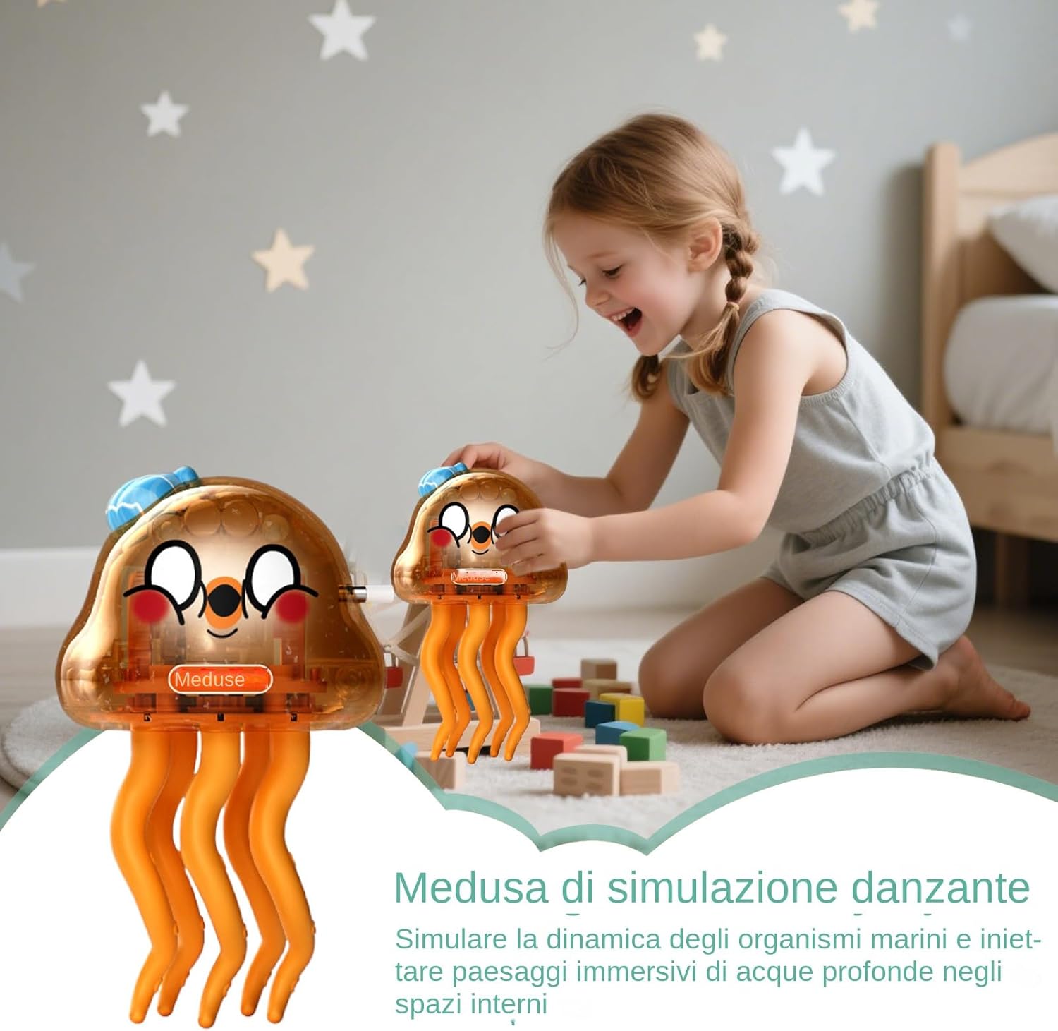 Luci Dinamiche: Traiettorie luminose danzanti con tentacoli regolabili un'esperienza che fonde arte e divertimento in modo armonioso. Posizionamento Versatile: Perfetta per camere da letto e salotti, garantisce compatibilità con l'ambiente da campeggio grazie al meccanismo a orologeria durevole per un divertimento costante senza bisogno di batterie Movimento Marino Realistico: Dinamiche marine simulate attraverso il nuoto naturale della medusa e bagliori sereni, creando un'ambientazione sottomarina coinvolgente per relax Sicurezza Modernizzata: Struttura tondeggiante e di angoli acuti permette interazione sicura senza preoccupazioni, adatta a utenti di ogni età che cercano intrattenimento affidabile e piacevole Esperienza di Gioco Adattabile: Con la capacità di funzionare in diverse posizioni, questo medusa giocattolo garantisce la creazione di dinamiche e si adatta a vari ambienti, offrendo modalità versatili per un divertimento più interattivo
