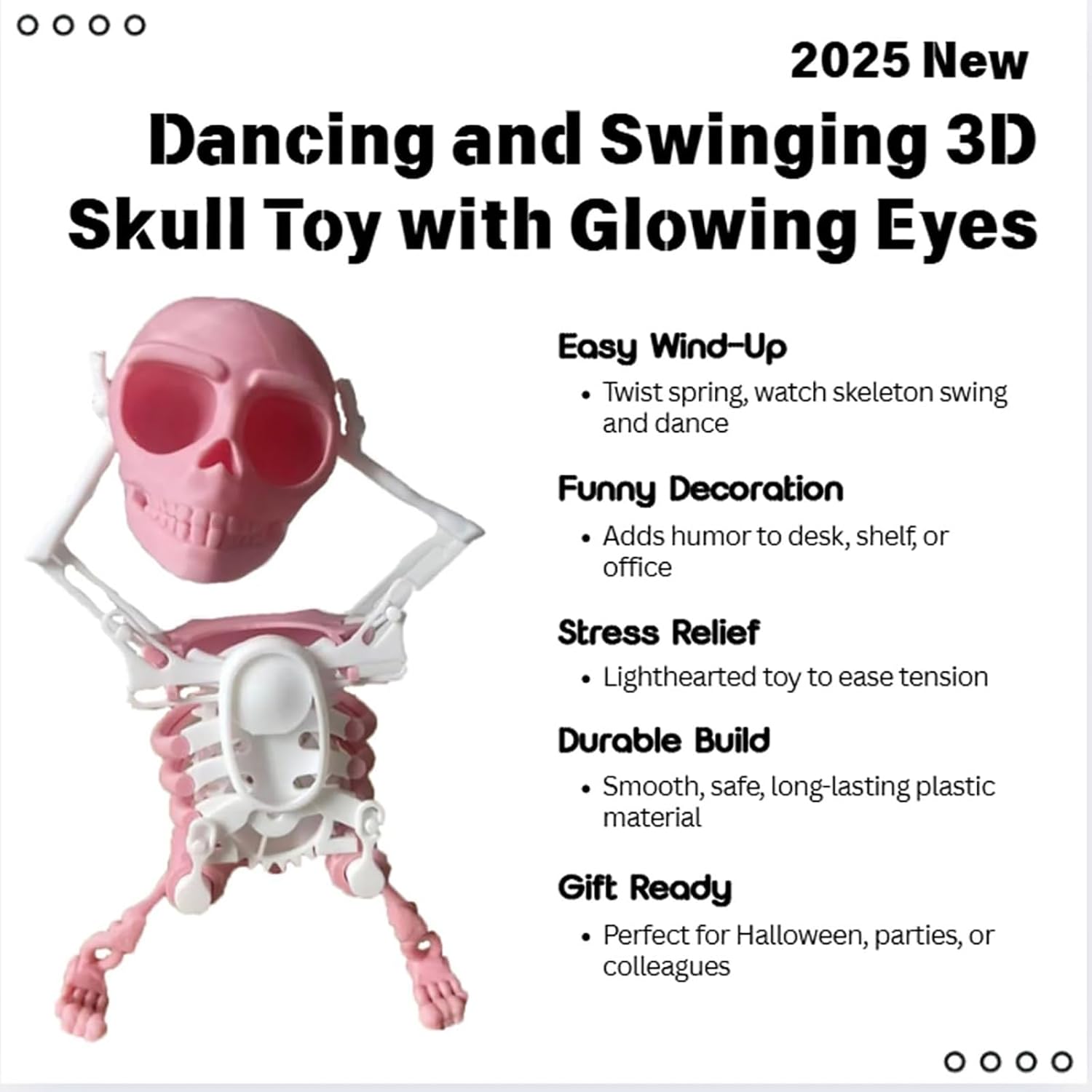 Realizzato in plastica di qualità con bordi lisci, questo giocattolo a forma di scheletro è sicuro da maneggiare, privo di sbavature e resistente alle crepe, garantendo un divertimento duraturo for bambini e adulti. Non sono necessarie batterie, basta girare la molla for guardare lo scheletro oscillare e ballare con un movimento unico azionato da ingranaggi, offrendo uno spettacolo divertente che farà sorridere tutti Perfetto come ornamento da scrivania, espositore da scaffale o decorazione for finestre, questo bizzarro scheletro aggiunge un fascino giocoso a case, uffici o aule, catturando facilmente l'attenzione. Progettato for ondeggiare e dimenarsi, questo scheletro danzante è un delizioso compagno antistress, che offre divertimento spensierato e relax durante le pause di lavoro o di studio. Un regalo divertente e spiritoso for amici, familiari e colleghi, ideale for compleanni, feste di Halloween o scambi di lavoro, che garantirà risate e gioia.