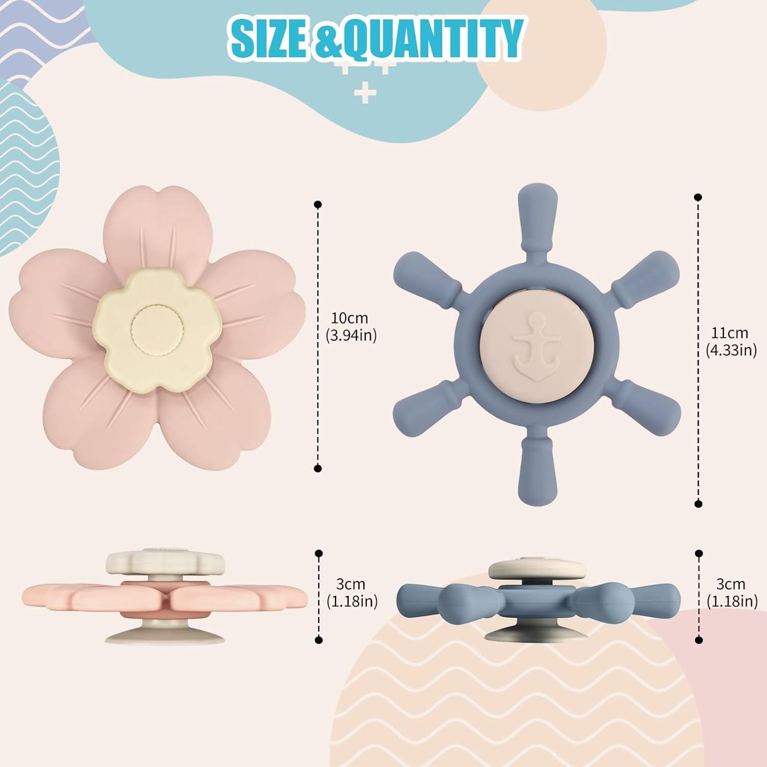 Massima sicurezza grazie al design senza cuciture: a differenza dei tradizionali giocattoli di plastica, il nostro spinner in silicone è composto da un unico pezzo, senza parti sciolte, senza rischio di soffocamento. Realizzato in silicone alimentare, privo di PVC e BPA, è morbido, delicato sulla pelle e assolutamente sicuro per i bambini che vogliono masticarlo. Tenuta extra forte su tutte le superfici lisce: la ventosa ad alte prestazioni aderisce saldamente a seggioloni, piastrelle, finestre o vassoi per aerei. Anche in caso di divertimento selvaggio, lo spinner non si stacca, sia a casa che in viaggio. Stimola le abilità motorie giocose: il vivace spinner rotante risveglia la novità del tuo bambino e allena giocosamente la coordinazione occhio-mano e le capacità cognitive. I colori tenui e la forma amichevole stimolano l'esplorazione. Resistente al calore e igienico: da -40 °C a 240 °C, perfetto per sterilizzazione, lavastoviglie o congelatore. La superficie liscia previene la formazione di batteri ed è facile da pulire. Ideale per il bagno, i viaggi o il seggiolone 【Perfetto come regalo per bambini】Il set da 2 in colori alla moda è il regalo ideale per bambini e bambine a partire da 1 anno. Compatto, leggero e sempre a portata di mano: nello zaino fasciatoio, nel bagaglio o per giocare comodamente a casa.