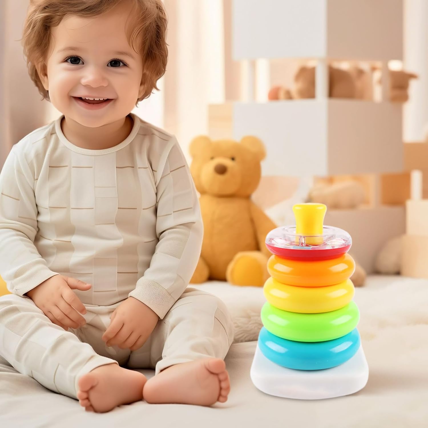 Base Stabile: Combinazione innovativa di anelli impilabili e base oscillante autobilanciante che mantiene l'equilibrio durante il gioco, con tecnologia anti-ribaltamento e ripristino automatico della posizione per divertimento continuo e sicuro Sviluppo Sensoriale: Promuove la precisione nella coordinazione occhio-mano attraverso tonalità accese, sostenendo la scoperta tattile e lo sviluppo cognitivo. Le attività ludiche di assemblaggio introducono concetti logici di base in modo intuitivo e divertente. Abilità motorie: Ideale per da 6 mesi, la struttura stabile e gli anelli proporzionati facilitano l'acquisizione di capacità manuali avanzate attraverso ripetizioni giocose in totale sicurezza Interazione Genitore-Bambino: Stimola la curiosità attraverso il movimento oscillante e gli anelli impilabili, progettato per incoraggiare il gioco interattivo e rafforzare naturalmente il tra genitori e bambini durante le attività di stacking Design ergonomico: Forme arrotondate studiate per le manine dei piccoli, facilitano l'impilamento creativo. Peso ottimizzato (meno di 400g) per stimolare la coordinazione occhio-mano senza affaticamento