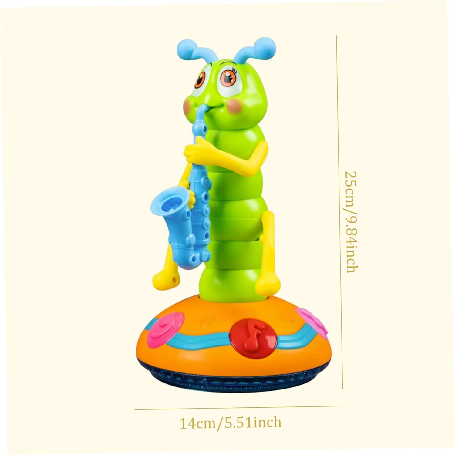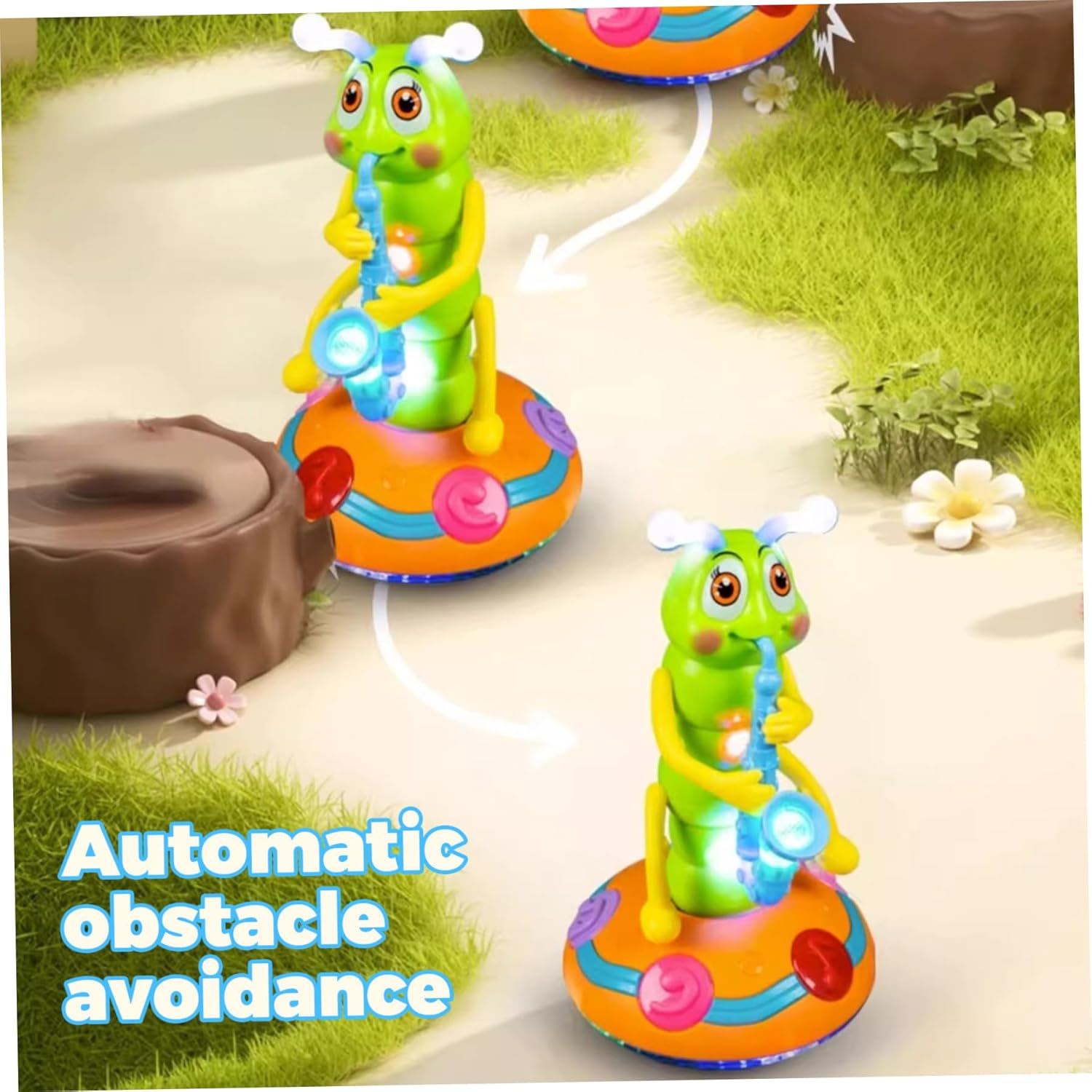 2 modalità di gioco: il bruco elettrico presenta 2 modalità, la modalità luci e la modalità danza..Spingi l'interruttore sulla prima posizione per la modalità luce e le luci colorate sul corpo e sulla base del bruco lampeggeranno, luci affascinanti che attirano l'attenzione dei bambini..Spingere l'interruttore nella seconda posizione per la modalità ballo..Il giocattolo del bruco oscillerà e danzerà con le luci e i suoni, spingendo i bambini a stringere la mano e torcere il corpo, migliorando Ottimo per i bambini: giocattolo a forma di bruco in plastica, accessorio perfetto per la decorazione domestica, feste, creando un'atmosfera vivace e calda..Perfetto per bambini, neonati, bambini piccoli, i tuoi amici e te stesso, come il compleanno. Evitamento automatico degli ostacoli: dotato di sensori intelligenti, questo giocattolo a forma di bruco muove nel suo ambiente evitando automaticamente gli ostacoli, garantendo un'esperienza di ballo senza soluzione di continuità e ininterrotta, promuovendo la consapevolezza spaziale nei bambini. Apprendimento educativo per i più piccoli: adatto per la fascia di età da 0 a 3 anni, questo giocattolo offre molto più che un semplice intrattenimento;.stimola lo sviluppo cognitivo, la coordinazione e l'apprezzamento del ritmo, rendendolo un giocattolo di apprendimento ideale per lo sviluppo della prima infanzia. Sicuro: il giocattolo Caterpillar che balla e canta utilizza plastica atossica e innocua, ABS spesso e sicuro, inodore..La superficie liscia e il bordo arrotondato, non graffiano le mani dei bambini, possono essere utilizzati a lungo.