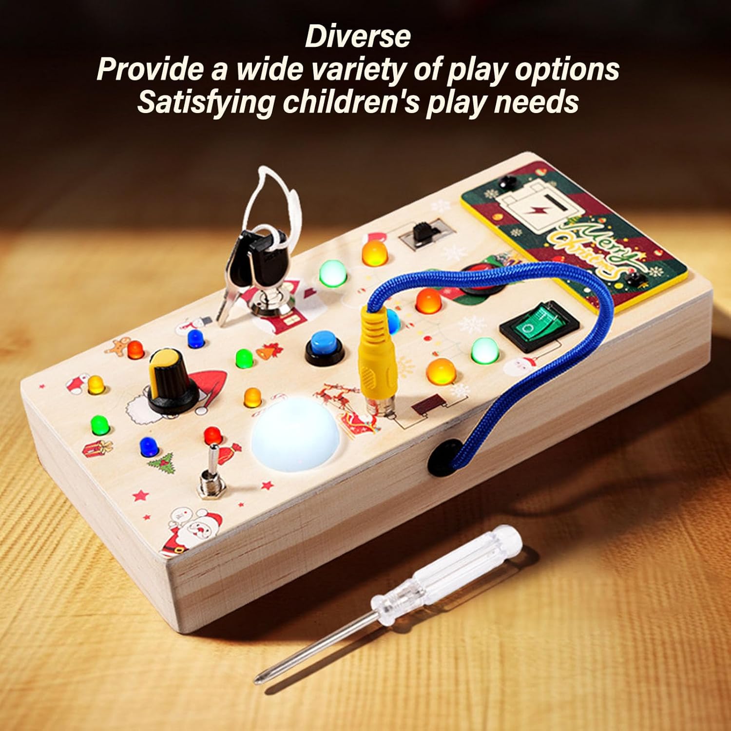 RICCO E DIVERSO: il giocattolo del pannello 'interruttore delle luci offre opzioni di gioco ricche e diverse per soddisfare le esigenze di gioco del tuo bambino. SVILUPPO DELLE ABILITÀ: l'esclusivo design della spina 'interruttore in legno sviluppa la coordinazione occhio-mano e la creatività dei bambini. LUCE LED: il quadro elettrico è dotato di una luce LED brillante, che consente ai bambini di sperimentare divertimento e creatività mantenendo la luminosità sotto controllo. MATERIALE SICURO: il giocattolo del quadro elettrico è realizzato in tiglio di alta qualità, sicuro ed ecologico per i bambini. GIOCATTOLI PER L'ISTRUZIONE PRECOCE: il giocattolo del quadro elettrico è adatto a bambini dai 2 anni in su, promuovendo lo sviluppo 'educazione della prima infanzia.