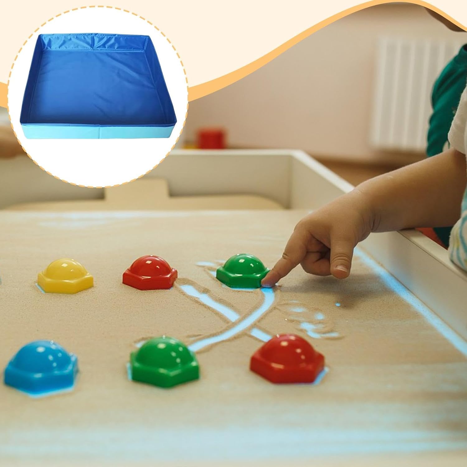 【Installazione semplice】 Installazione semplice senza bisogno di gonfiaggio: basta aprirlo per creare un'area di gioco istantanea, risparmiando tempo e spazio 【Facile da pulire】Lo strato inferiore impermeabile blocca efficacemente l'umidità; la pulizia rapida semplifica la manutenzione 【Materiale】Il giocattolo Sandbox è realizzato in tessuto Oxford resistente agli strappi, che garantisce durata e le perdite, rendendolo ideale per un uso a lungo termine 【Pieghevole】Il pratico design pieghevole del vassoio della sabbiera consente una facile conservazione e portabilità, così i bambini possono divertirsi a giocare ovunque 【Applicazione】Il vassoio per sabbiera per bambini è compatibile con vari tipi di sabbia e giocattoli come o pale, migliorando l'esperienza di gioco interattiva dei bambini