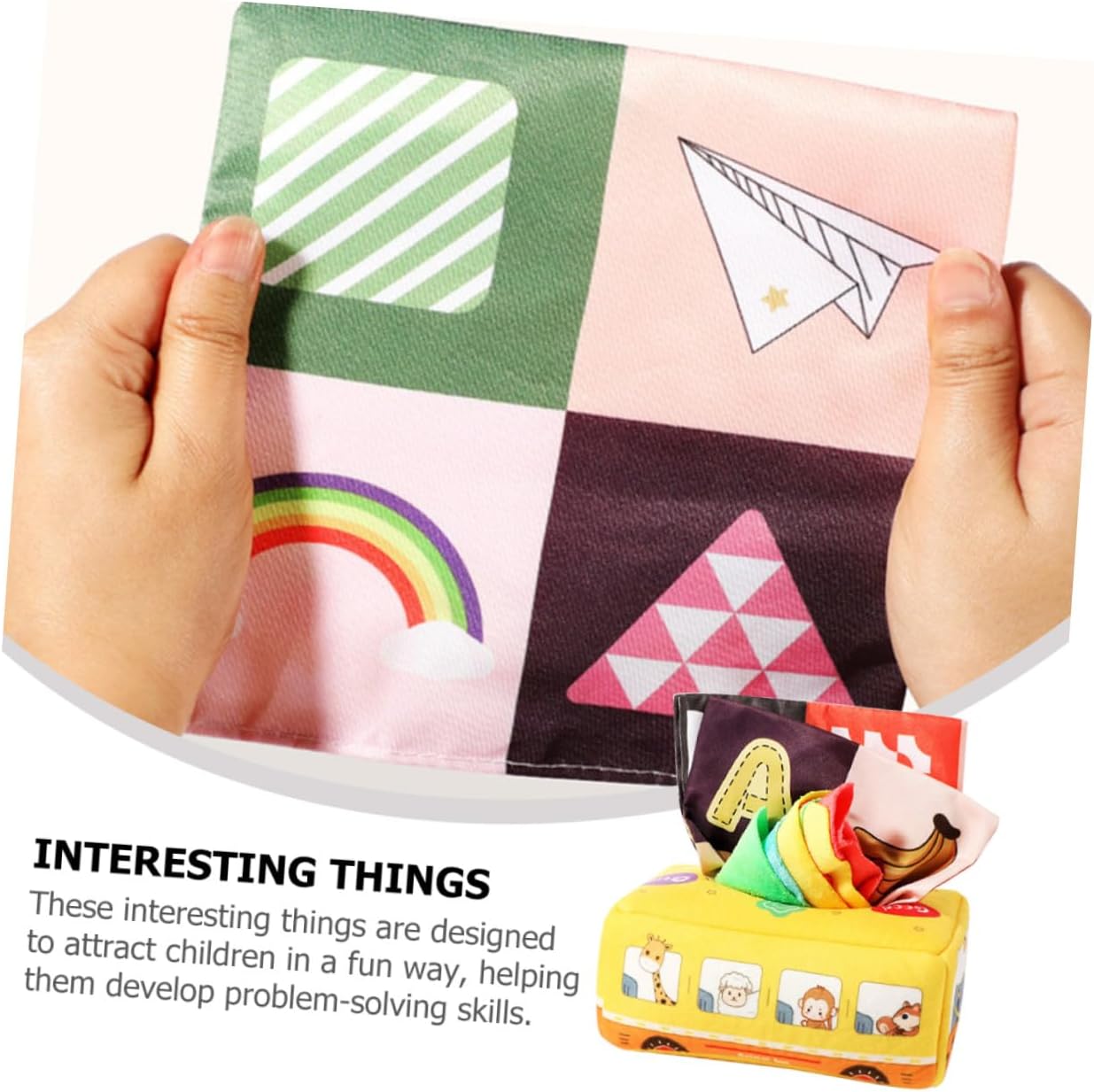 Giocattolo con scatola di fazzoletti per neonati: il colore brillante e i motivi affascinanti del giocattolo con scatola di fazzoletti possono attirare l'attenzione del bambino. Giocattolo in tessuto per bambini: realizzato in materiale di tessuto leggero con buona fattura, giocattolo con scatola di fazzoletti sensoriali in tessuto antistrappo: misura adatta per la mano del bambino. La nostra scatola di fazzoletti attirerà l'attenzione del tuo bambino. un buono, un giocattolo sensoriale montessori per i più piccoli: ha la capacità di rompere la resistenza, è molto pratico, ha una consistenza eccellente, un giocattolo in tessuto per neonati sensoriale per: la scatola dei fazzoletti è elastica, quindi i bambini possono usarla più facilmente. il giocattolo del bambino tira fuori i fazzoletti