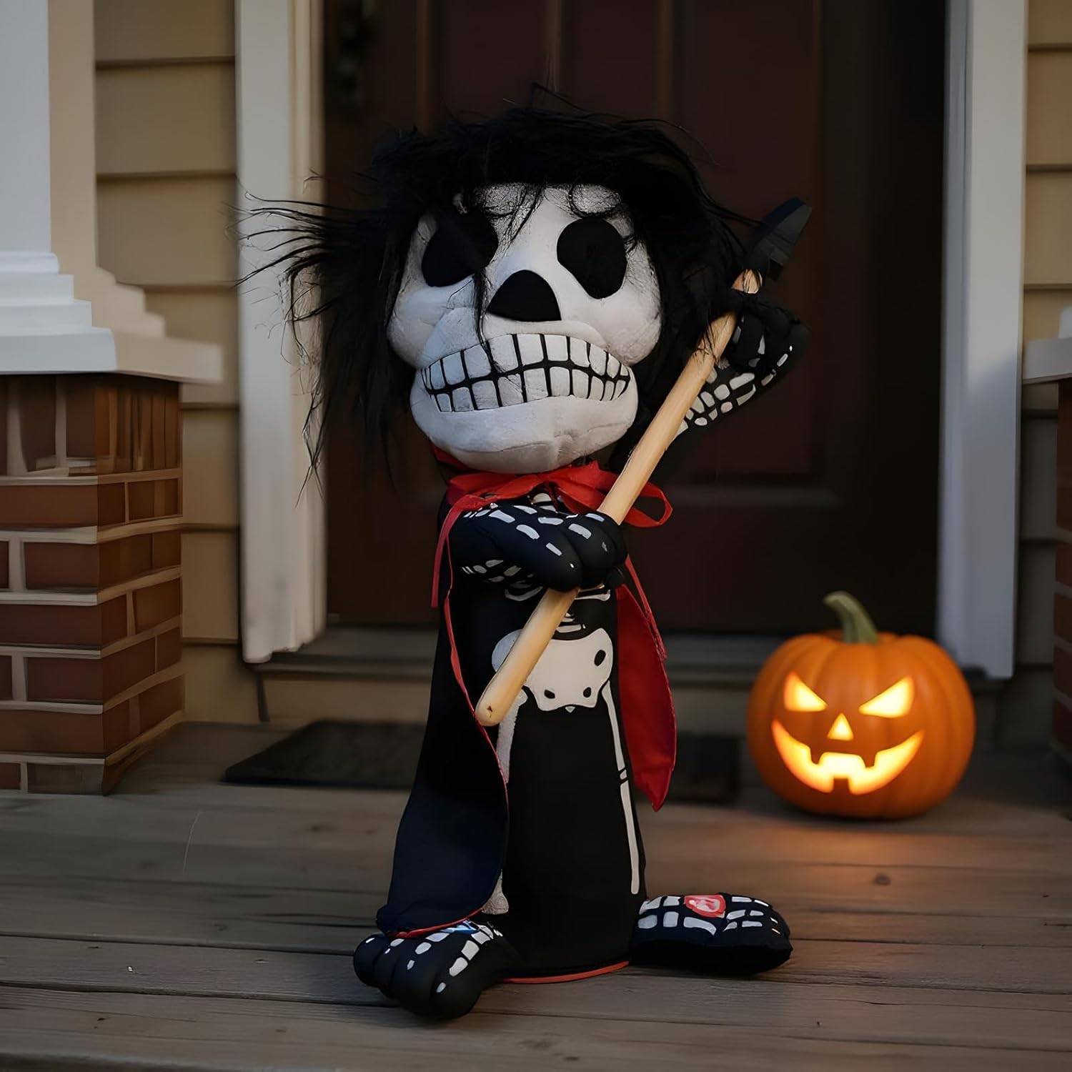 Effetti di luce ipnotici: gli occhi luminosi rossi e verdi dello scheletro di Halloween creano effetti tremolanti dinamici e sono chiaramente visibili da oltre 10 metri di distanza per un effetto affascinante durante le decorazioni notturne Portatile e wireless: funziona a batteria all'interno e all'esterno senza bisogno di cablaggio. Il portabatteria integrato consente un facile montaggio e un trasporto senza stress della decorazione di Halloween. Attivazione intelligente del movimento: il sensore integrato rileva i movimenti e attiva animazioni casuali, garantisce effetti divertenti e funzionamento a risparmio energetico per tutta la stagione di Halloween a lungo termine. Decorazione dinamica del brividio: grida con sensore di movimento con suoni realistici dell'osso per fornire suoni inquietanti; i movimenti articolari aumentano il fattore di spaventosità in ogni stanza Utilizzo universale: gli arti mobili consentono posizioni in piedi e sospese per creare rapidamente scene spaventose su carport, cantine e recinzioni di terreni