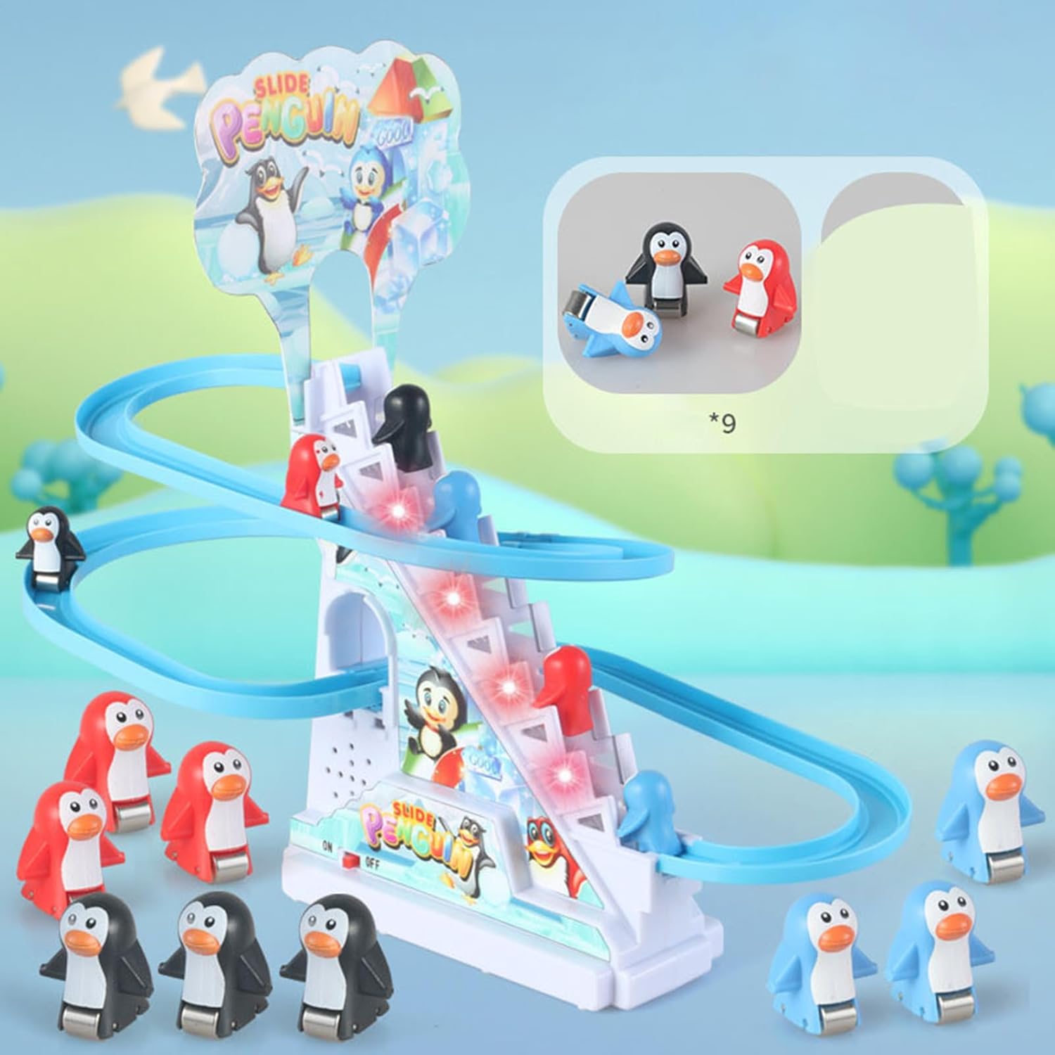 Crea un'atmosfera allegra: mentre i pinguini scivolano giù, luci vibranti e suoni allegri presentano musica vivace e LED lampeggianti, creando un'atmosfera festosa e aggiungendo entusiasmo a qualsiasi celebrazione Promuovi l' familiare: il giocattolo con scivolo Penguin cattura l'immaginazione dei bambini mentre guardano i pinguini correre, scivolare e scivolare sulla pista. per sviluppare la coordinazione occhio-mano e promuovere l'interazione sociale, questo set di giocattoli coinvolgente e interattivo è per allietare la corsa con gli amici o la famiglia Installazione semplice: grazie all'installazione e alla sostituzione semplici della batteria, il Penguin Slide Toy è facile da installare e garantisce maggiore divertimento. È un'opzione perfetta da godersi a casa o all'aperto, pronta per iniziare il divertimento ovunque e in qualsiasi momento Outlet creativo: questo giocattolo con scivolo a forma di , con la sua pista da corsa colorata e le coinvolgenti funzionalità interattive, è un regalo per la stagione invernale. Delizia i bambini di tutte le età, è un modo per aggiungere allegria festosa e divertimento ad ogni occasione Esperienza interattiva emozionante: emozionante giocattolo da corsa con che garantisce ore di divertimento per e bambini, incoraggiando risate e partecipazione con ogni gioco emozionante
