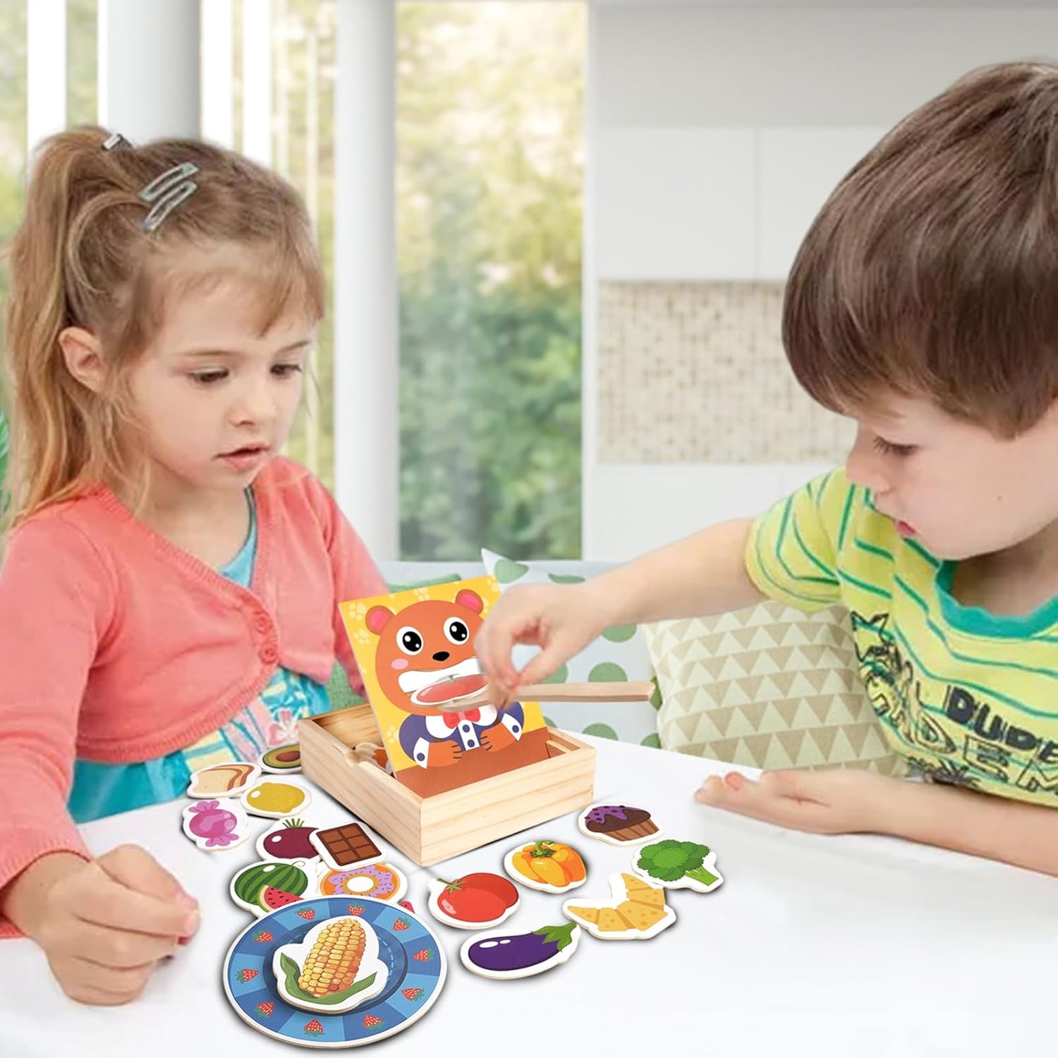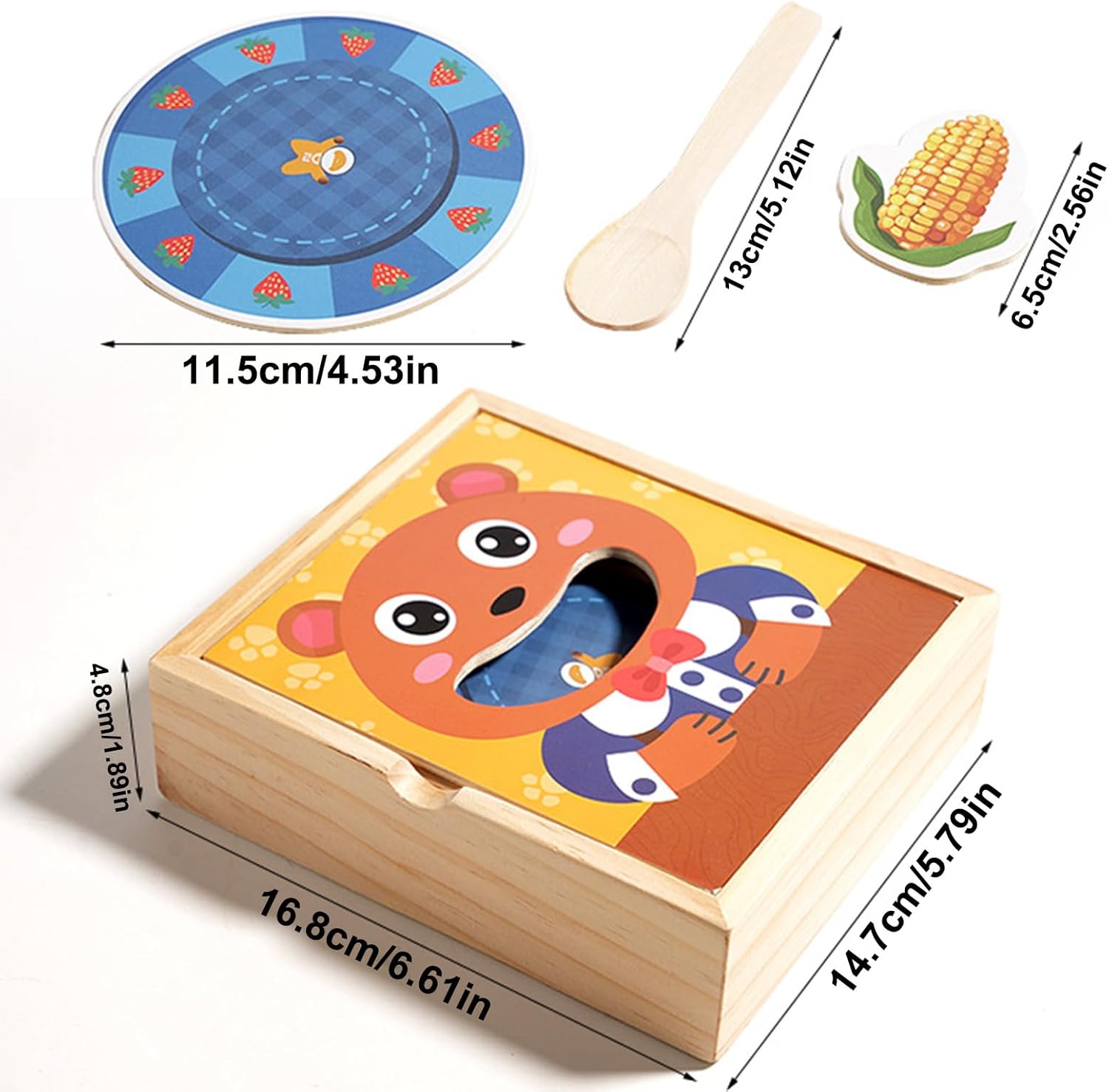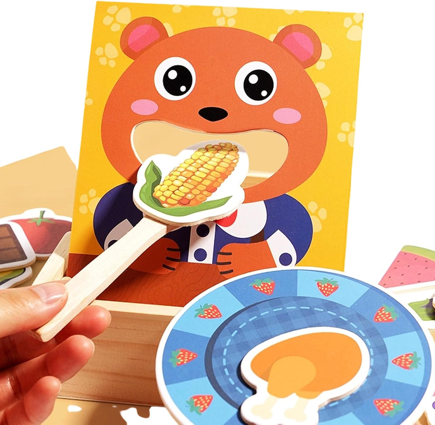 Miglioramento della cura di sé: promuove la crescita cognitiva con la pratica pratica nell'organizzazione dei tipi di cibo, integrando sottilmente l'uso di utensili e le capacità di auto-cura durante i corsi di gioco interattive del giocattolo di simulazione alimentare Esplorazione cognitiva: l'educazione dietetica quotidiana con carte alimentari altamente realistiche stimola l'esplorazione e costruisce il riconoscimento dei dessert di verdure di frutta per l'illuminazione cognitiva Migliorare il coordinamento occhio-mano: le pinze di legno esercitano l'attenzione migliorando al contempo la coordinazione occhio-mano e le capacità motorie a pressione attraverso le attività di crastro che supportano il sviluppo muscolare naturalmente durante il gioco Promuovere la crescita socio-emotiva: questo giocattolo da alimentazione in legno incoraggia la responsabilità di cura attraverso il gioco di ruolo degli animali che offre un modo interattivo per rafforzare le connessioni genitore-figlio e supportare l'apprendimento basato sul gioco per un miglioramento dello sviluppo socio-emotivo Conveniente Gestione dei giocattoli: promuove buone abitudini di stoccaggio attraverso l'organizzazione naturale di stoccaggio in legno e un'organizzazione guidata, consentendo alla pulizia dei giocattoli senza sforzo di mantenere un ambiente di gioco organizzato e semplificando le attività di riordino giornaliere