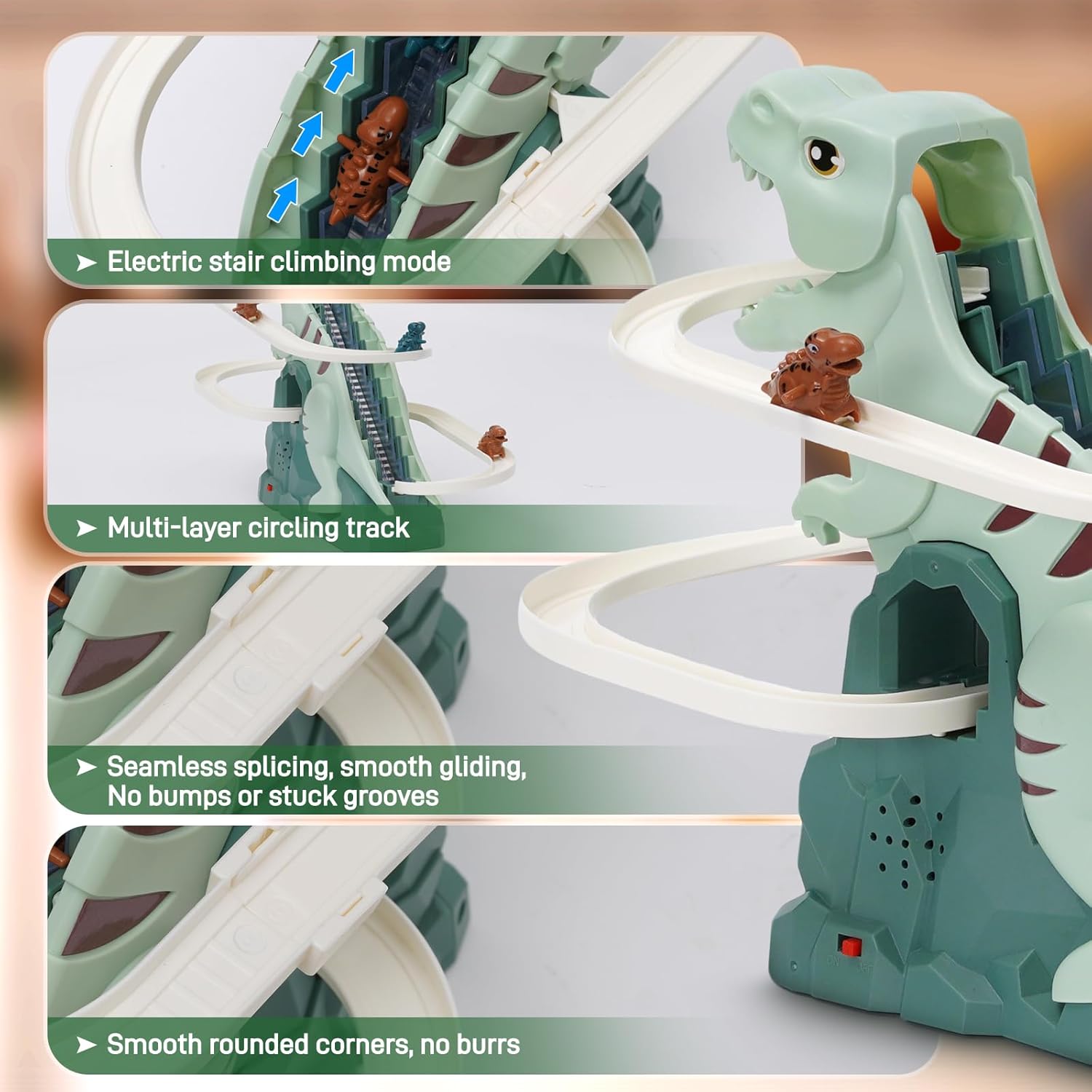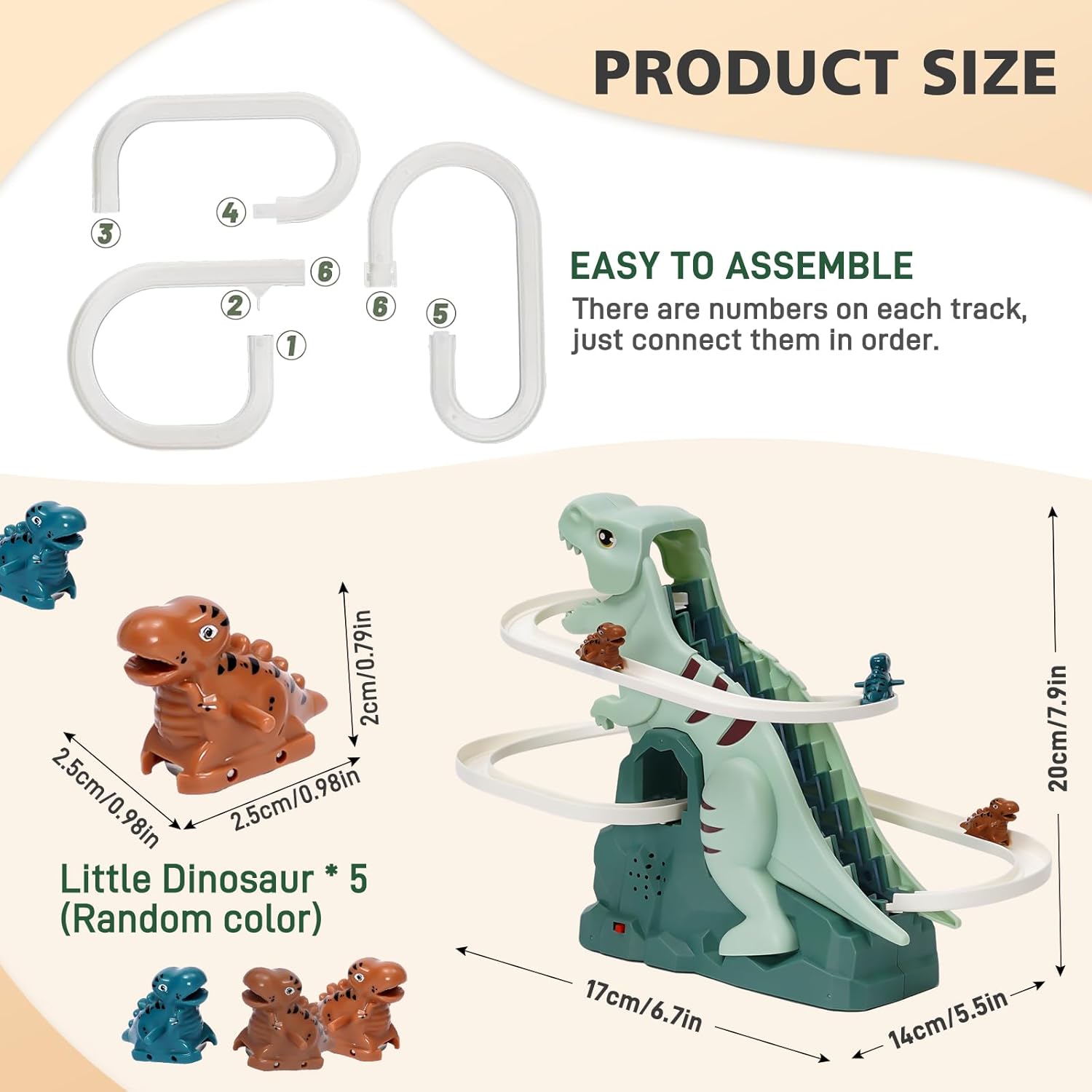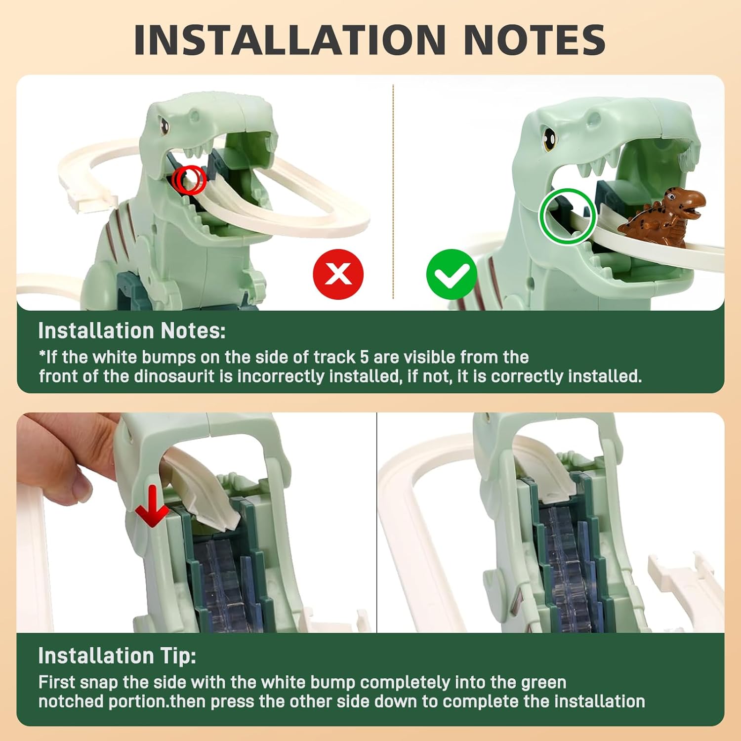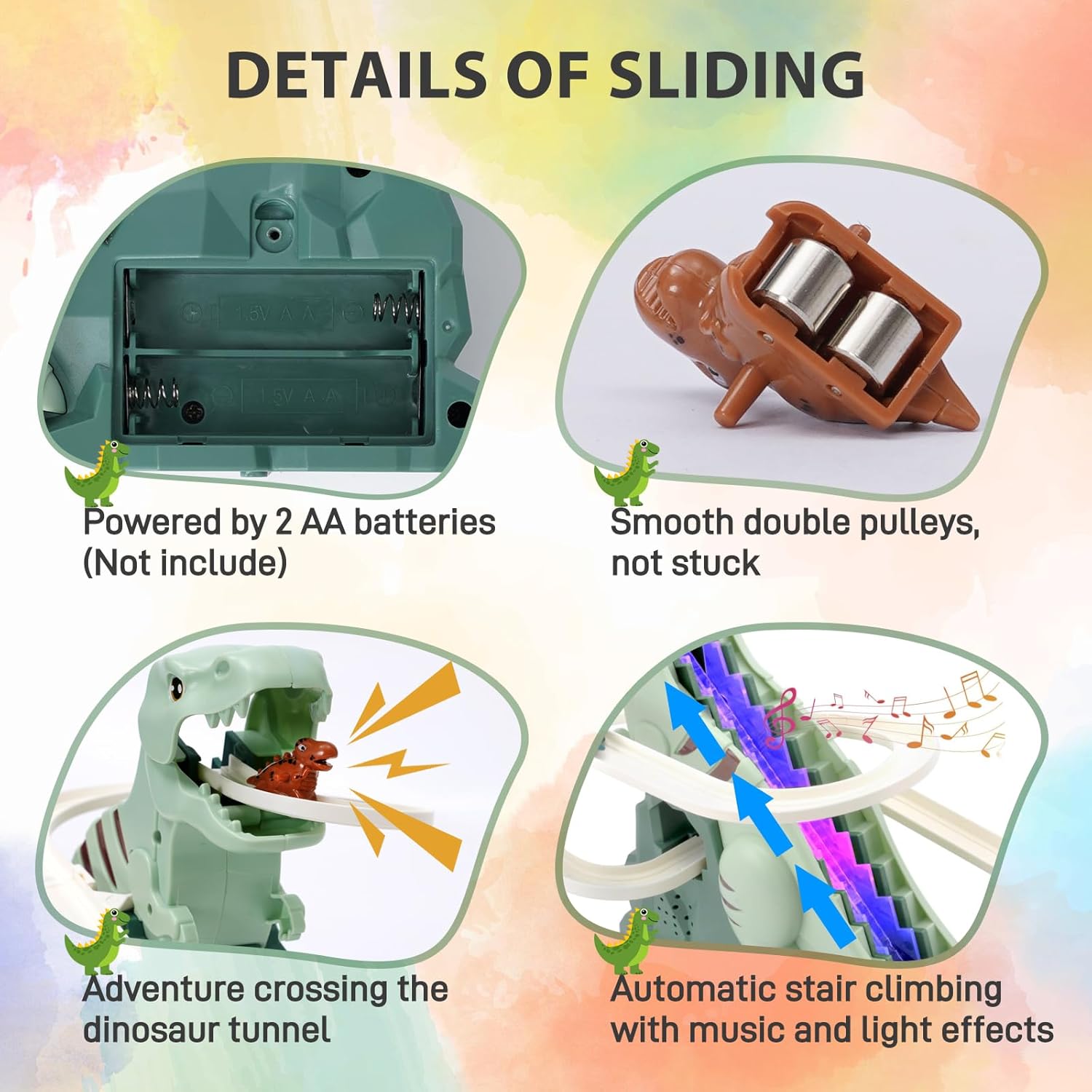 Avventura divertente: piccolo dinosauro che scivola attraverso il tunnel dei dinosauri, scivolando in bicicletta elettrica, divertente gioco di avventura non è monotono, divertimento illimitato. Nota per l'installazione: se il rigonfiamento bianco sul lato del binario 5 è visibile dalla parte anteriore del dinosauro, è stato installato in modo errato; in caso contrario, è stato installato correttamente!! !