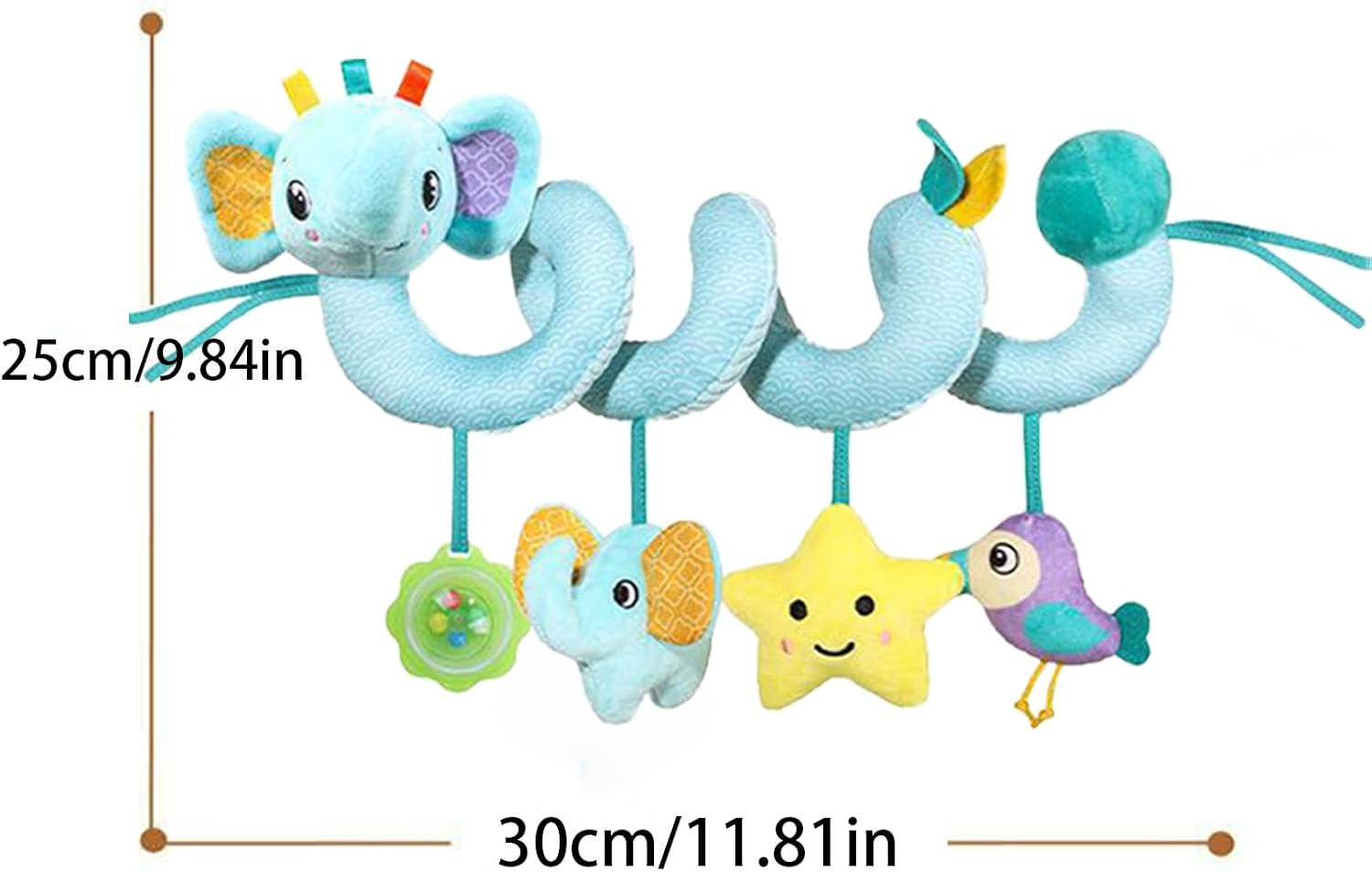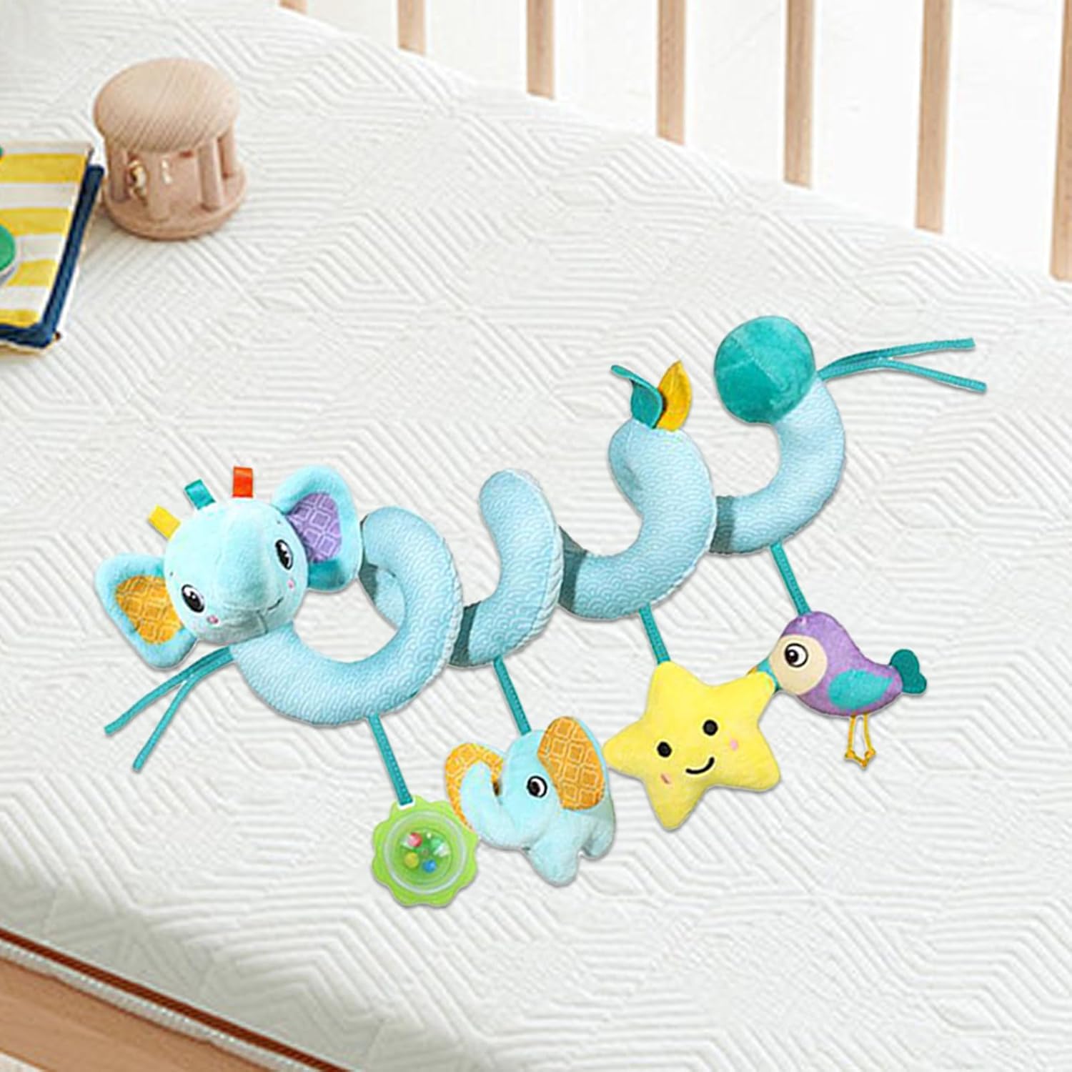 di Fissaggio Regolabile: Meccanismo flessibile che assicura installazione rapida su per bambini, evitando spostamenti durante il gioco attivo Stimolo cognitivo precoce: Favorisce lo sviluppo delle capacità cognitive attraverso giochi interattivi che incoraggiano i bambini ad afferrare e raggiungere gli elementi, migliorando naturalmente la coordinazione occhio-mano durante l'utilizzo. Tocco morbidissimo e sicuro: Realizzato in soffice peluche di alta qualità, offre una texture delicata e ipoallergenica per garantire sicurezza e un'esperienza tattile rassicurante per i durante i viaggi in auto Sviluppo sensoriale: Include testurizzati per l'esplorazione tattile e un campanellino integrato che favorisce l'interazione uditiva, stimolando i sensi attraverso colori ad alto contrasto che attirano naturalmente l'attenzione del bebè Supporto relax bebè: Genera melodie morbide con effetto calmante, aiutando il a rimanere felice e tranquillo in auto, diminuendo lo stress legato agli spostamenti e garantendo un viaggio piacevole