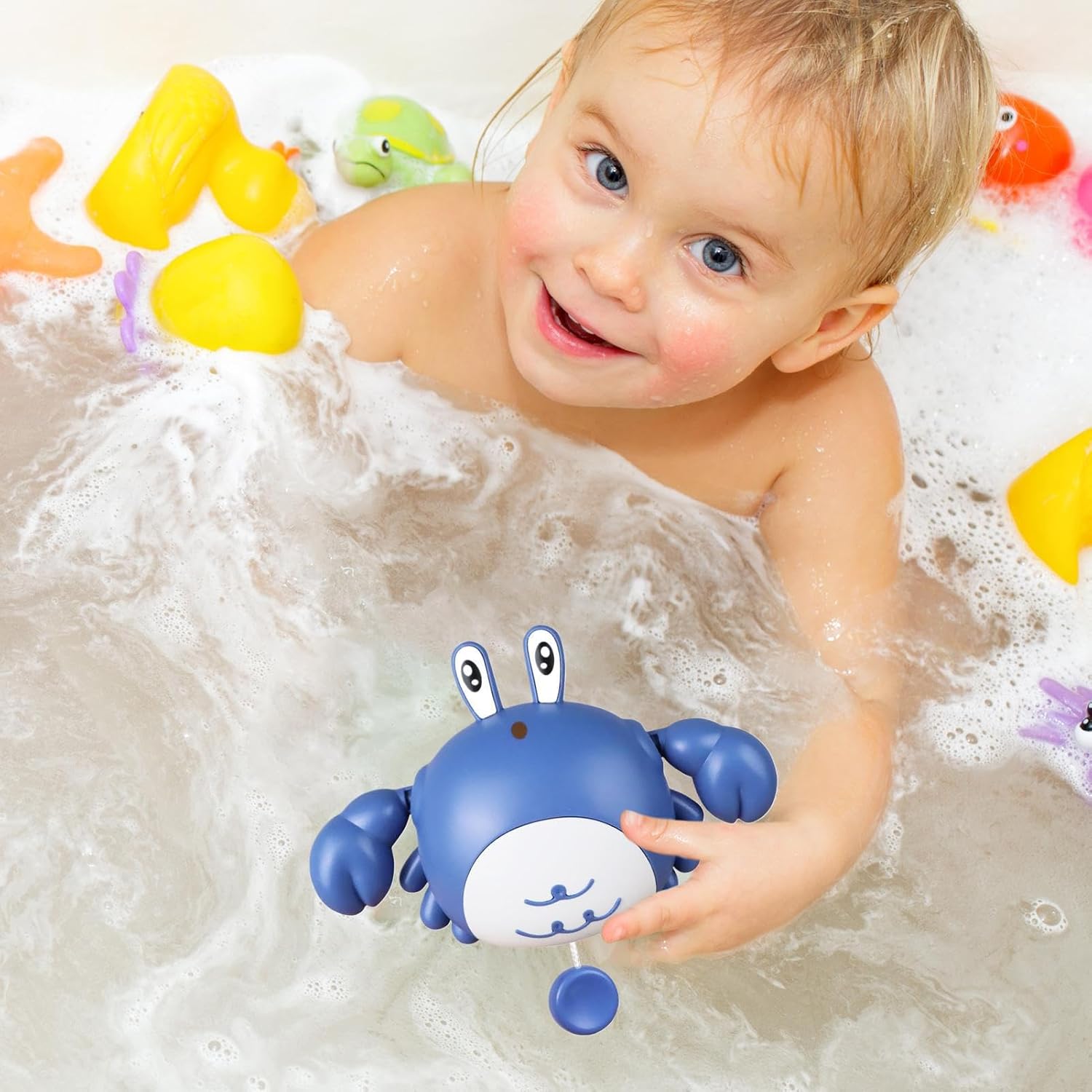 Sicurezza certificata: Forme anatomiche senza spigoli con texture uniforme, protegge naturalmente l'epidermide delicata permettendo ai genitori di gestire il momento del bagno in totale serenità. Design GiocosoIl simpatico volto di granchio stimola il gioco acquatico, accendendo la curiosità dei bimbi durante il bagnetto e trasformando ogni momento in un'esperienza interattiva che unisce divertimento ed esplorazione naturale dei giocattoli da vasca Divertimento Assicurato: Ispira una percezione del bagnetto attraverso un gioco da vasca che combina appeal tenero e funzionalità stimolanti, rendendo ogni lavaggio un momento di gioia condivisa. Gioco interattivo: Con un pratico di caricamento a cordino, stimola lo sviluppo della coordinazione occhio-mano nei bambini, offrendo intrattenimento acquatico coinvolgente attraverso movimenti natatori realistici che catturano l'attenzione durante il bagno. Esperienza Sensoriale: Accendete la curiosità dei più piccoli con un gioco da bagno multifunzionale che unisce elementi tattili, visivi e uditivi nel contesto di un'avvincente sfida acquatica familiare