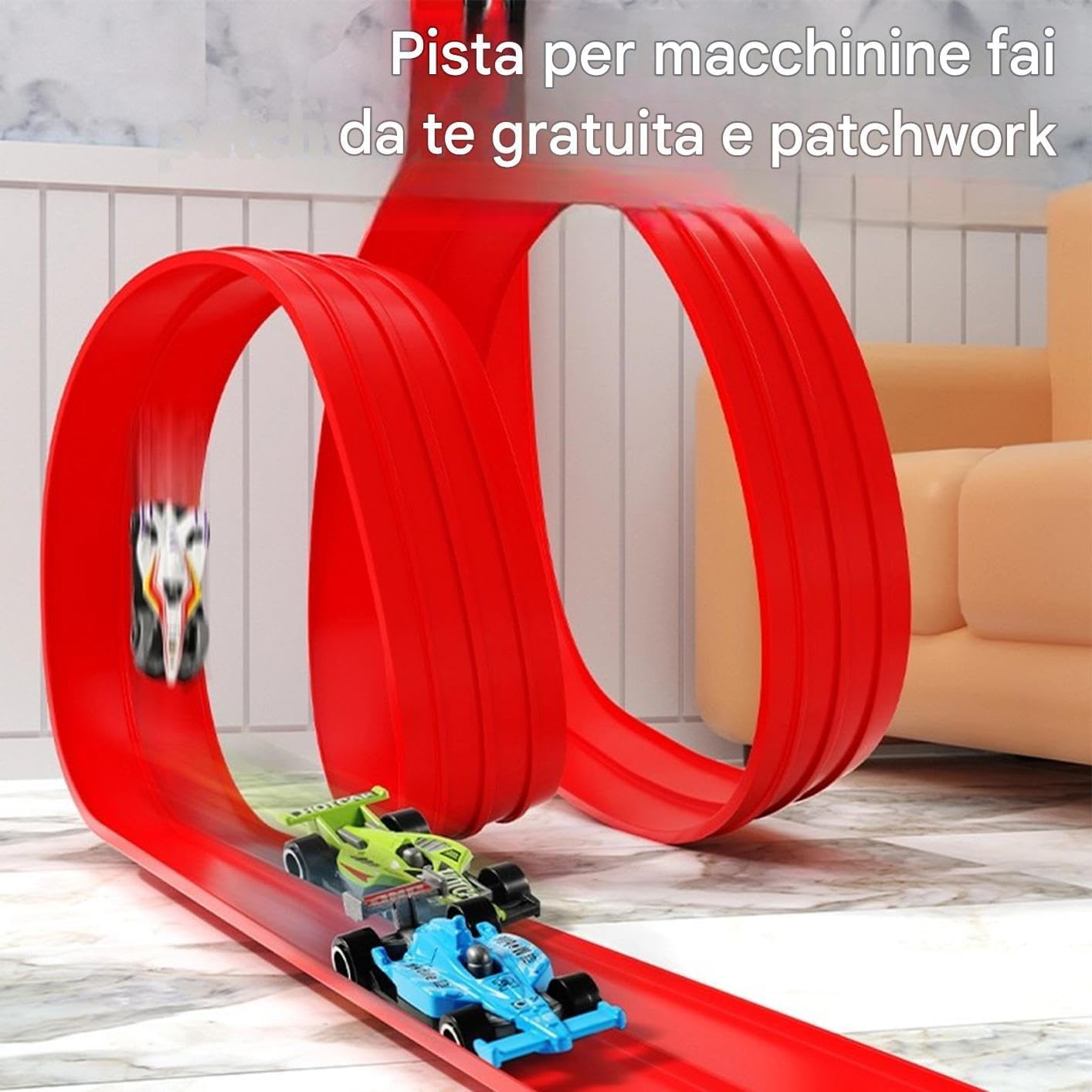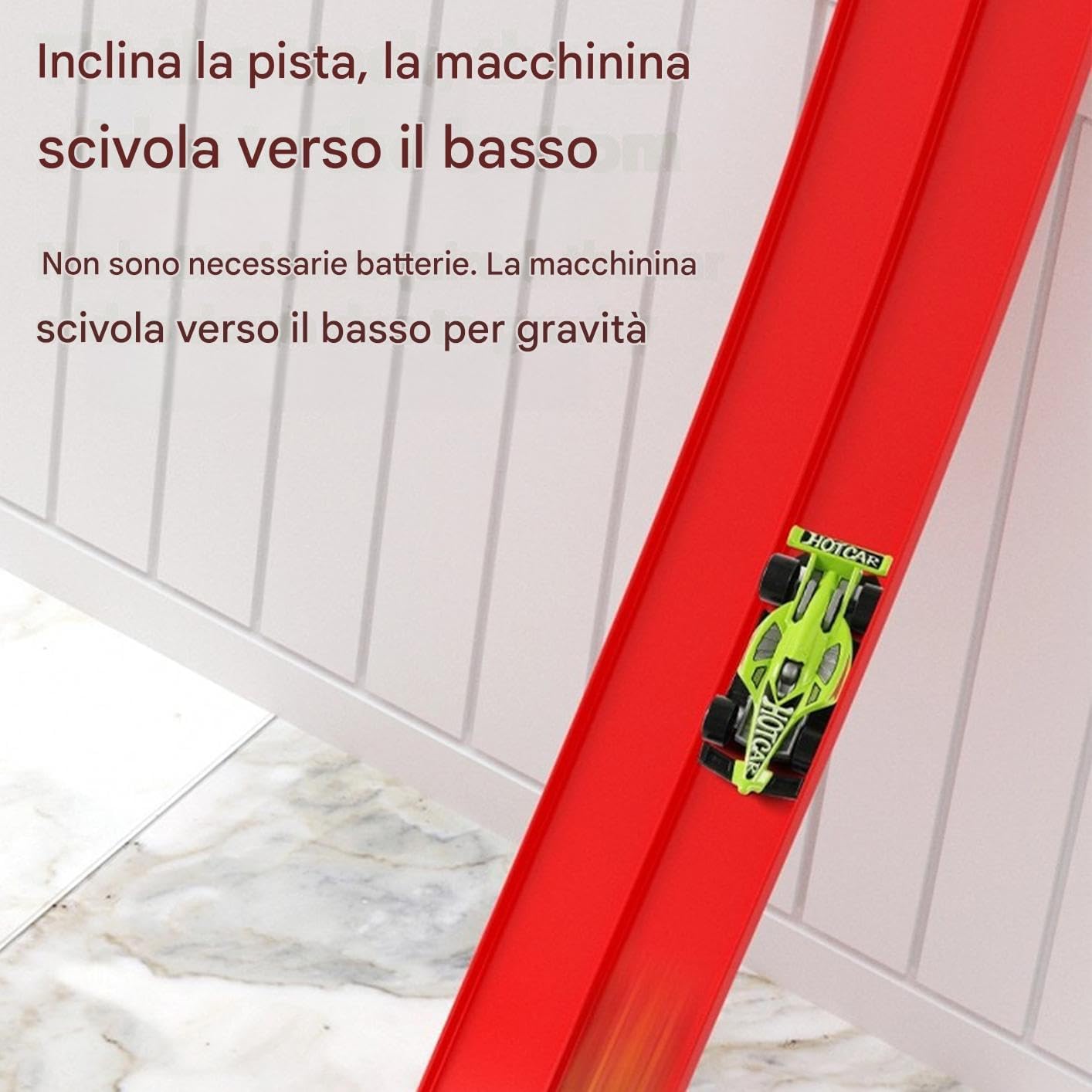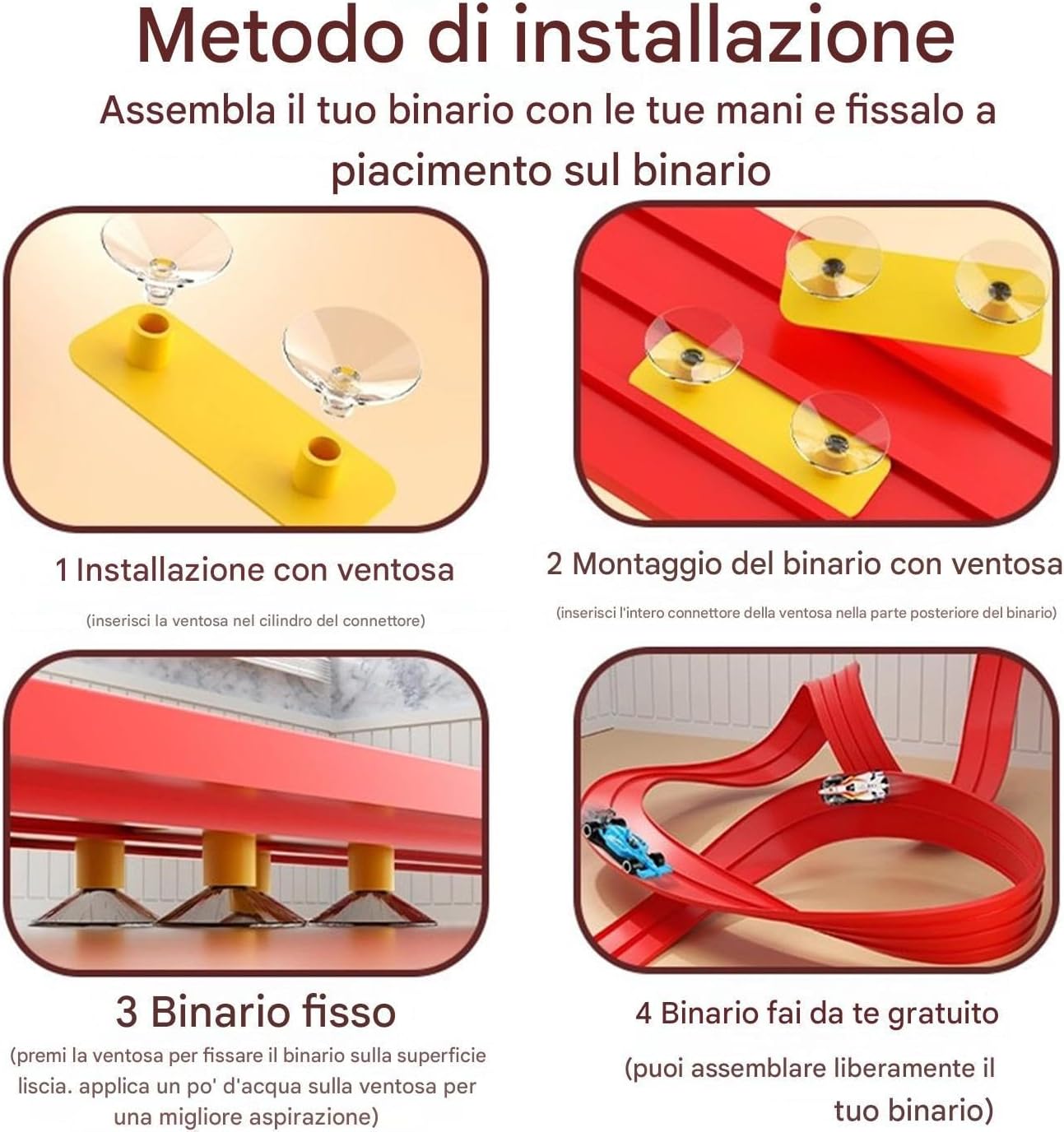 Pista per macchinine affidabile: questo set di piste per macchinine offre una soluzione con binari in PVC antistrappo semplici da arrotolare e riporre, consentendo ai bambini di godersi un gioco fantasioso ininterrotto senza ingombrare la loro area di gioco Design a riposizionabile: la macchinina con pista è dotata di 12 potenti ventose che si attaccano saldamente a finestre e pavimenti, consentendo ai bambini di costruire piste da corsa in varie posizioni per il divertimento delle corse all'aperto, purché la configurazione sia stabile e riposizionabile per una maggiore creatività Kit da corsa completo: il set di auto da corsa include una pista arrotolabile da 390 cm, 4 auto, 4 connettori e 12 ventose, fornendo un'esperienza pronta per il gioco senza la necessità di parti aggiuntive, rendendolo adatto per serate di gioco in famiglia o festival per bambini Ampia adattabilità del modello: progettato per ospitare macchinine e veicoli pressofusi, questo set di auto e pista favorisce l'esplorazione creativa attraverso configurazioni di corsa dinamiche, migliorando il valore 'intrattenimento per i giovani appassionati a casa o durante le riunioni Opzione di intrattenimento unisex: il set da corsa per bambini combina il fascino unisex con una struttura comoda e leggera, fornendo alle famiglie strumento per connettersi e condividere gioia a casa, in vacanza o deliziosi momenti all'aperto insieme durante le vacanze