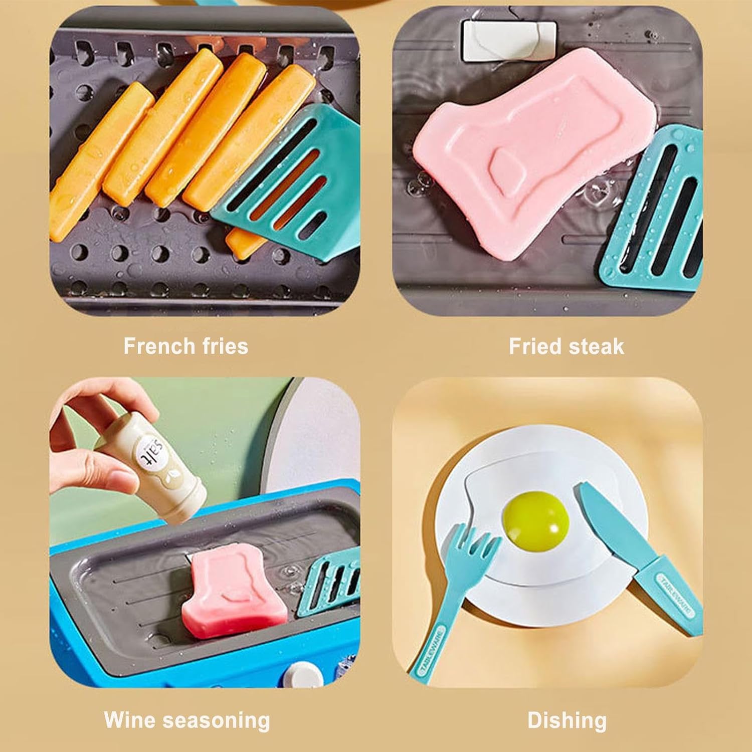 User Friendly: la facile operazione di questo giocattolo da cucina gourmet ispira i bambini a usare la propria immaginazione e creatività vestindosi come chef e creando i propri piatti unici. Questo giocattolo da cucina a simulazione migliora la loro abilità pratica. Incoraggia ad essere fantasioso: lascia che la creatività di tuo figlio voli con il giocattolo di cottura gourmet. Gioca come i tuoi personaggi preferiti e crea nuove storie ogni volta che giochi. Questo giocattolo è progettato per innescare il gioco fantasioso e aiutare tuo figlio a esplorare i loro sogni culinari. Aumenta le abilità motorie: padroneggiare l'arte della cottura, della pulizia e del servizio con il nostro giocattolo di cucina gourmet. Migliora le capacità di vita di tuo figlio, promuove lo sviluppo delle abilità motorie e le mantiene impegnati nel gioco di ruolo lontano da TV e computer. Regalo adatto: questo giocattolo per cucine gourmet è un bel regalo per i bambini che adorano i giochi da cucina. Dà un effetto realistico con il suo design e accessori dettagliati. È adatto a ragazze e ragazzi di età superiore ai 3 anni. Può essere un grande regalo di compleanno o di Natale per il tuo chef. Non facile da rompere: questo giocattolo di cottura gourmet è realizzato in materiale riutilizzabile che può resistere a un uso ripetuto per molto , garantendo ore di intrattenimento e risate per i tuoi bambini. Anche il materiale ABS è sicuro da utilizzare.
