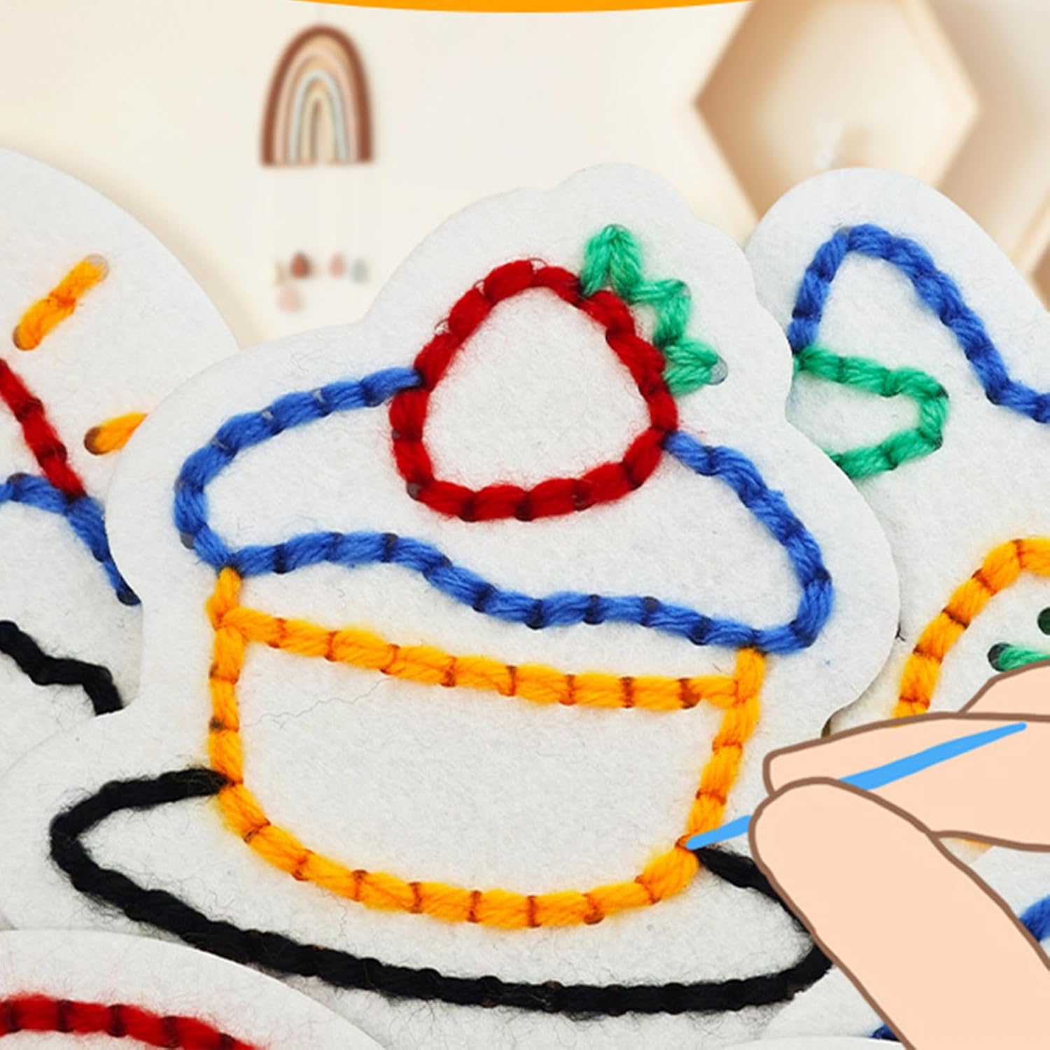 Ispirazione colorata: rilasciare il gioco immaginativo con kit contenenti più motivi non tessuti pre-taglio in colori e temi ricchi. I bambini possono lavorare a maglia progetti speciali come animali e piante che usano una varietà di tonalità di lana Facile da usare: dotato di modelli non tessuti pre-picchettati e di un design ad ago arrotondato per prevenire lesioni accidentali, questo set offre tutto il necessario per esperienze di creazione sicure e divertenti per i bambini Supporta le competenze pratiche: meticolosamente realizzato per i bambini, questo giocattolo allacciatore non solo migliora la coordinazione occhio-mano e la destrezza delle dita, ma migliora anche la pazienza e la precisione coinvolgendo piccoli gruppi muscolari attraverso le attività dettagliate di filettatura e cucito Stimola il parentale: coinvolgimento del giocattolo di artigianato che incoraggia la guida dei genitori, migliorando l'interazione e la comunicazione durante l'insegnamento di abilità di cucito e abbinamento a colori Presente premuroso: fornendo ai bambini un senso di realizzazione e fiducia in se stessi al completamento, questo giocattolo di allacciatura fa un ottimo regalo per compleanni, vacanze o qualsiasi occasione speciale. Il contenuto coinvolgente e l'imballaggio delizioso cattureranno sicuramente le menti giovani
