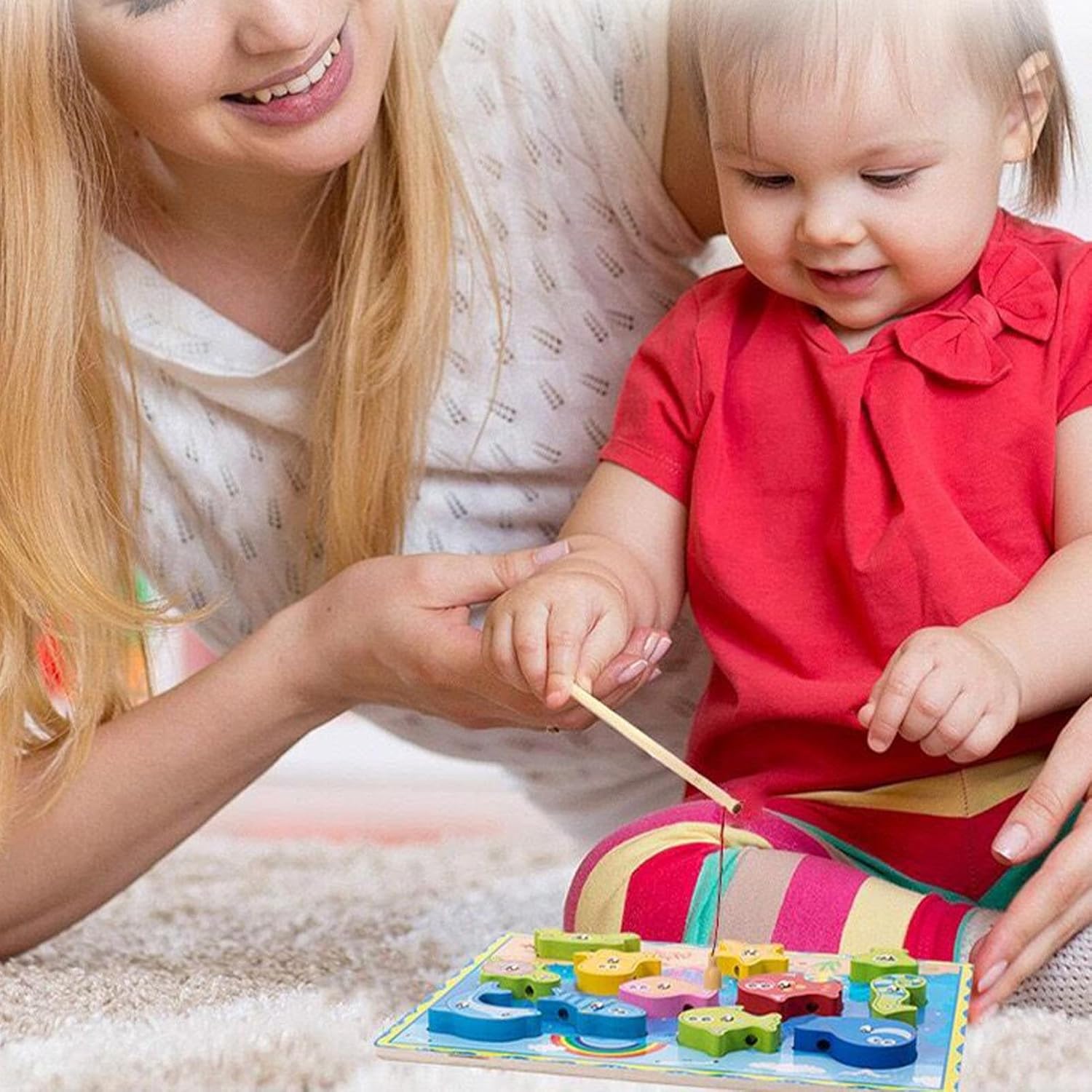 Scopi versatili: combina pesca magnetica, puzzle e blocco, che esercita le diverse abilità dei bambini, aumentando il divertimento e la giocabilità. Incoraggia le capacità motorie: con il nostro gioco di pesca magnetico, tuo figlio può controllare i movimenti delle mani e sviluppare una migliore coordinazione occhio-mano, che costituisce una buona base per altre attività. Inoltre, migliora la flessibilità delle dita e le capacità motorie attraverso un gameplay divertente. Incoraggia il pensiero creativo: il nostro gioco di pesca magnetica è perfetto per le capacità cognitive dei bambini poiché contiene alcune sfide che migliorano le capacità di risoluzione dei problemi. Stimola il loro desiderio di esplorare e identificare forme, colori e animali diversi e promuove un modo di pensare curioso e creativo. Sicurezza dei bambini: l'uso di legno robusto e superfici lisce nel nostro gioco di pesca magnetica garantisce la sicurezza e la durata del giocattolo. Il componente magnetico fissato saldamente resiste facilmente. Regalo meraviglioso: il gioco di pesca magnetico è il regalo perfetto per gruppi familiari durante compleanni e vacanze. Offre cura e benedizione fornendo allo stesso tempo comodità e divertimento per l'uso quotidiano, rendendolo adatto ad amici o familiari
