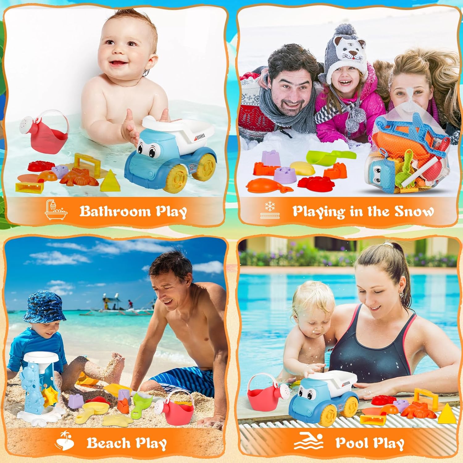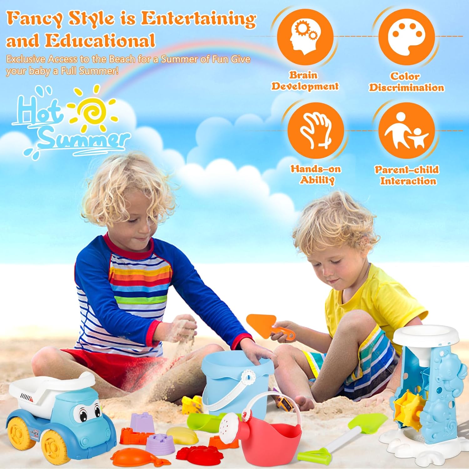 🎡 【Giocattoli di sabbia per ragazzi e ragazze】 Il set da gioco da spiaggia da 30 pezzi include secchio, ruota idraulica, veicolo con sabbiera, pala, pale per setaccio, rastrello, annaffiatoio, stampi colorati per la spiaggia di sabbia e borsa in rete, diverse forme di castello, ecc. 🏰 【Alta qualità e sicurezza dei bambini】 I giocattoli da spiaggia per bambini piccoli sono realizzati in materiale sicuro, non tossico ed ecologico con bordi lisci, senza sbavature. Conforme alla norma europea sui giocattoli. che è forte all'esterno, non facile da rompere, lunga durata, facile da giocare e non fa male alle mani, sicuro per i bambini. 🐬 【Giocattoli di sabbia creativi】 Questo set di sandbox per giocattoli da spiaggia può portare molto divertimento ai bambini. Usa diverse forme di spiaggia e kit di costruzione del castello per costruire il tuo castello. Le giuste dimensioni e i vari strumenti permettono ai bambini di trascorrere un piacevole periodo estivo con amici e familiari. Stimola l'immaginazione dei bambini e allena le capacità motorie e la coordinazione occhio-mano. 💦 【Facile da trasportare e riporre】 Il nostro giocattolo da spiaggia per bambini con borsa da spiaggia in rete, una borsa da spiaggia in rete è supportata per contenere tutte le forme di sabbia ed è facile scrollarsi di dosso la sabbia e l'acqua, il che è più comodo da trasportare e riporre, mantenere pulito. e si asciugano rapidamente.Bambini Puoi portarli facilmente con te in spiaggia, in piscina, in giardino, al parco o in gita. 🎁【Regali estivi perfetti】Questo gioco da spiaggia per bambini è un ottimo regalo per i bambini, perfetto per forniture per feste in spiaggia, feste in piscina, giocattoli da viaggio, regali di Natale, regali di Pasqua. Fantastico giocattolo estivo con cui ragazzi e ragazze possono giocare sulla spiaggia o nella sabbiera.
