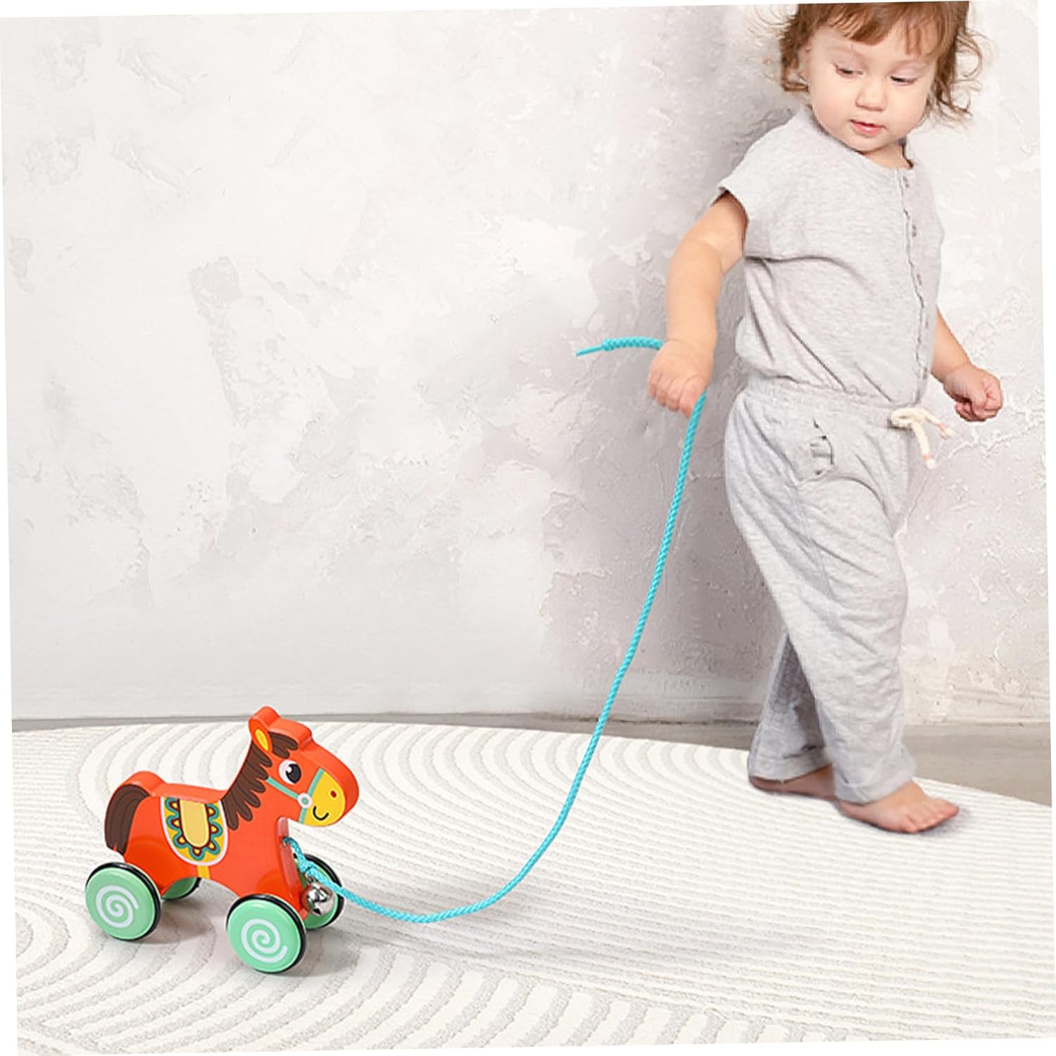 Incoraggia la crescita dello sviluppo: questo giocattolo tira e spingi aiuta i bambini a migliorare le capacità motorie, la coordinazione occhio-mano e l'equilibrio, rendendolo un eccellente strumento di sviluppo per l'apprendimento della prima infanzia. Ruote antiscivolo per la sicurezza: le robuste ruote antiscivolo assicurano che il giocattolo rotoli in modo fluido e sicuro su diverse superfici, evitando scivolamenti o arresti improvvisi durante il gioco. Adorabile design a cavallo con campanello: a forma di cavallo carino con un divertente campanello, questo giocattolo da tirare cattura l'attenzione dei bambini e li tiene impegnati..Il delicato suono della campana aggiunge un tocco di stimolazione uditiva durante il gioco. Materiali ecologici e non tossici: realizzato con materiali in legno, questo giocattolo è ecologico e rivestito con vernice atossica, che lo rende sicuro per le mani e le bocche dei più piccoli. Azione bidirezionale di trazione e spinta: questo giocattolo può essere tirato o spinto in entrambe le direzioni, consentendo ai bambini di esplorare l'ambiente circostante sviluppando coordinazione e forza muscolare.