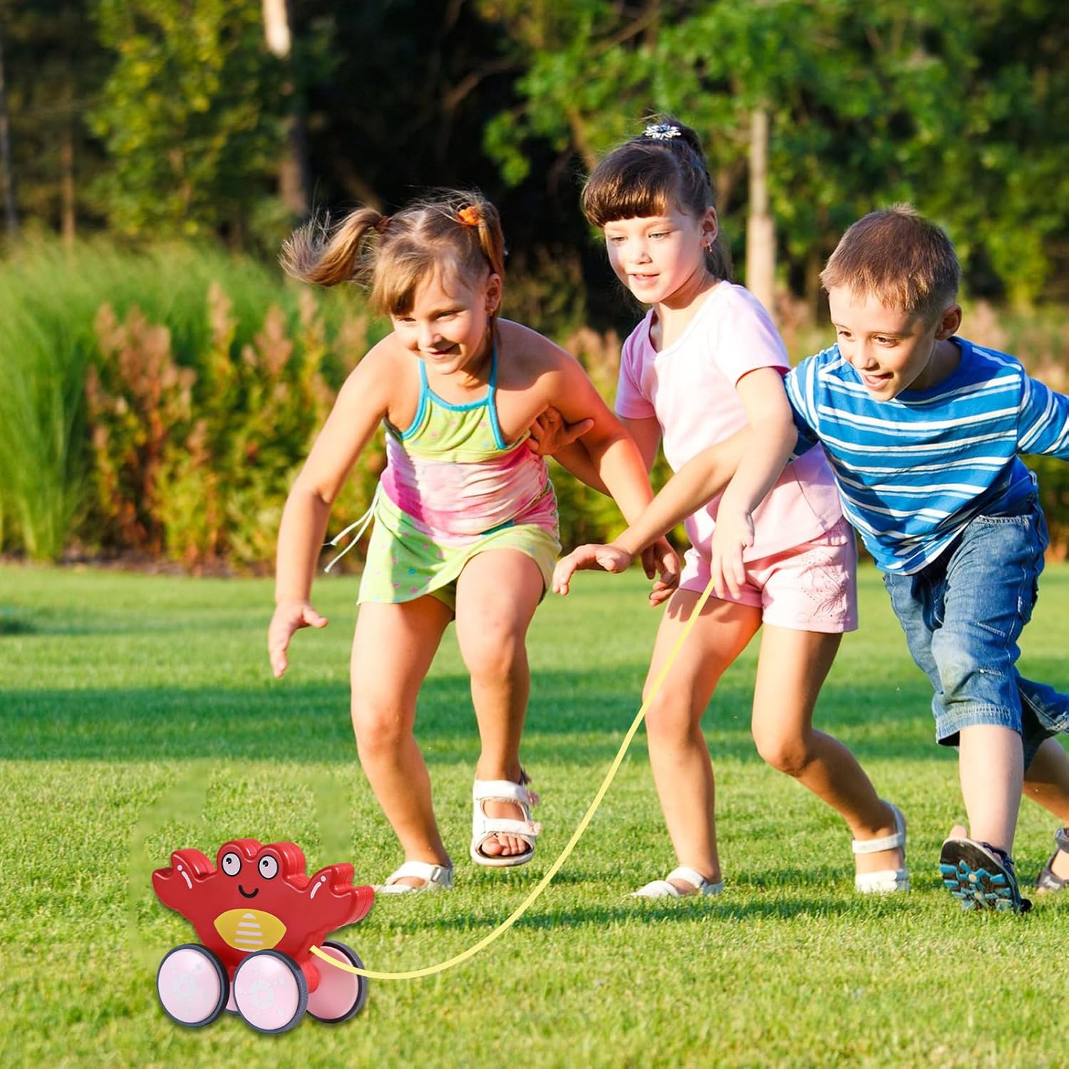 Divertente design con animali: quando il tuo bambino muove i primi passi, questo giocattolo da tirare si diverte con vivaci forme di animali che incoraggiano l'immaginazione e l'esplorazione, e il materiale ABS garantisce durata e gioco frequente. Sviluppo iniziale: con un movimento di scivolamento unico che varia quando viene tirata la corda, il nostro giocattolo da tirare promuove la percezione spaziale e il tracciamento visivo, fornendo un supporto completo per la crescita a tutto tondo. È un compagno di giochi divertente ed educativo che manterrà il tuo bambino occupato e arricchito. Sicuro e amichevole: il giocattolo da tirare è dotato di ruote in gomma morbida senza bordi e coda, che garantiscono un tempo di gioco sicuro. Protegge il tuo bambino dagli infortuni e previene i graffi sul pavimento. Migliora l'equilibrio del corpo: il design silenzioso del pneumatico garantisce un gioco silenzioso su qualsiasi superficie, promuovendo allo stesso tempo lo sviluppo della coordinazione e dell'equilibrio del corpo. Con la corda da tirare aggiuntiva, il nostro giocattolo da tirare diventa il partner perfetto per esercizi di camminata naturale e divertenti momenti di gioco. Ampia esplorazione: questo giocattolo da tirare offre infinite opportunità di gioco fantasioso, invitando i bambini a esplorare ambienti diversi e scoprire luoghi nuovi e affascinanti. A casa o all'aria aperta, osserva come la curiosità e la creatività fioriscono ad ogni movimento.