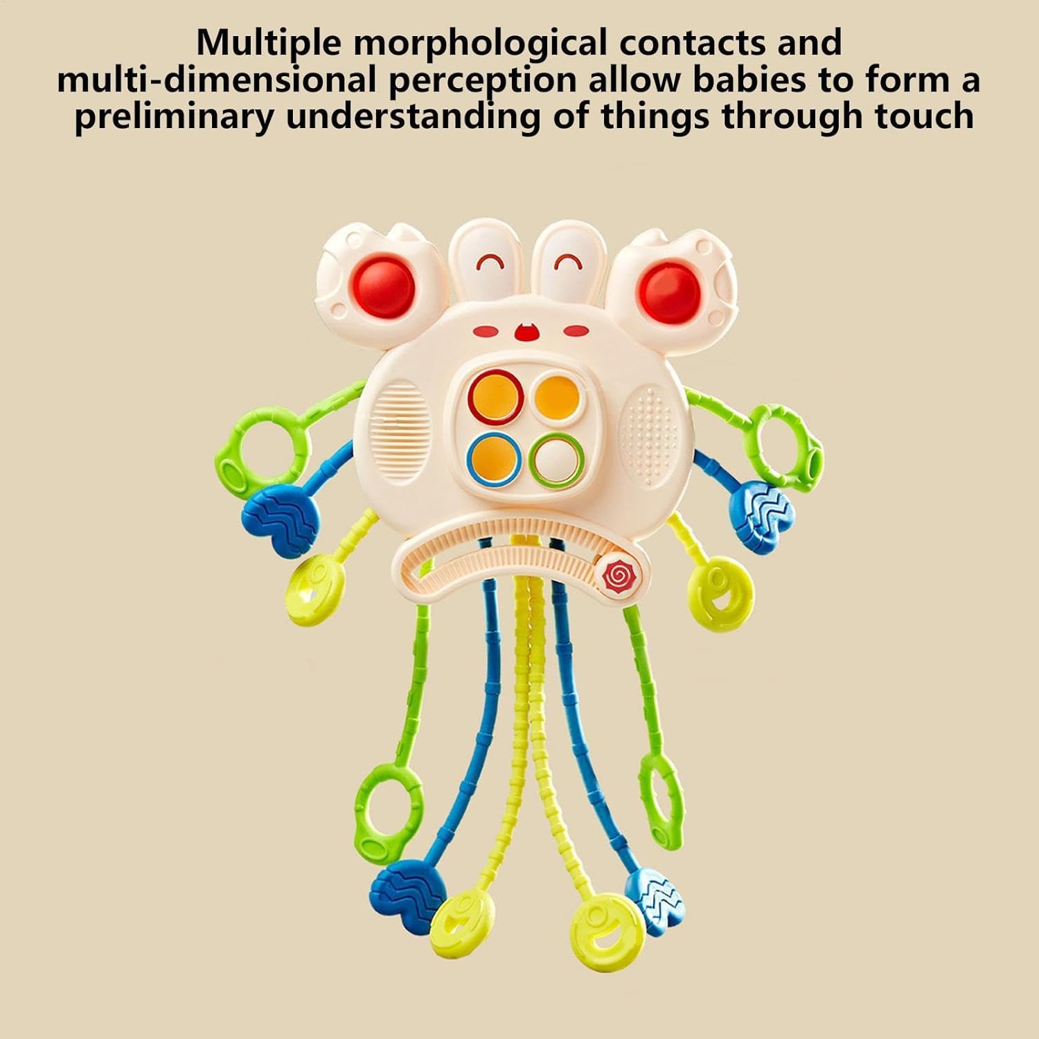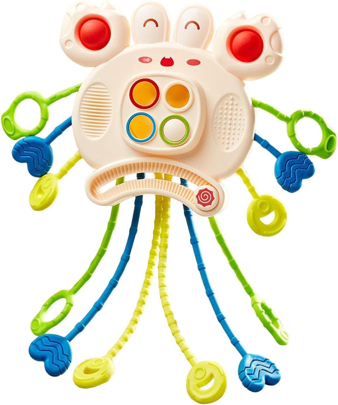 Favorisce la flessibilità: il nostro giocattolo con corda e corda è progettato per allenare le dita in flessibilità e migliorare le capacità motorie. Dotato di morbidi pulsanti in posizioni rialzate, risveglia la curiosità del bambino e lo stimola a toccare e premere, sostenendo la sua crescita e sviluppo. Divertimento multisensoriale: il nostro giocattolo da treno ha un simpatico design a granchio. Con suoni e vibrazioni stimolanti, favorisce la coordinazione occhio-mano e lo sviluppo della vista, mentre i bambini possono esplorare senza sforzo. La prima scelta della mamma: questo giocattolo con cordino è realizzato in silicone alimentare e ABS e garantisce il 100% di sicurezza e protezione ambientale. Il suo design supporta lo sviluppo cognitivo e fisico e allo stesso tempo dà alle mamme la certezza che il loro bambino gioca con un giocattolo sicuro ed ecologico. Compagno di viaggio senza sforzo: intrattenere i tuoi bambini in viaggio con questo giocattolo facile da pulire con cordino. Il suo design leggero e compatto lo rende il giocattolo da viaggio perfetto per bambini interni ed esterni, che può essere portato ovunque e giocato in culle, passeggini e seggiolini auto. Promozione dello sviluppo: promuove le capacità fisiche e mentali del tuo bambino con il nostro giocattolo con cordino. Progettato per portare più felicità e promuovere creatività, immaginazione e abilità motorie. Un regalo perfetto per le piccole menti che amano esplorare e imparare.