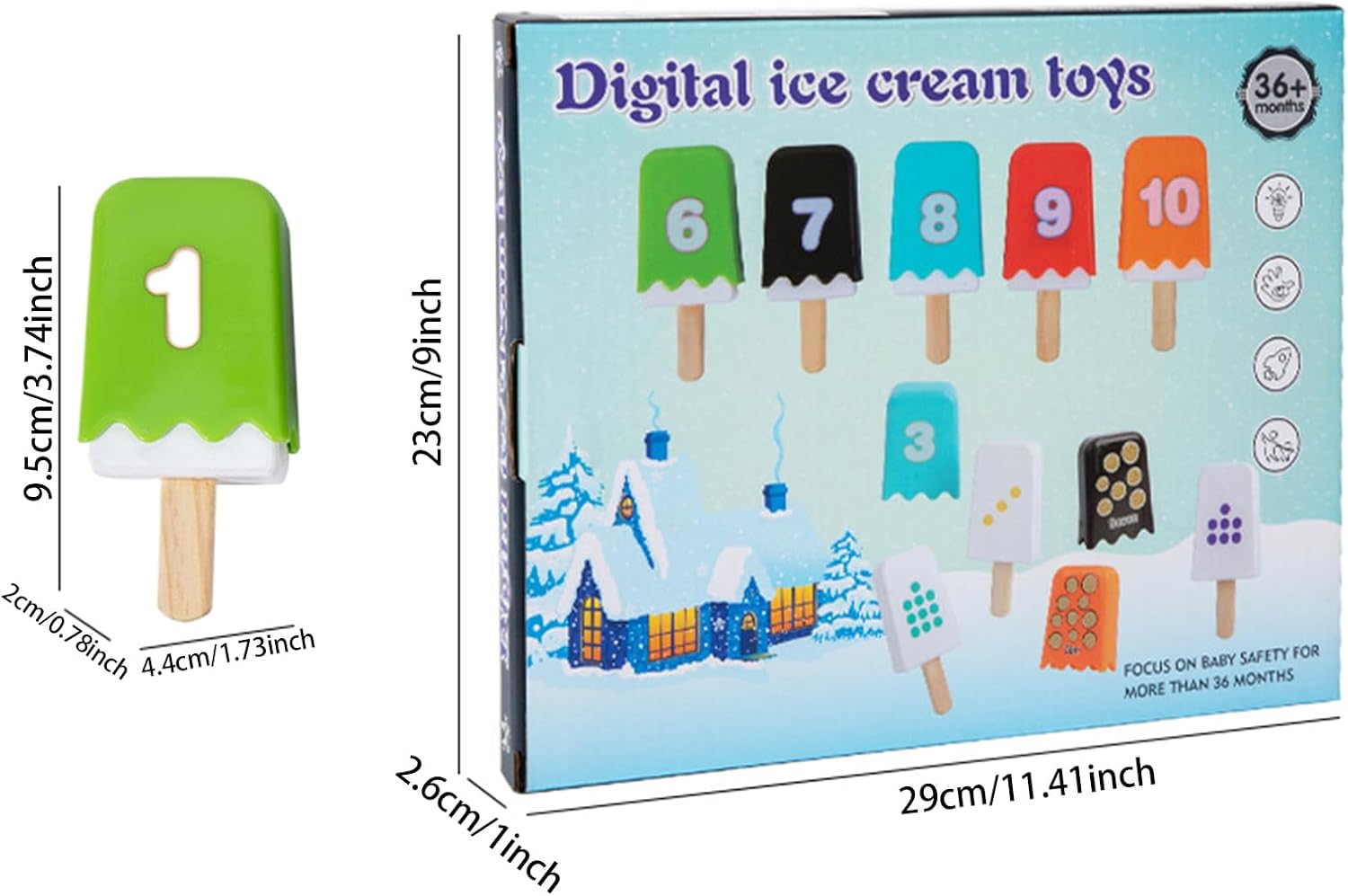 Lucidato con attenzione: il nostro giocattolo per il conteggio del gelato promuove le capacità motorie e la coordinazione mano - attraverso materiale in legno sicuro e accuratamente lucidato, senza sbavature agli angoli e un design liscio e arrotondato Adorabile forma della tavolozza: il gelato che racconta il design accattivante del giocattolo presenta colori vivaci e una forma a tavolozza unica, che cattura immediatamente l'attenzione dei bambini e li incoraggia a imparare contando Sviluppo del senso dei numeri: dotato di motivi a punti che corrispondono ai numeri 1-10 nella parte anteriore, questo giocattolo aiuta i bambini intuitivamente a imparare la corrispondenza tra numeri e quantità durante il gioco divertente Sviluppo colorato: il nostro giocattolo per il conteggio del gelato presenta una varietà di colori vivaci che lavorano insieme per aiutare a migliorare la cognizione del colore precoce del bambino e lo sviluppo visivo. Il design stimolante cattura il tuo interesse Aumenta lo sviluppo cognitivo: migliora lo sviluppo cognitivo del tuo bambino con questo giocattolo per il conteggio del gelato. Realizzato con conchiglie e bastoncini di pallet abbinati, è facile da capire, promuove la coordinazione mano e migliora le abilità di conteggio