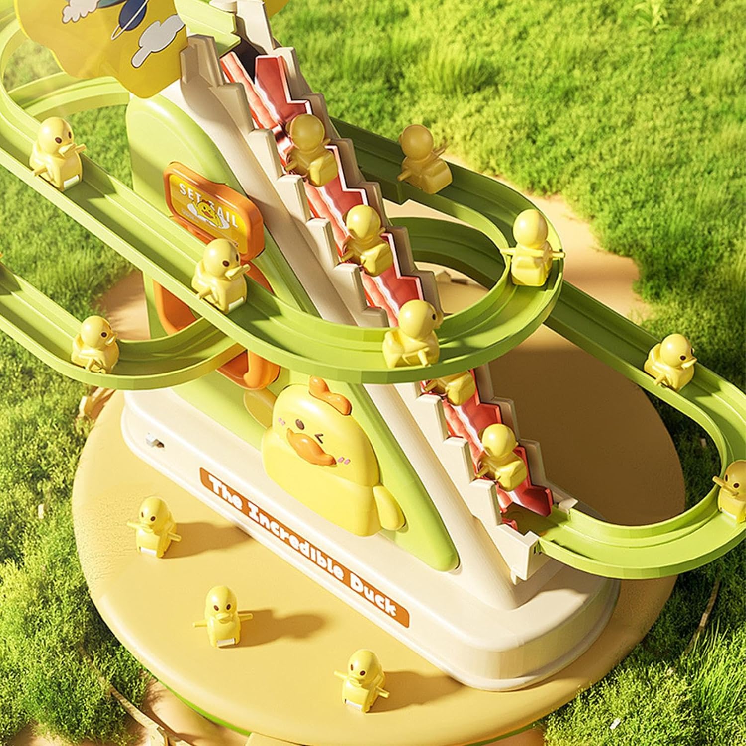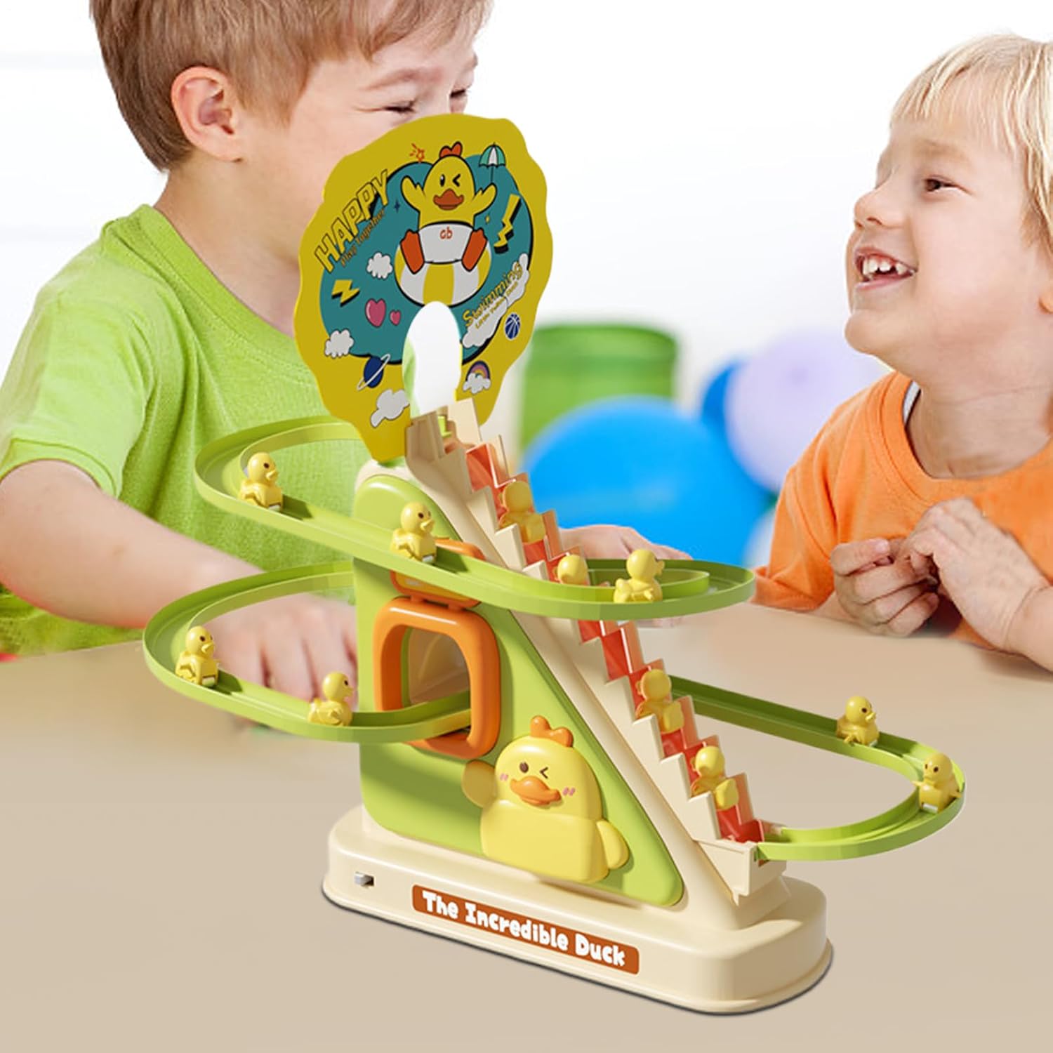 Playtime coinvolgente innovativo: guarda la gioia di tuo figlio mentre l'anatroccolo sale sulla pista dai colori vivaci, grazie al design innovativo del giocattolo che affascina e si diverte. Porta a casa il parco di divertimenti: sperimenta il brivido di guardare il giocattolo per le scale di arrampicata su che va su per le scale, imitando il divertimento di un del parco di divertimenti. Preparati per un'avventura gioiosa in ogni passo con questo giocattolo giocoso e divertente. Luci e musica multi-sensoriale: sperimenta l'avventura ideale di gioco con le piccole scale di arrampicata da . Immergi tuo figlio in un paese delle meraviglie multi-sensoriale di luce e musica che ispira l'immaginazione e la creatività. Il regalo per ore di divertimento coinvolgente. Divertimento per bambini: assicurati che la sicurezza di tuo figlio con questo giocattolo di alta qualità, realizzato con materiali sicuri e con angoli arrotondati. La durata è con la sua costruzione di prim'ordine. Regalo da non perdere: elevate occasioni speciali con il berretto di di allegria elettrica. Per qualsiasi celebrazione, questa eccentrica aggiunta garantisce sorrisi gioiosi durante le festività festive. per portare risate e delizia a tutta la famiglia.