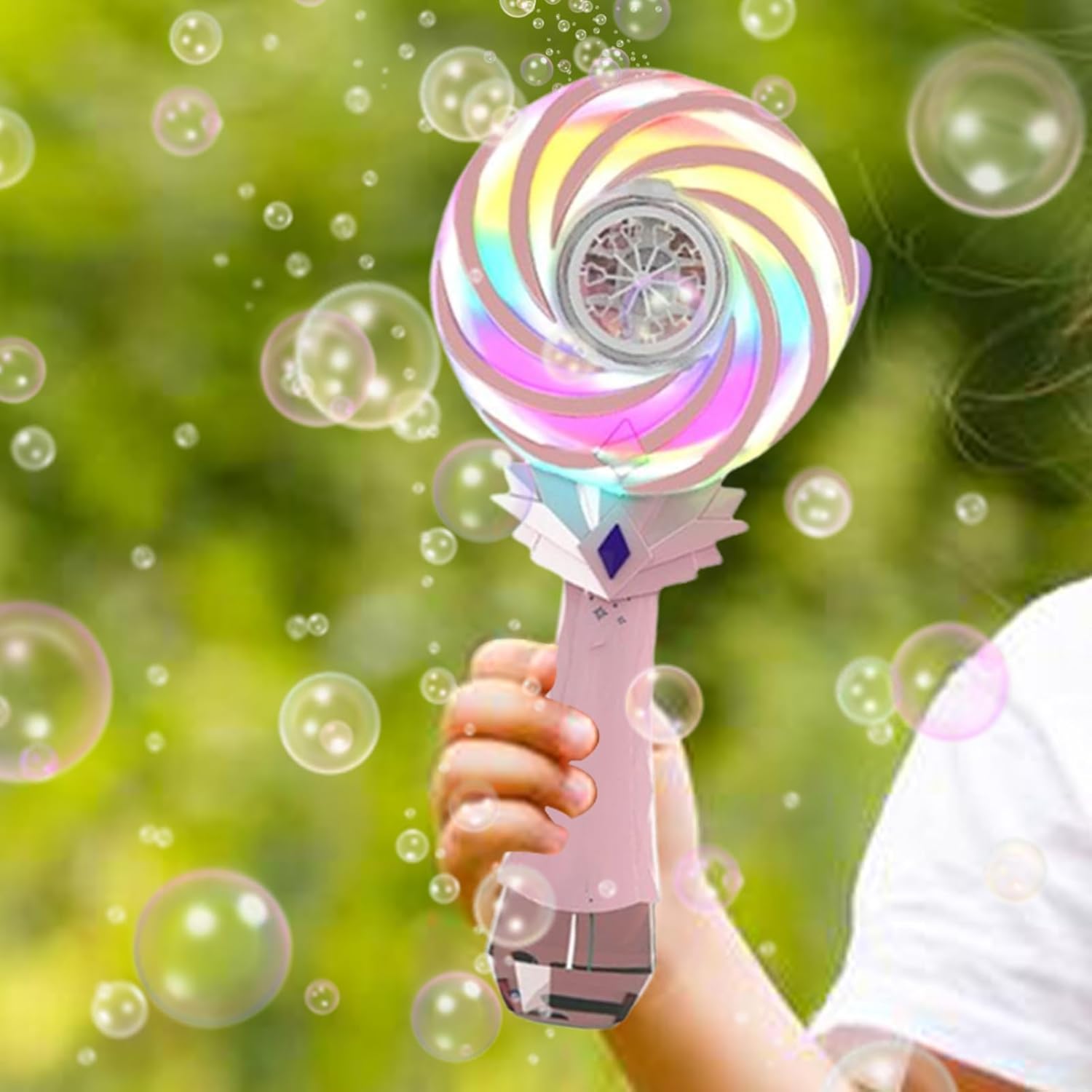 Bacchetta ispirata a lecca-lecca: combina il di bolle e la musica con una funzione di mulino a rotante, che offre un gioco multi-sensoriale attraverso esperienze visive e tattili coinvolgenti Facile utilizzo: alimentato dalla tecnologia avanzata, questa bacchetta elettrica elimina il soffiaggio manuale e fornisce un design sicuro per bambini per un facile utilizzo in qualsiasi ambiente Effetti di luce colorati: produce spettacolo di luce affascinante con luminosità e musica regolabili, elaborando un'atmosfera ideale per il divertimento in famiglia al chiuso o festivo esterno Foster Magic Exploration: la bacchetta elettrica a bolle supporta un gioco fantasioso con un design del mulino a e stile a tema principessa, ispirando divertimento ispirato alle fiabe per i bambini durante le attività esterne Dimensioni facili da trasportare: combinando una struttura leggera con la ricarica USB e la potenza duratura, questa bacchetta elettrica porta gioia a picnic e feste da giardino, fornendo un uso senza soluzione di continuità e una facile mobilità ovunque tu vada