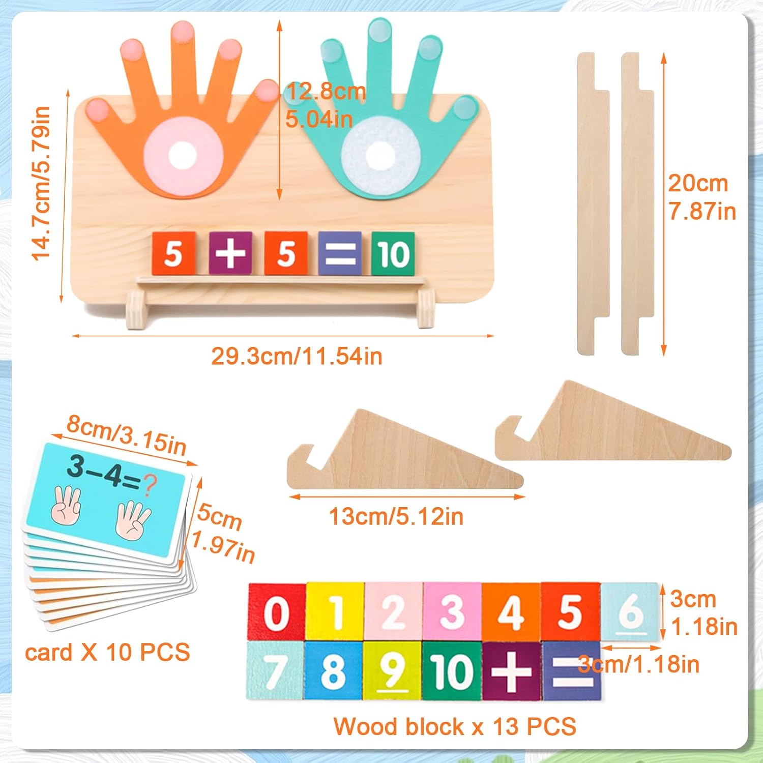 ✋【Giocattoli educativi Montessori dai 3 anni in su】: I nostri giocattoli Montessori incoraggiano in modo giocoso il conteggio, il calcolo e il riconoscimento dei numeri, perfetti per bambini dai 3 ai 6 anni. ✋【Tavola di conteggio interattiva】: Il suo design innovativo, con forme a forma di mano, aiuta i bambini a comprendere i numeri visivamente e tattilmente. Ideale per introdurre i bambini all'addizione e alla sottrazione. ✋【Esperienza di gioco multisensoriale】: Blocchi di legno colorati, carte da conteggio e tavole da disegno promuovono l'apprendimento ludico e stimolano le capacità motorie fini, il pensiero logico e la concentrazione. ✋【Regalo ideale per bambine e bambini】: Questo giocattolo educativo è il regalo perfetto per bambini dai 3 ai 6 anni per un compleanno, Natale o per la scuola materna. ✋【Sicuro e di alta qualità】: Realizzato in legno massello di pino con bordi lisci e vernice atossica, è robusto, durevole e sicuro per i bambini, conforme agli standard di sicurezza tedeschi.