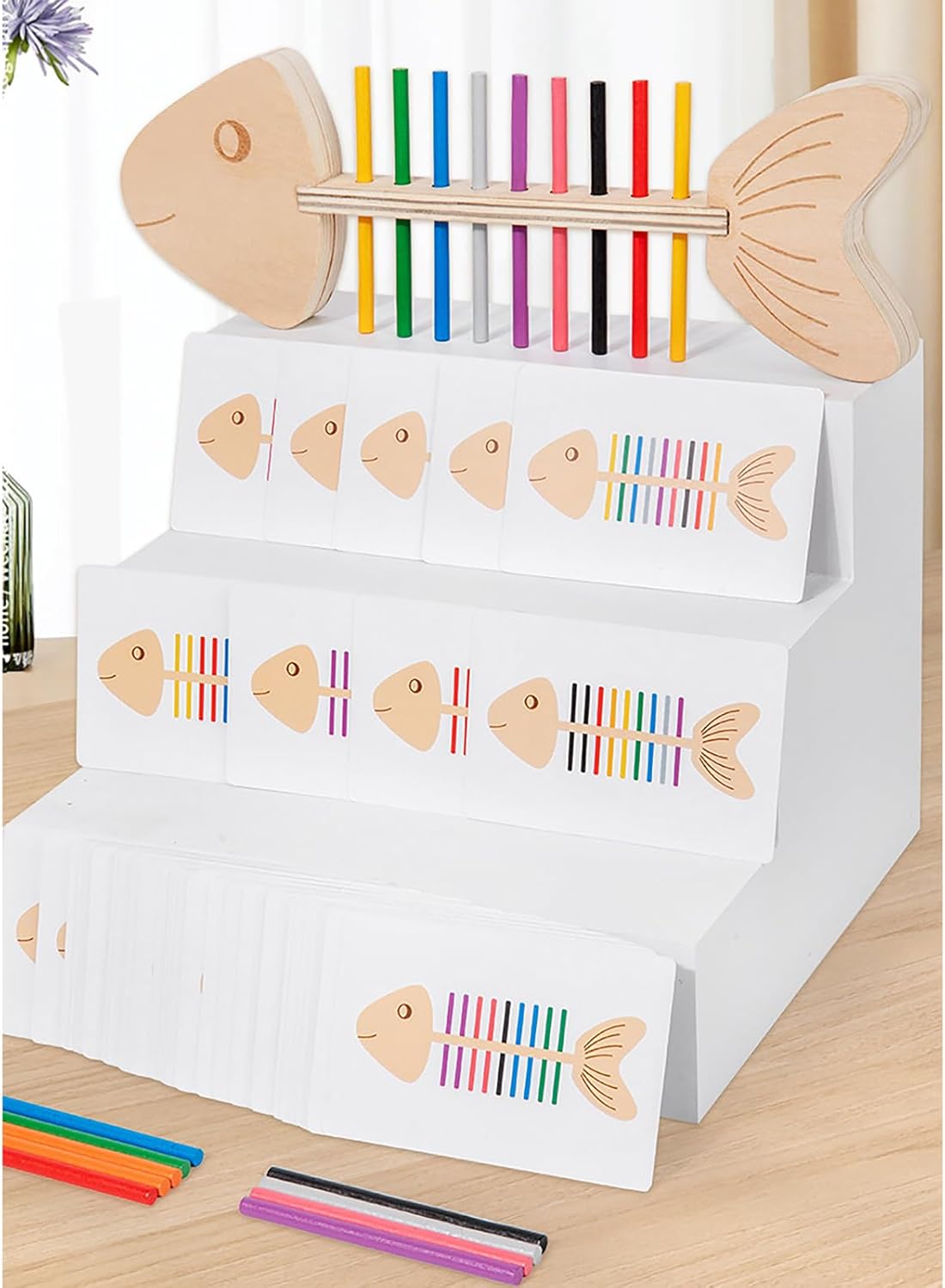 Ideale per bambini di età compresa tra 3 e 6 anni, questo strumento educativo è per i bambini che stanno sviluppando la loro osservazione e le loro abilità pratiche Migliora lo sviluppo cognitivo del tuo bambino con il nostro giocattolo educativo, progettato per migliorare la coordinazione occhio-mano e il riconoscimento del colore attraverso un'attività coinvolgente di accoppiamento a lisca di pesce Adatto per l'uso in case, asili nido e asili, funge da eccellente risorsa per le interazioni dei genitori e dei figli, attività educative o aiuti didattici in classe Con colori vivaci e un design adatto ai bambini, questo giocattolo non solo intrattiene, ma promuove anche abilità di sviluppo, rendendolo una grande aggiunta a qualsiasi ambiente di apprendimento Utilizza legno selezionato, questo giocattolo di corrispondenza del colore a lisca di pesce presenta un design unico a forma di pesce che affascina i bambini promuovendo abilità analitiche e di risoluzione dei problemi