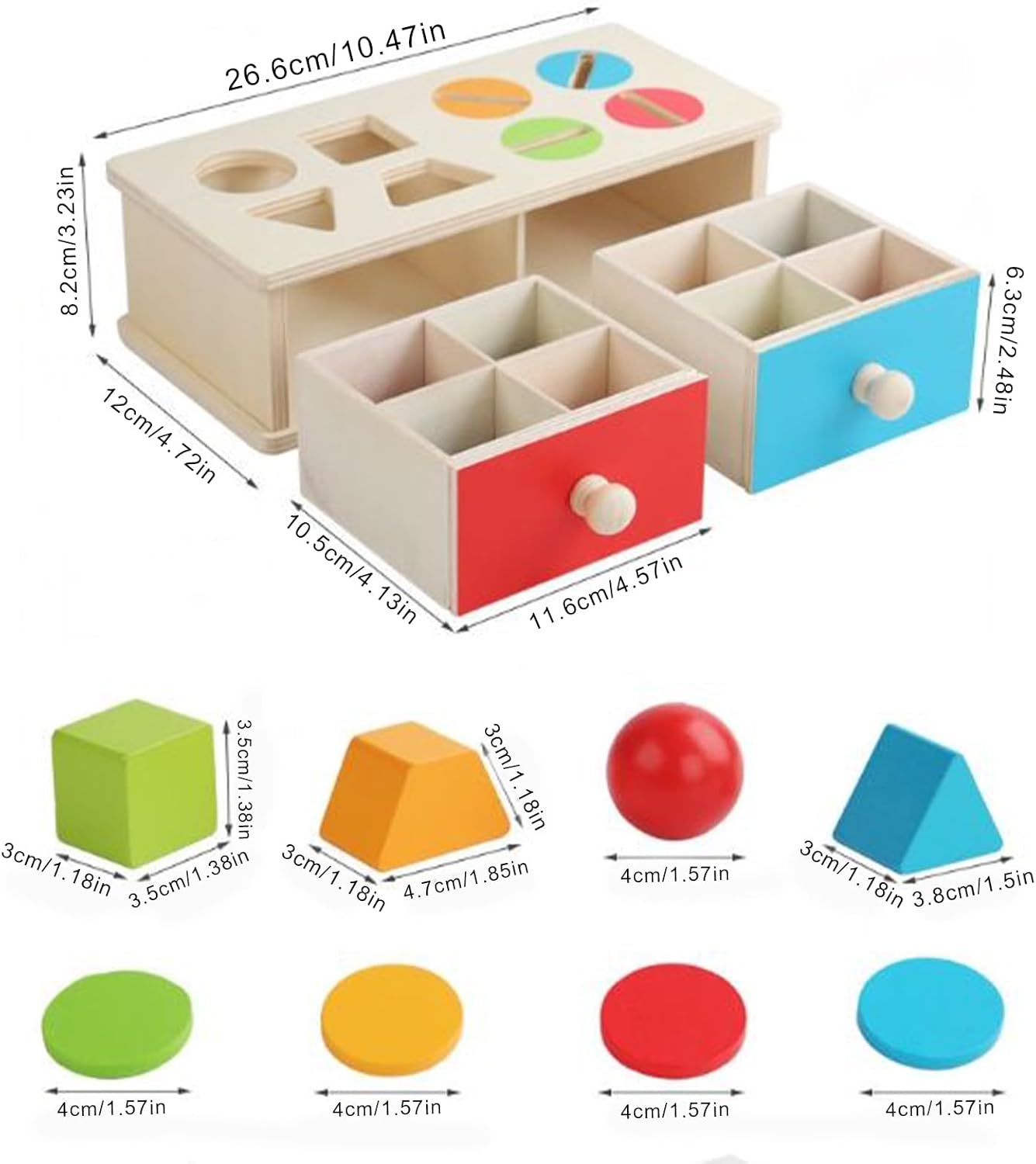 Sviluppo delle competenze: Stimola la motricità fine e potenzia la coordinazione occhio-mano con colori vivaci e forme diversificate, promuovendo un globale durante il momento di gioco Praticità ovunque: Design ergonomico che unisce portabilità e sicurezza. Il a cassetto mantiene i componenti ben fissati e organizzati durante il movimento, diventando un compagno fedele per giochi in qualsiasi location. Design Protettivo: generosamente proporzionate e struttura in legno massello spesso un giocattolo affidabile che supporta il gioco dinamico mantenendo stabilità ottimale e prevenendo incidenti durante l'utilizzo intensivo Incentivo all'Apprendimento Precoce: Giocattolo salvadanaio con sorter di forme stimola lo sviluppo cognitivo, migliorando l'osservazione e insegnando naturalmente le basi della classificazione attraverso attività ludiche coinvolgenti per le fasi di apprendimento Regalo : Aggiunge gioia a feste e ricorrenze con meccanismi di gioco coinvolgenti, strumento educativo che favorisce la complicità familiare attraverso attività collaborative