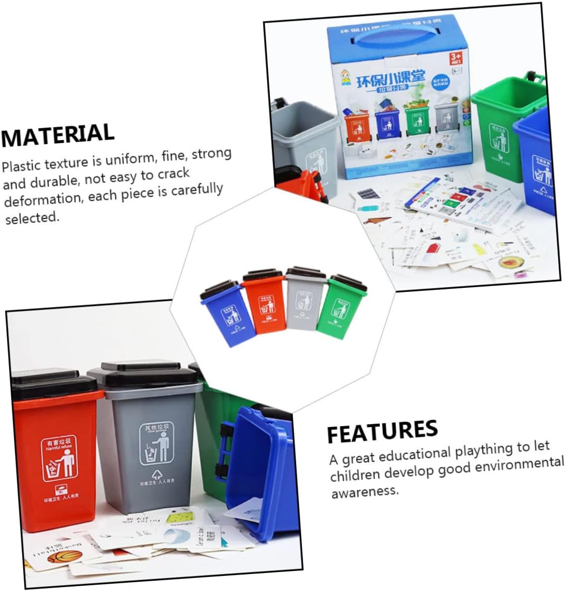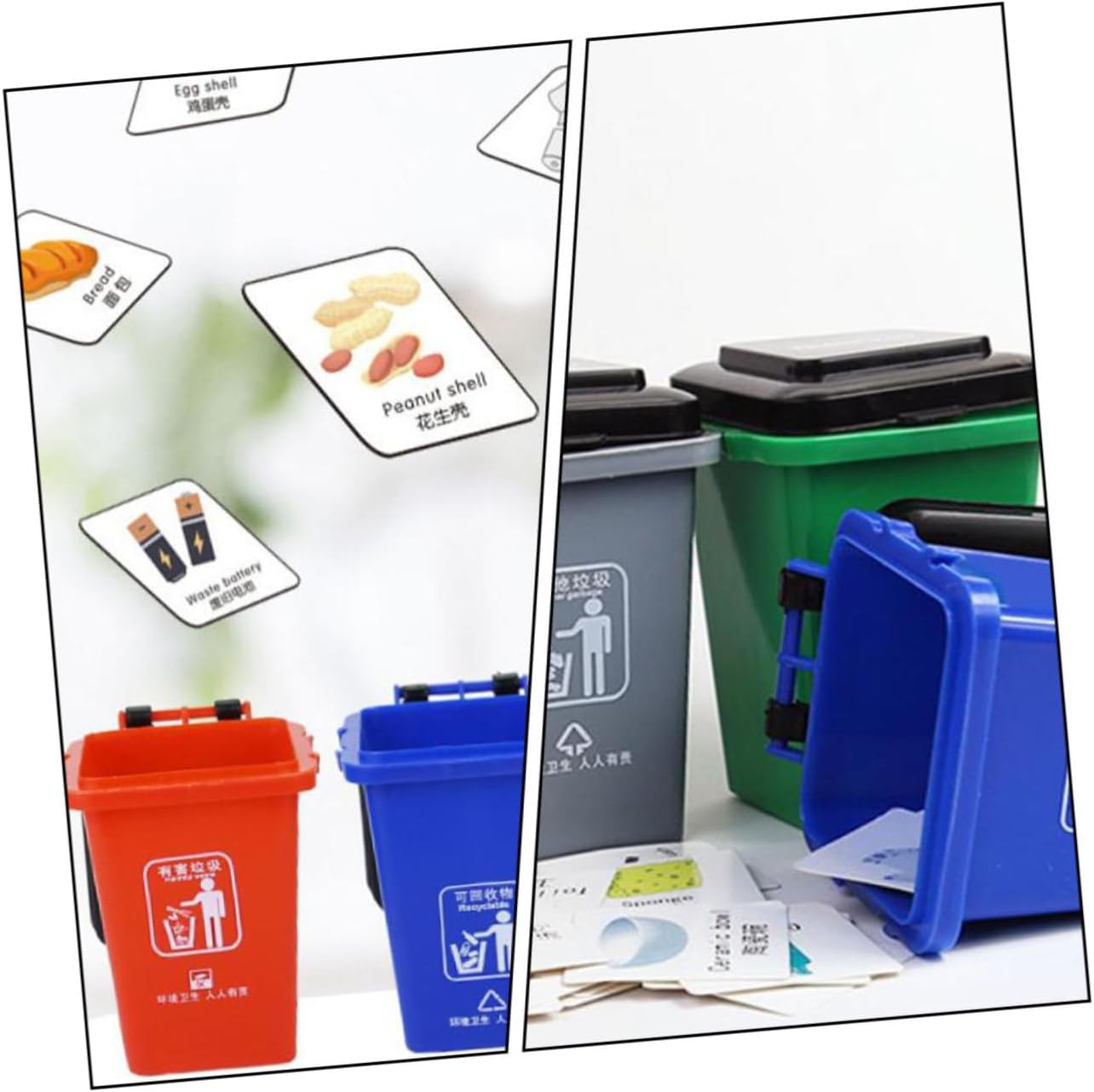 Contenitori per il riciclaggio dei giocattoli per bambini - Sono buoni giocattoli interattivi per genitori e figli, migliorano la qualità del tempo insieme e sono giocattoli educativi. Pattumiere per bambini - Questo modello di cestino presenta dettagli di buona fattura e una varietà di colori, giocattoli educativi per bambini. Pattumiere giocattolo: superficie liscia e angoli arrotondati, non danneggia facilmente la pelle sensibile dei bambini, giocattoli a pattumiera. Contenitore per riciclaggio dei giocattoli per bambini: questo giocattolo è molto resistente, non si rompe e non si deforma facilmente, giochi di riciclaggio per bambini. Giocattoli educativi: una varietà di carte e combinazioni, enfatizza l'abilità per memorizzare, pratico e divertente, contenitore per la raccolta differenziata per bambini