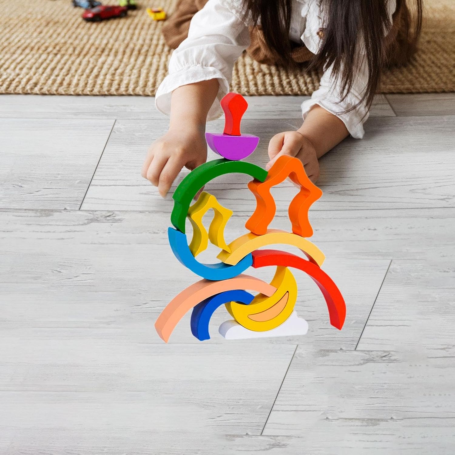 【 regalo】 Include un set completo di giocattoli impilabili arcobaleno per un gioco creativo senza fine, ideale per compleanni, vacanze o educazione della prima infanzia a casa o a scuola 【Design in legno di alta qualità】 arcobaleno in legno è realizzata in legno robusto (12,60 pollici x 5,12 pollici), delle dimensioni perfette per essere afferrata e impilata dalle manine dei più piccoli 【Stimola la creatività e la risoluzione dei problemi】 Nessuna regola fissa! I bambini costruiscono liberamente forme uniche, stimolando l'immaginazione, la consapevolezza spaziale e il pensiero indipendente. 【Sviluppa le abilità chiave della prima infanzia】 Migliora l'equilibrio, la concentrazione e il riconoscimento dei colori con tenui tonalità arcobaleno che catturano l'attenzione dei più piccoli, insegnando al contempo i concetti base sui colori 【Gioco di impilamento divertente e stimolante】I bambini bilanciano e impilano blocchi arcobaleno, migliorando la coordinazione occhio-mano e le capacità motorie fini attraverso l'apprendimento