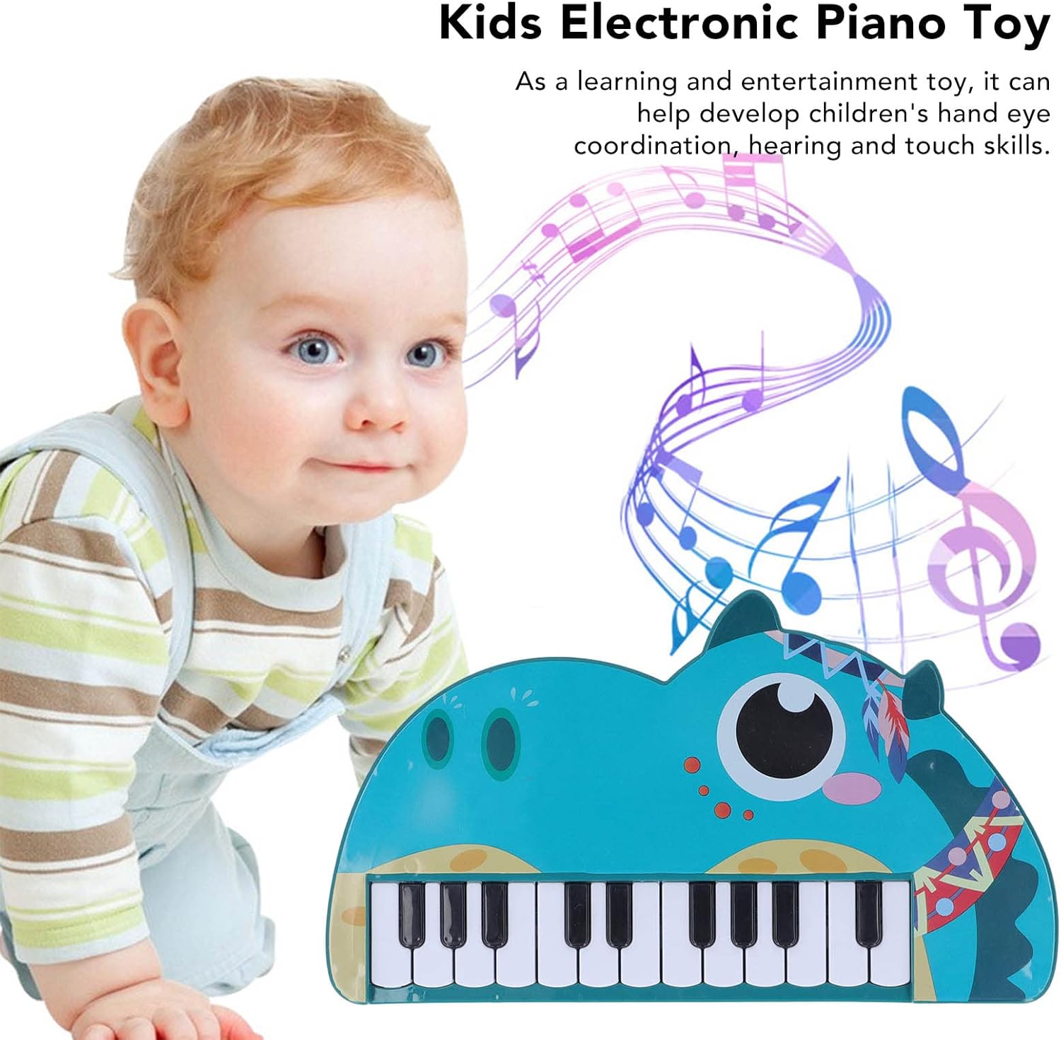 Materiali di alta qualità: questo giocattolo per pianoforte realizzato in plastica per è forte, durevole e non facile da danneggiare. Perfetto : questo pianoforte elettrico è perfetto per Natale, compleanno e festa dei bambini. Non tossico e sicuro: con pregevole fattura, il giocattolo per pianoforte è atossico, sicuro e può essere sicuro per suonare. Forma animale del fumetto: con forme di animali dei cartoni animati e colori vivaci, il giocattolo musicale sembra carino e divertente. Educativo: come giocattolo educativo e di intrattenimento, può aiutare a sviluppare la coordinazione occhio-mano, le capacità di ascolto e tattile dei bambini.