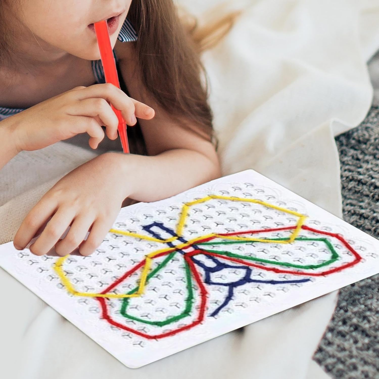Divertente svolta nell'apprendimento: stimola la creatività di tuo figlio con la nostra tavola ! Ideale per la costruzione di forme e lettere, questo gioco interattivo incoraggia sequenze divertenti e la creazione di modelli. Potenzia le loro capacità cognitive attraverso un gioco fantasioso e coinvolgente Robusto e pieghevole: il nostro pannello filettato per bambini è realizzato con materiali ecologici e di ottima qualità. La sua consistenza morbida, la struttura robusta e pieghevole con angoli sicuri per i bambini garantiscono un uso prolungato. Lascia che i tuoi bambini canalizzino facilmente le loro capacità artistiche Giocattoli educativi: silenziosamente coinvolgente, questa tavola aumenta la concentrazione, affina la presa a tenaglia e migliora la coordinazione occhio-mano, favorendo lo sviluppo sensoriale attraverso il gioco Gioco ovunque: coltiva l'immaginazione di tuo figlio con facilità utilizzando la nostra bacheca portatile. La libertà creativa che consente ispira il gioco fantasioso, mentre il suo design per esterni aiuta a stimolare la creatività attraverso una varietà di espressioni uniche Il compagno per i bambini: la nostra tavola con filo promette divertimento sensoriale mentre giocano con colori, forme e motivi. Il suo design facile da impugnare garantisce un'esperienza facile per il tuo bambino. Ideale per i più piccoli e per chi ha bisogni speciali, la nostra tavola è l'idea regalo di Natale perfetta per migliorare lo sviluppo del tuo bambino