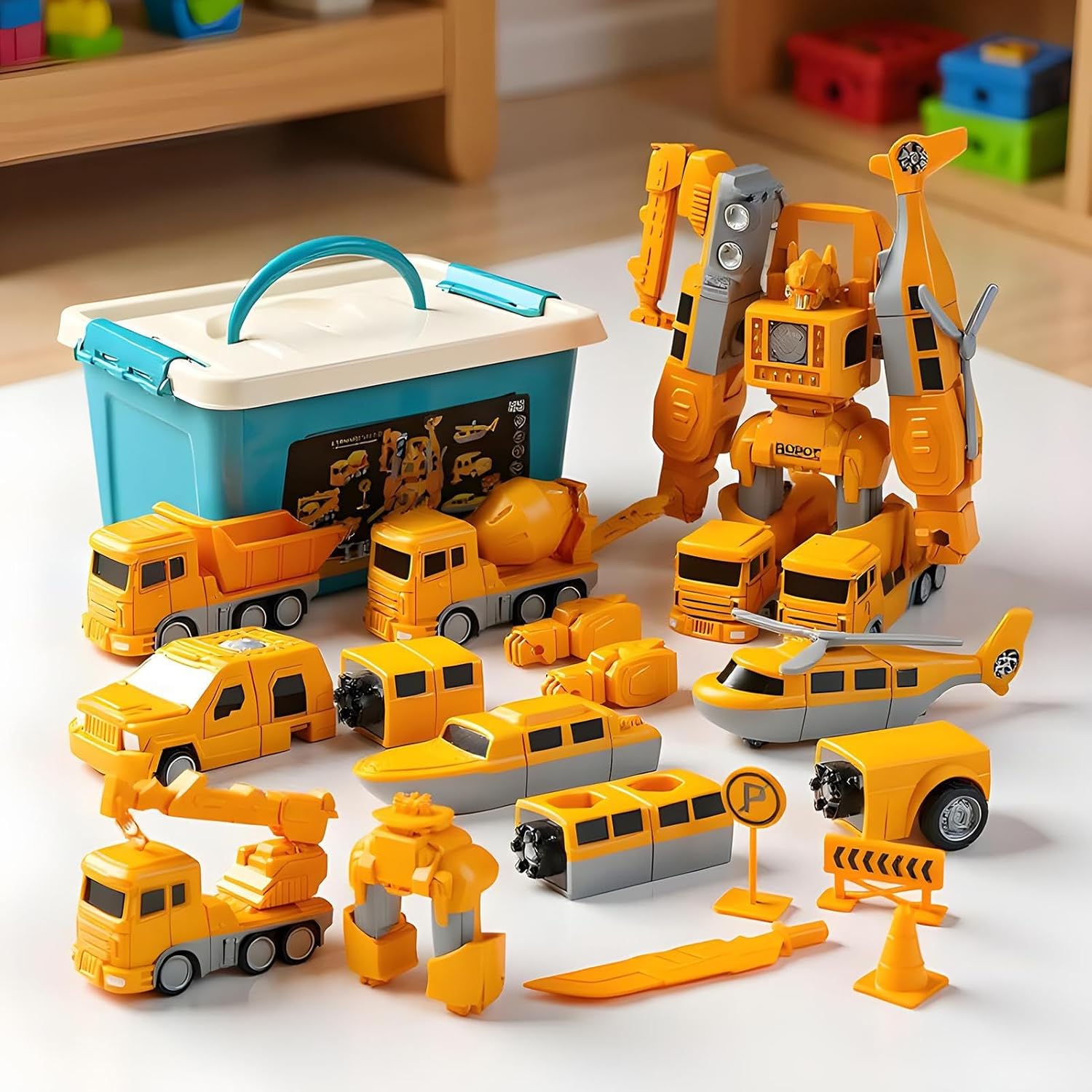 Design ingegneristico creativo: questa macchina ingegneristica presenta un design di bulldozer volante e funzionalità di robot con braccio di elicottero che stimola il pensiero per la risoluzione dei problemi attraverso il gioco e risveglia l'immaginazione durante le attività indoor o outdoor. Il design incoraggia la creatività e il pensiero logico attraverso configurazioni versatili e opzioni di gioco interattive in diversi ambienti. Soluzione di gioco portatile: la macchinina Transform per bambini include una scatola da trasporto portatile che semplifica l'organizzazione. Ciò offre ai genitori tranquillità mentre i bambini partecipano al gioco creativo, sia in casa che in viaggio. Il comodo spazio di archiviazione aiuta a mantenere i giocattoli ordinati e disponibili. Ciò significa che il divertimento è assicurato e i bambini possono dare sfogo alla loro fantasia ovunque senza che i genitori debbano preoccuparsi del caos. Divertimento meccanico interattivo con la scatola da trasporto: questo kit tecnologico combina l'apprendimento pratico con attività coinvolgenti e introduce concetti di movimento ed equilibrio che suscitano curiosità nei confronti della scienza. È ideale per le fasi di gioco creativo a casa o in ambienti educativi e supporta quindi lo sviluppo della gioia della scoperta e della comprensione sperimentale. Incoraggia le capacità motorie: l'auto giocattolo trasformabile presenta un design di assemblaggio in una frazione di secondo che rafforza le capacità motorie e incoraggia il gioco fantasioso. I bambini si divertono con il montaggio e lo smontaggio istantaneo grazie all'attacco magnetico per ore di divertimento avvincente in qualsiasi stanza dei giochi. Questa macchinina magnetica supporta lo sviluppo motorio fine grazie alla facile maneggevolezza. Design affidabile e sicuro: questa macchinina da ingegnere presenta una robusta struttura in ABS e materiali adatti ai bambini che garantiscono un uso duraturo anche durante i periodi di gioco ad alta energia. La struttura opaca e antiscivolo offre una presa salda per una manipolazione sicura, mentre quelle arrotondate e lisce riducono al minimo il rischio di lesioni grazie alla loro forma delicata. Queste caratteristiche garantiscono ulteriore sicurezza e rendono il giocattolo ideale per i bambini attivi che trascorrono molto tempo