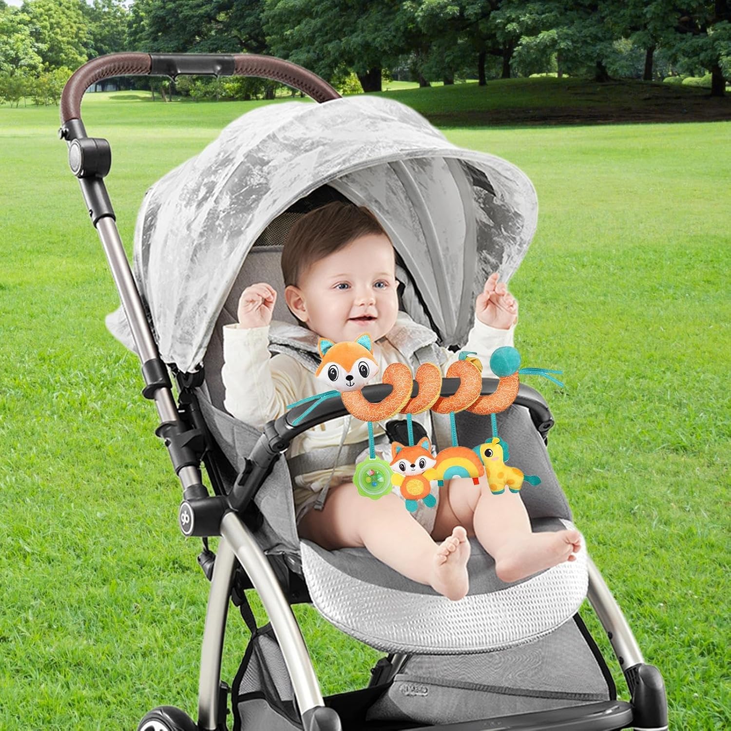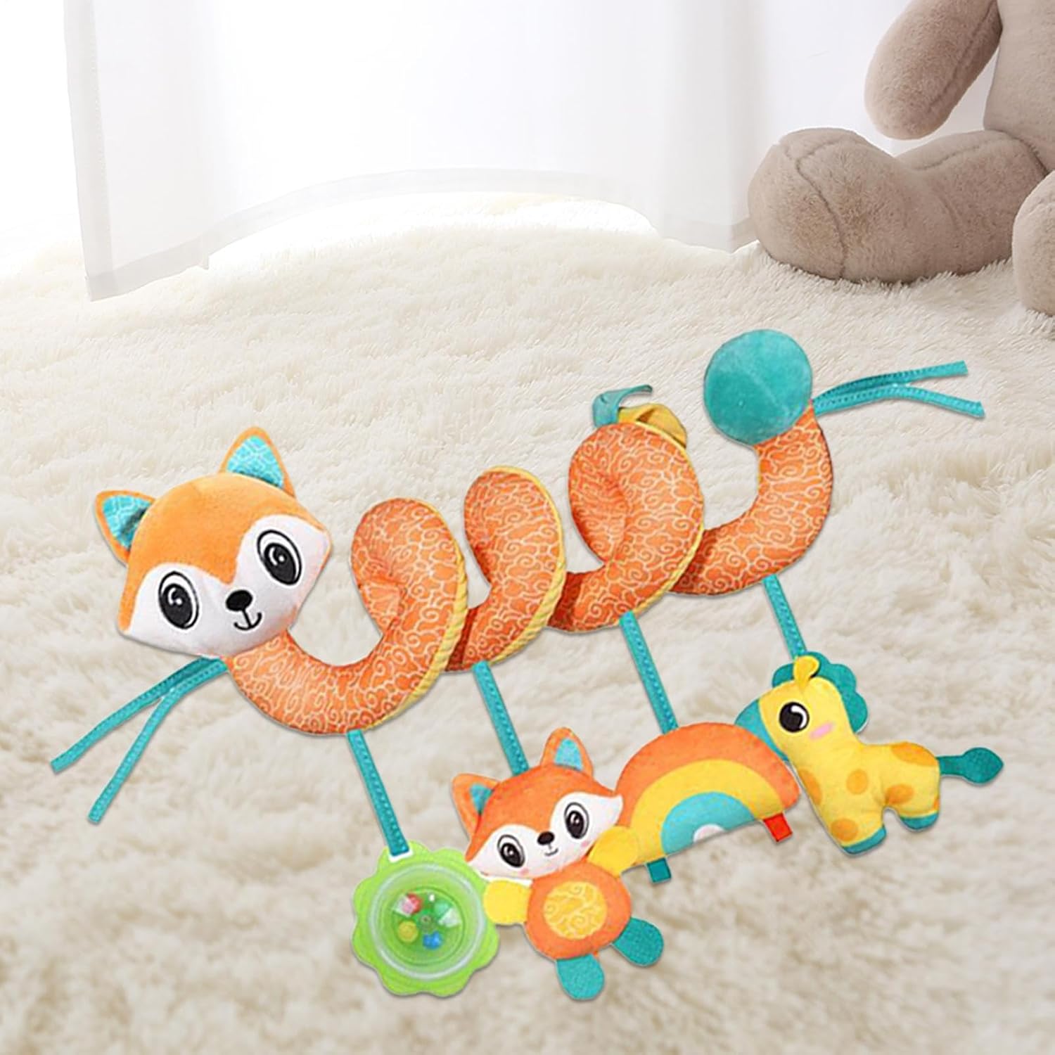 Robusta vestibilità universale: facile da installare su diversi modelli di passeggini e tipi di sedili, mantiene l'altezza di gioco ideale e resiste ai carichi di trazione per un uso a lungo termine Compagno di gioco sicuro: la qualità del peluche appositamente sviluppata con una superficie extra morbida garantisce un contatto confortevole con la pelle e la massima innocuità per la pelle sensibile del bambino durante il viaggio in auto Aiuto per il relax dei bambini: melodie tranquille hanno un effetto calmante, garantiscono un umore equilibrato e riducono l'ansia da viaggio durante il viaggio in auto - crea un ambiente privo di stress per i bambini felici nel seggiolino Apprendimento giocoso: favorisce il supporto cognitivo precoce attraverso È stato dimostrato che la presa e il raggiungimento mirati degli elementi del giocattolo migliorano la coordinazione occhio-mano e supportano lo sviluppo di capacità motorie stabili nei bambini durante il gioco. Supporto allo sviluppo: le superfici strutturate stimolano il senso del tatto, il suono integrato allena la percezione acustica. I motivi ad alto contrasto favoriscono la coordinazione occhio-mano durante il gioco