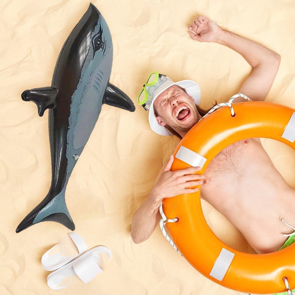 GONFIABILE A FORMA DI SQUALO PER PISCINA - Questa è una fantastica decorazione per feste a tema pirati, hawaiano, vita marina e molto altro. MATERIALE - Realizzato con materiali di alta qualità e resistenti, questo delfino gonfiabile garantisce un divertimento duraturo per le attività in piscina, in spiaggia e in acqua. GRAFICA REALISTICA DEGLI SQUALI: immergiti in un'entusiasmante avventura acquatica con realistici disegni di squali. GONFIABILE A FORMA DI SQUALO - Vivi l'emozione con il gonfiabile realistico a forma di squalo! Ideale per bambini dai 3 anni in su. GONFIAGGIO E SGONFIAGGIO FACILI - Gonfia, sgonfia e riponi senza sforzo per massima praticità.