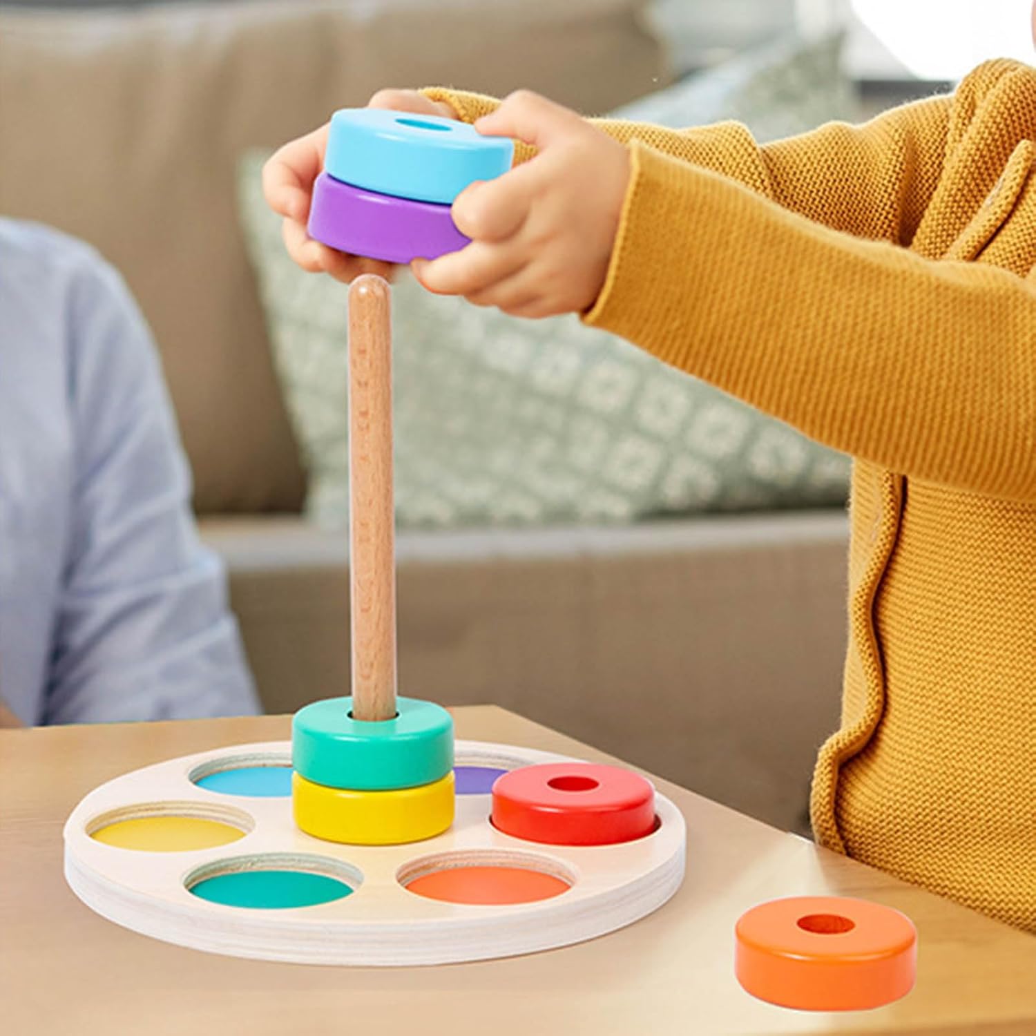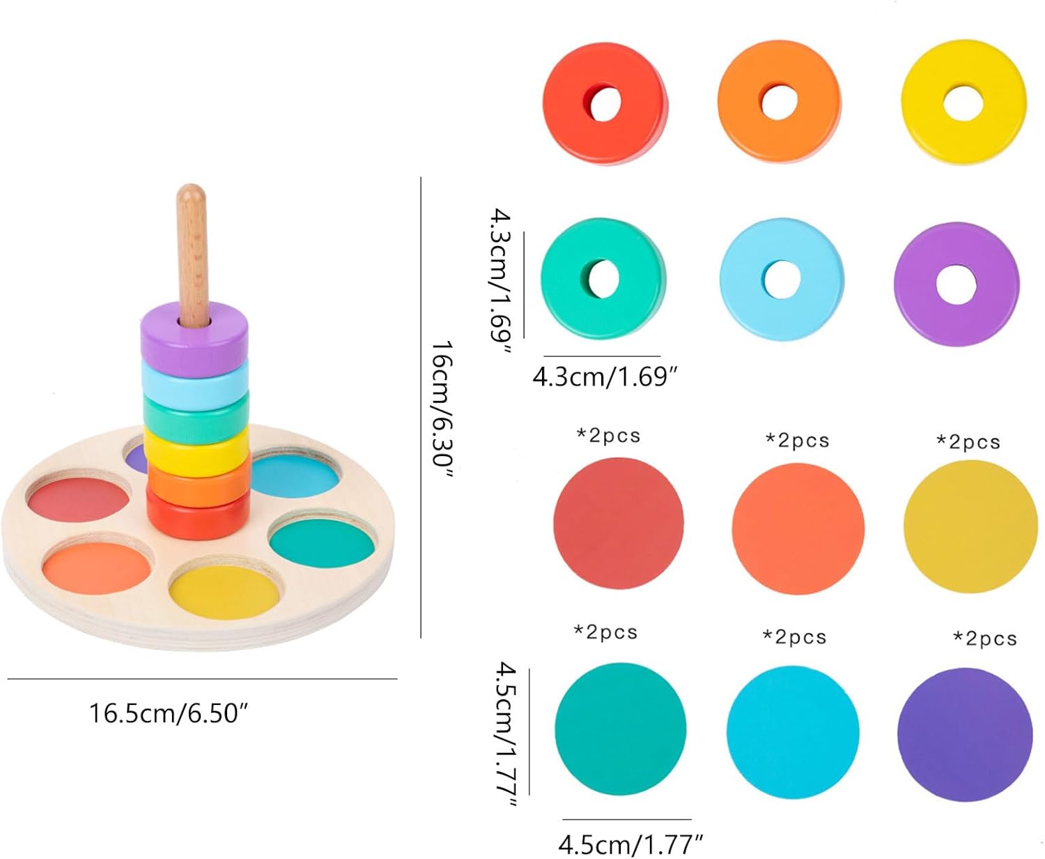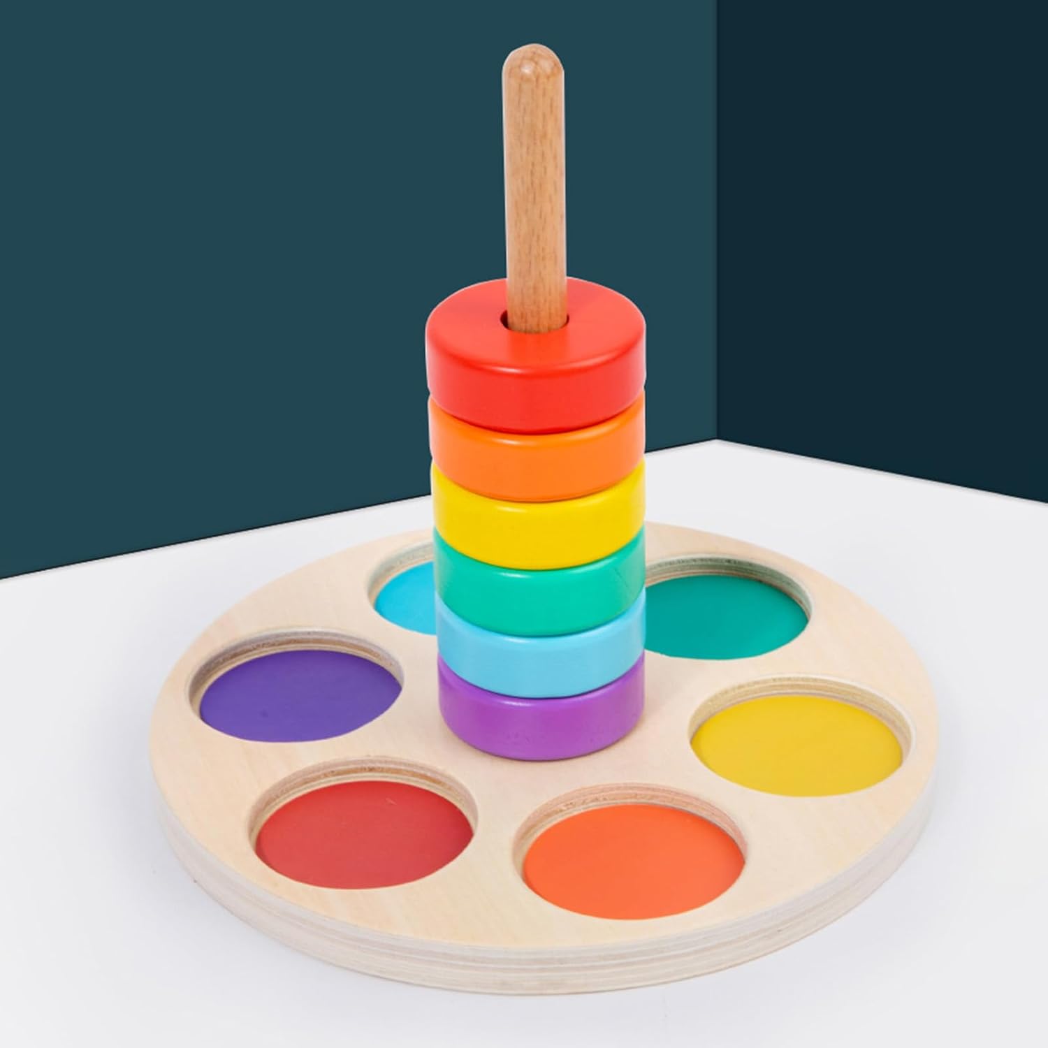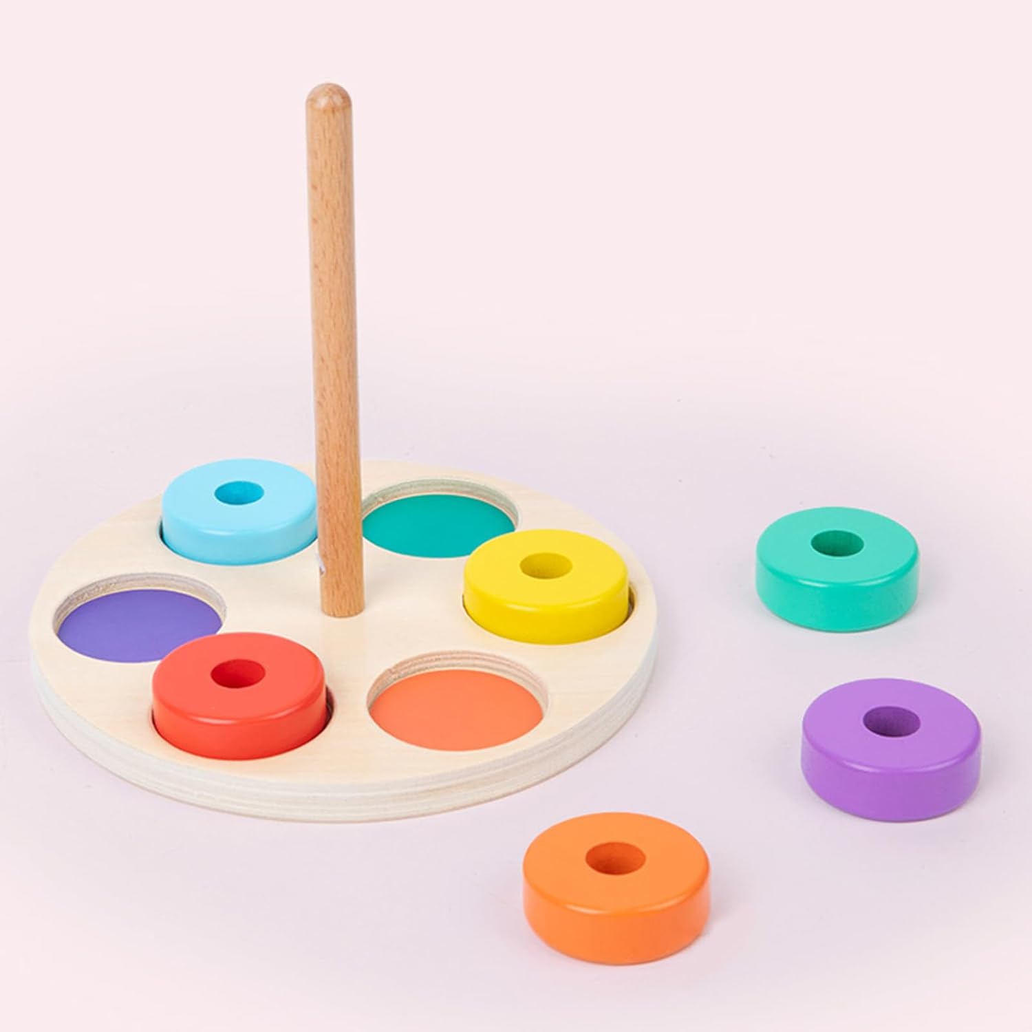 Giocattolo impilabile a colonna: trasportare con base in legno staccabile e anelli rotondi in 6 colori, che possono essere facilmente collegati alla base del pilastro con un buon stimolare gli interessi dei bambini, incoraggiare e sviluppare, esercitare e migliorare la loro capacità di coordinazione mano e occhio. Uso selezionato in legno massello, dipinto ad acqua, bordi lisci ben lucidati per proteggere le mani dei bambini, resistente all'usura, sicuro adatto per i bambini che giocano Giocattolo puzzle interattivo a colori: e interessante puzzle con anelli di collegamento con pezzi impilabili, facile da attirare la concentrazione e con un buon allenamento educativo per i bambini, migliorare le loro abilità di costruzione e abilità di allenamento delle abilità motorie. Impilamento e ordinamento: il giocattolo impilabile richiede grande pazienza e migliora la capacità della mano dei bambini, esercita la loro concentrazione, attraverso l'ordinamento dei colori e il pensiero logico dello spazio per migliorare la loro cognizione di base del colore e le capacità motorie fini. Fantastico: l'educativo è adatto per bambini e come compleanno, Natale, esercizio fisico dei bambini abilità motorie e abilità logiche, attraverso il processo di impilamento per migliorare il loro sviluppo precoce.