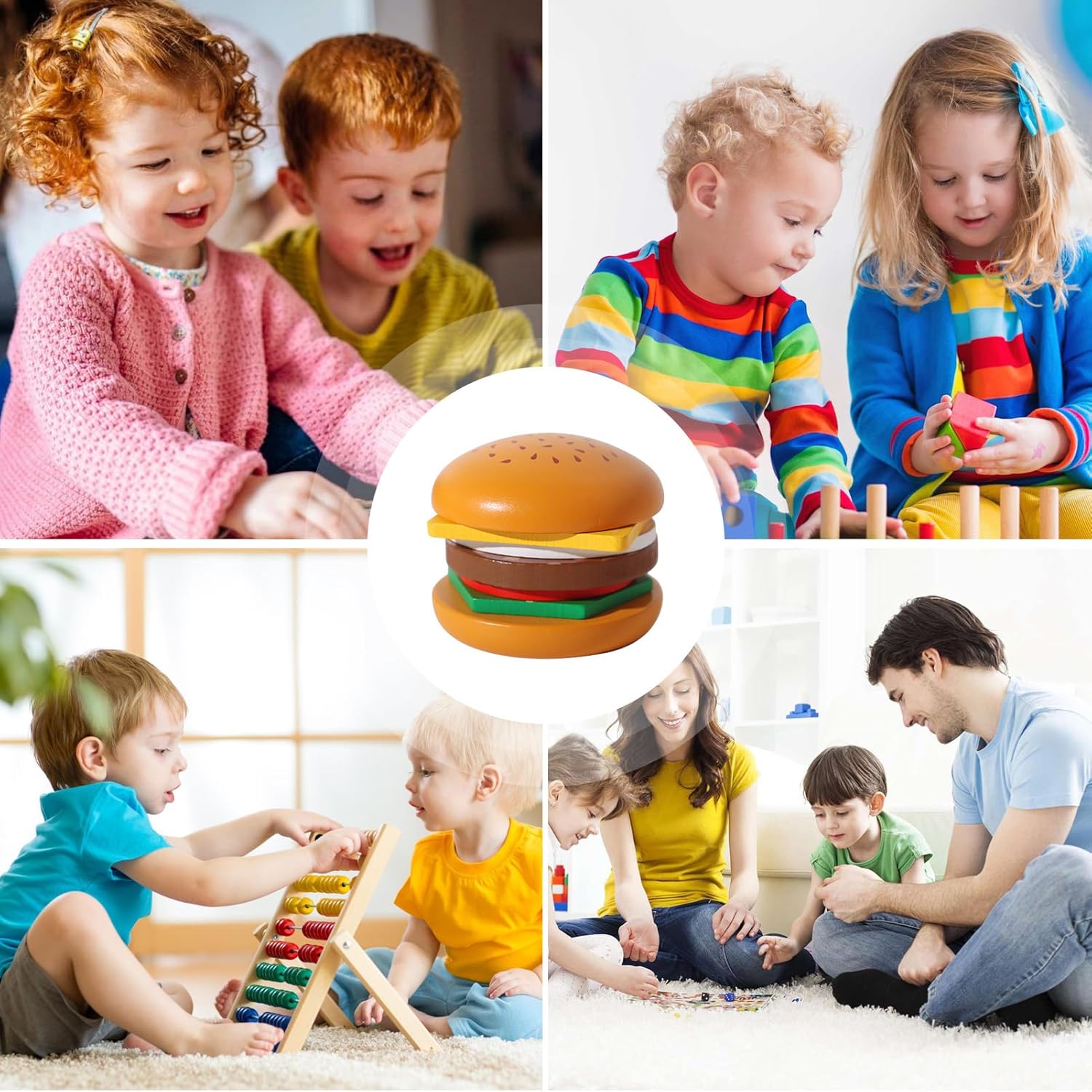 Migliora le tue abilità: giocando con il giocattolo impilabile per hamburger in legno, il tuo bambino può migliorare le sue capacità cognitive, immaginazione, capacità di coordinazione occhio-mano, capacità motorie e creatività Colori vivaci: dai libero sfogo all'immaginazione del tuo bambino con i giocattoli impilabili in legno per hamburger. I giocattoli sono progettati per migliorare lo sviluppo visivo dei sensi e attirano sicuramente l'attenzione del tuo bambino e lo aiutano a riconoscere e distinguere meglio i colori Promuovi l'unità della famiglia: questi giocattoli impilabili in legno per hamburger rafforzano i legami familiari e promuovono la comunicazione. Approfondisci la tua relazione genitore-figlio e aumenta l'interazione attraverso un tempo di gioco di alta qualità Materiale resistente: il nostro giocattolo impilabile hamburger sandwich è realizzato in materiale di legno di alta qualità, garantendo così robustezza e resistenza all'usura per un uso duraturo senza deformazioni Regalo perfetto: dai al tuo bambino l'opportunità di scoprire la sua creatività e migliorare le sue capacità motorie con il nostro giocattolo impilabile per hamburger in legno. Il regalo perfetto per e ragazze per compleanno, Natale e Capodanno