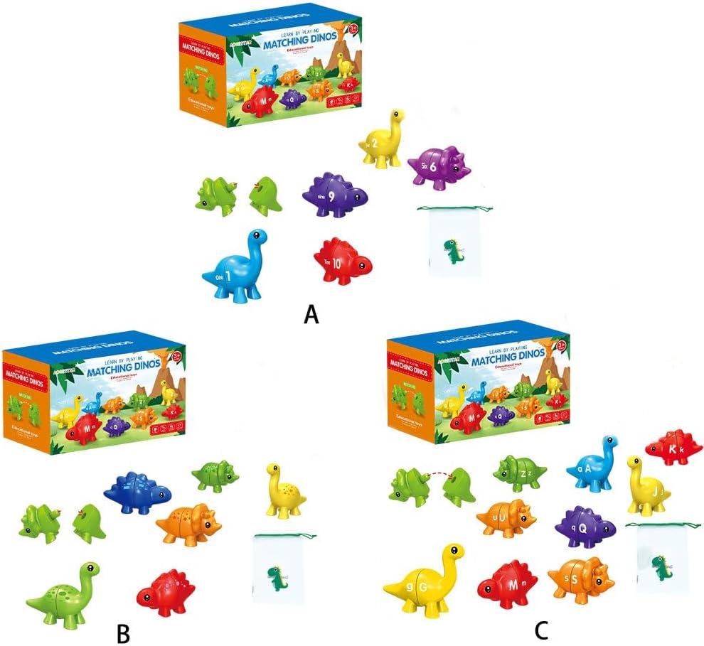 Giocattolo educativo interattivo: i bambini imparano lettere e colori attraverso giochi di abbinamento di lettere, sviluppando capacità di classificazione e coordinazione manuale Educazione all'apprendimento in età prescolare: giocattoli per l'apprendimento della prima infanzia adatti all'istruzione prescolare, che stimolano il piacere dell'apprendimento dei bambini Giocattoli didattici per abbinamento dinosauri: apri il dinosauro e trova l'altra metà da abbinare, offrendo un'esperienza divertente ed educativa per i bambini Sicuri e durevoli: questi giocattoli educativi sono realizzati con materiali robusti, garantendo un'esperienza di gioco sicura per i bambini Regalo per i bambini: incoraggia l'apprendimento e la creatività con questi giocattoli educativi, un regalo per i bambini di tutte le età