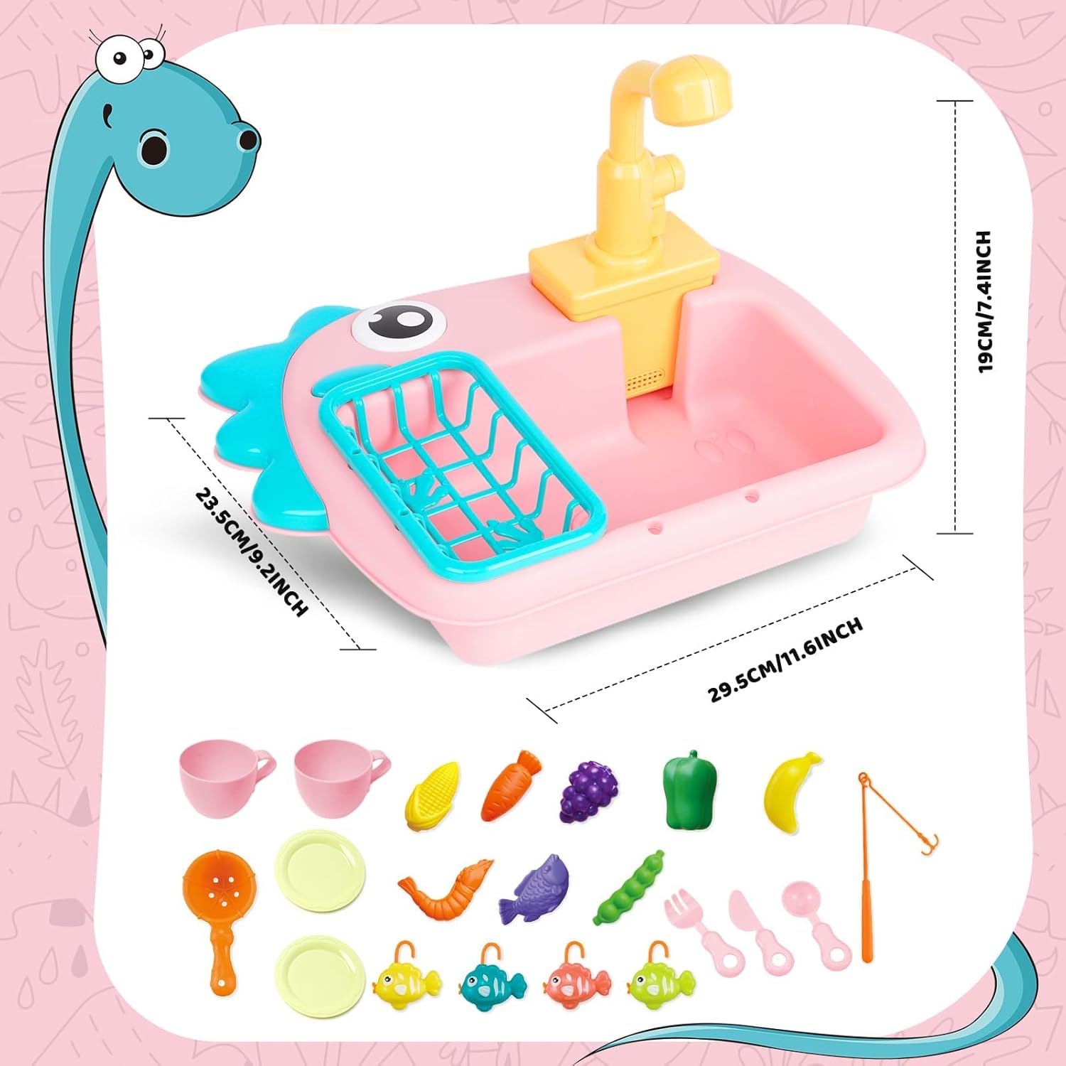 Set di giocattoli per lavello da cucina: questo versatile giocattolo da cucina è dotato di accessori per stoviglie, cibo, verdura, frutta, pesce e una canna da pesca per aggiungere interesse e tenere occupati i tuoi bambini per ore! Griglia di scarico rimovibile: griglia appositamente progettata per filtrare l'acqua e conservare i piatti. Guida i bambini a sviluppare l'abitudine di mettere in ordine. Rubinetto per lavandino da gioco unico: design automatico della circolazione dell'acqua, flusso d'acqua costante e velocità costante. Gioca a giochi di affondamento e pesca per raddoppiare il divertimento. Giocattoli educativi da cucina:Con questo set di giocattoli per giochi di ruolo da cucina, i bambini sono liberi di giocare con i loro partner, soddisfacendo il desiderio dei loro figli di esplorare, sviluppare capacità cognitive e migliorare le abilità sociali e pratiche. Servizio di qualità: in caso di problemi durante l'utilizzo del prodotto, non esitate a contattarci. Ti forniremo sicuramente servizi e soluzioni di qualità.