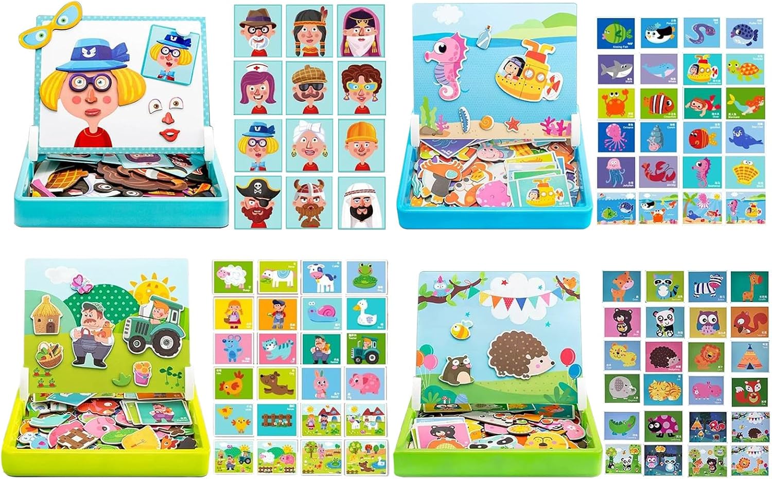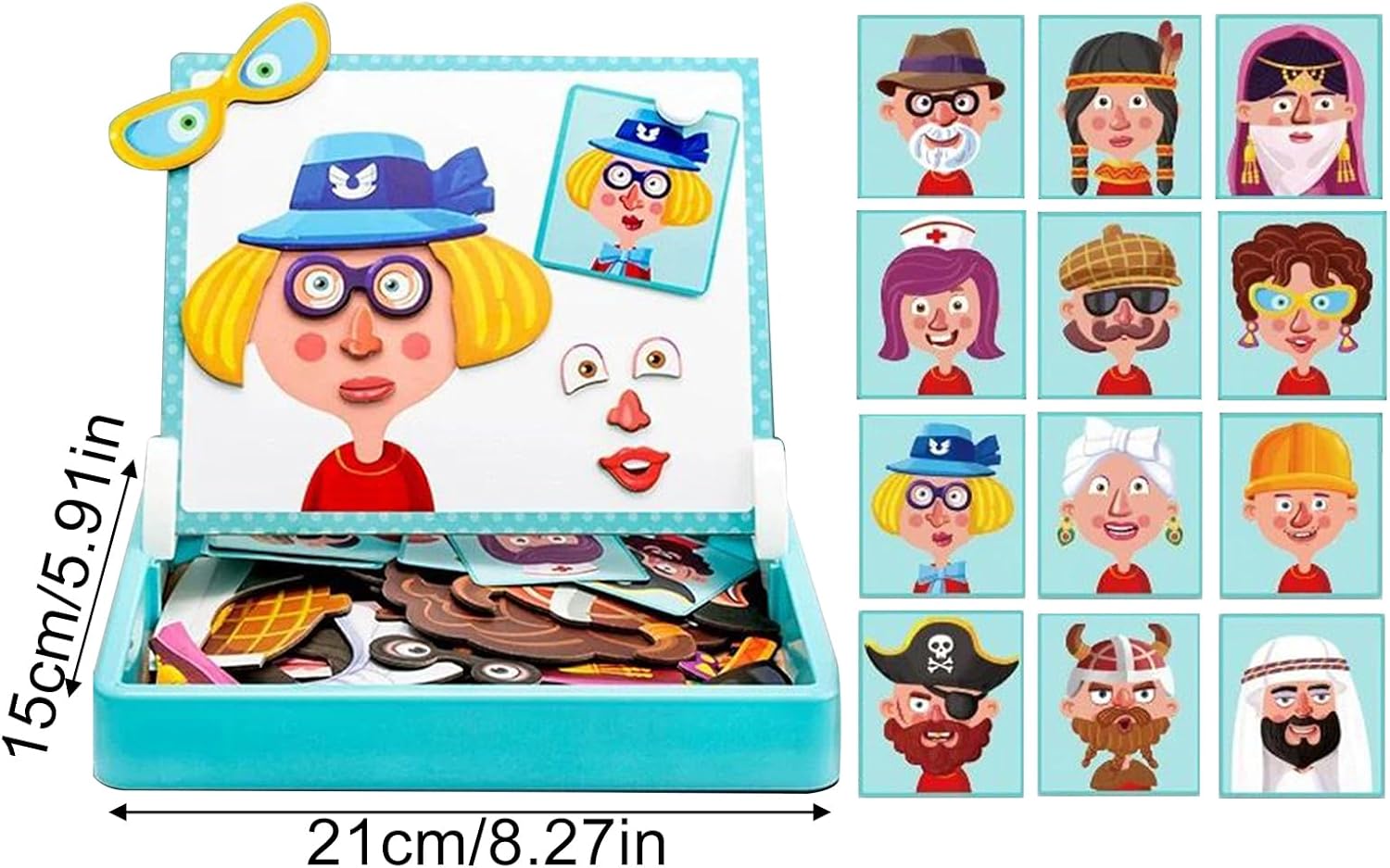 COSTRUZIONE DUREVOLE: Realizzati con un design sicuro con bordi arrotondati e superfici laminate antigraffio, questi puzzle magnetici per i più piccoli resistono a maneggiamenti frequenti e mantengono il loro aspetto visivamente accattivante nel . Perfetti per sale giochi affollate o intrattenimento di viaggio, garantiscono un divertimento duraturo. Promuove le capacità cognitive: i puzzle magnetici per bambini promuovono la formazione precoce delle capacità cognitive stimolando lo sviluppo del pensiero spaziale, affinando la coordinazione occhio-mano e costruendo il pensiero logico in ambienti di apprendimento divertenti in cui i bambini esplorano modelli e forme, migliorando le capacità cognitive attraverso il gioco. Questi puzzle magnetici supportano lo sviluppo intellettuale attraverso l'apprendimento pratico e sono divertenti per i gio Gioco combinato fantasioso: dotato di un design puzzle magnetico a doppia faccia, questo prodotto funge da costruttore di personaggi magnetici che incoraggia il gioco di travestimento creativo e garantisce intrattenimento attraverso versatili opzioni multiplayer e per giocatore singolo. I bambini possono combinare diversi personaggi e abiti per creare storie uniche, supportando lo sviluppo della fantasia nel gioco da soli o in gruppo. Il design consente varie esperienze di gioco Guida alle espressioni facciali: il puzzle magnetico combina l'apprendimento del gioco di ruolo con la simulazione delle espressioni emotive, incoraggiando la costruzione di una base di etichetta sociale. Migliora i benefici degli ausili didattici cognitivi nelle attività educative o ricreative, sia a casa che in viaggio. Attraverso simulazioni facciali realistiche, aiuta i bambini a riconoscere meglio le emozioni e ad applicarle nelle situazioni quotidiane. CONVENIENTE PER I VIAGGI: questi puzzle magnetici sono progettati con dimensioni compatte adatte ai viaggi che consentono un trasporto senza sforzo e un'esperienza di gioco coinvolgente in qualsiasi momento. Il fissaggio magnetico sicuro garantisce prestazioni affidabili ed è per tenere occupati i bambini durante i viaggi in auto o le soste in aeroporto senza preoccuparsi della perdita di parti.