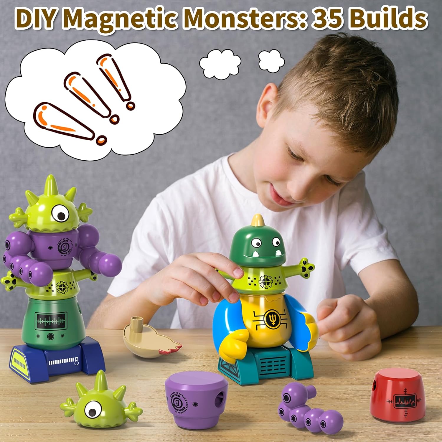 Giocattoli magnetici: questo giocattolo magnetico per bambini dai 3 anni in su permette di costruire cinque diversi mostri: mostro con un occhio singolo (3,5 × 5 pollici), mostro conchiglia (3,2 × 4,1 pollici), mostro di corno (3,9 × 4,1 pollici), mostro a tre occhi (3 × 4,9 in) e mostro piccolo drago (4,2 × 4,3 pollici) in). Ideale per il tempo di gioco creativo e lo sviluppo della fantasia! Dimensione perfetta per le mani dei bambini piccoli: il set di giocattoli è stato progettato appositamente per le mani piccole. Ogni parte magnetica è leggera e facile da maneggiare, senza spigoli vivi. I bambini dai 3 anni possono facilmente smontarlo e rimontarlo, il che rafforza le loro capacità motorie. Promuove abilità versatili: i blocchi magnetici si combinano facilmente, ma non si separano facilmente. I bambini possono costruire vari robot e mostri secondo le proprie idee o secondo le istruzioni, che promuovono le loro capacità di problem solving e creatività. Comodo da riporre e trasportare: il giocattolo magnetico viene fornito in una pratica scatola regalo, ideale per essere riposto a casa o in viaggio. È perfetto per giochi di ruolo ed è adatto per interni ed esterni. Ideale come regalo educativo: questo giocattolo magnetico promuove lo spirito della ricerca ed è uno strumento educativo ideale per bambini di età compresa tra 3 4 5 6 anni. Perfetto come regalo di compleanno o di Natale per ragazzi e ragazze.