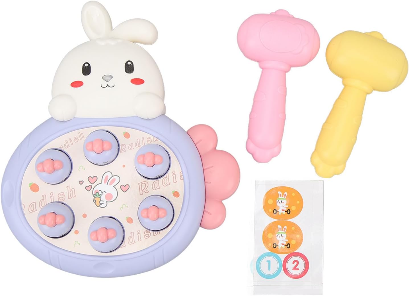 Modalità PK: questo gioco martellante include 2 martelli divertente competizione tra genitori e bambini che scatena risate e legame Coordinazione occhio-mano: il giocattolo martellante migliora le capacità motorie e mentre i bambini colpiscono per lo sviluppo delle abilità Stile cartone animato: caratterizzato da disegni giocosi di coniglietto e carota, questo giocattolo a martello cattura l'attenzione dei bambini con i suoi colori vivaci Materiale sicuro: realizzato in plastica per i bambini con bordi e struttura robusta per un gioco senza preoccupazioni Ventose: dotate di potenti ventose per mantenere il gioco saldamente in posizione su tavoli o pareti